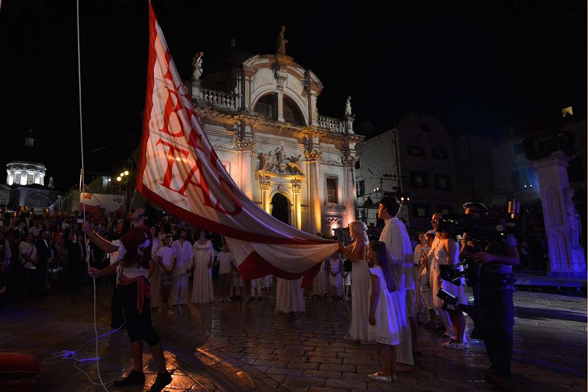 With raising of the Libertas flag and followed by sounds of Hymns of Freedom, the 66th Dubrovnik Summer Festival has been officially opened. During the next 47 days, actors and art will rule Dubrovnik, like previous 65 years. Croatian President Kolinda Grabar Kitarovic attended the opening of the games; it was a great celebration in the centre of the city.
