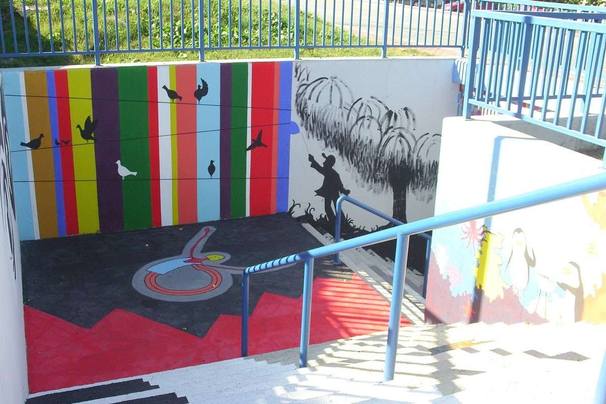 This passage had been completely destroyed: walls were completely covered with graffiti, signatures and derogatory terms. Before its decorations this location was considered as extremely uncomfortable, unattractive and ugly place in the centre of Cilipi. But after young authors expressed their creativity on its walls it was transformed into a gallery with great works of young artists.
