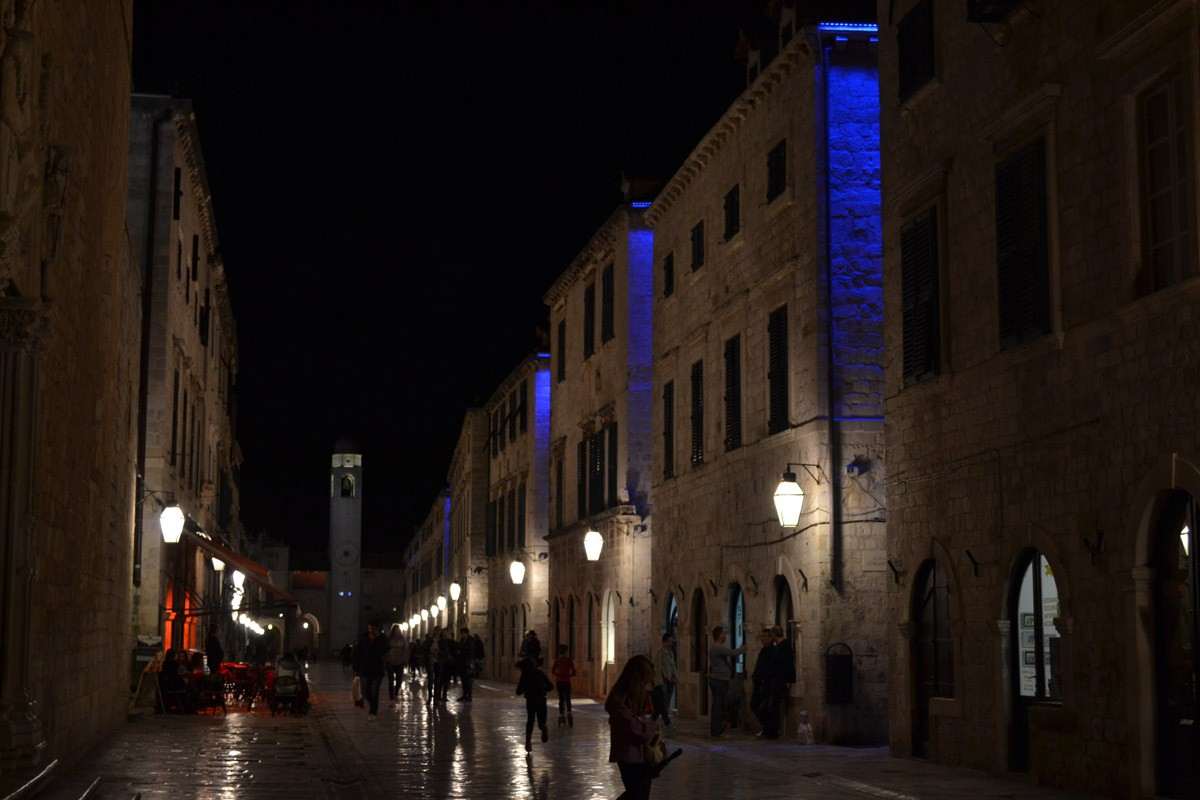 Stradun colored in blue – this is not an ordinary scene in Dubrovnik. But from last Wednesday until next Friday,14th of November, it will remain so as a reminder on the importance of early detection of Diabetes.