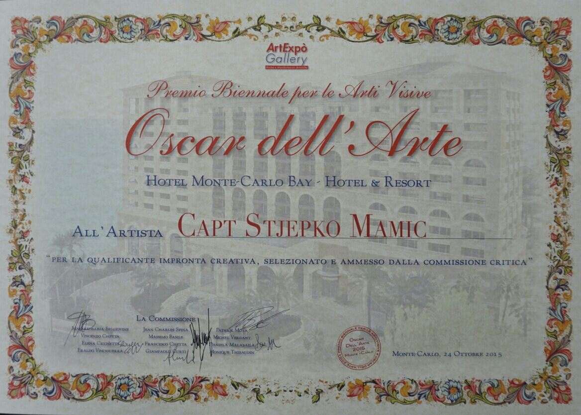Stjepko Mamic, the captain and an artist from Dubrovnik has received a valuable award yesterday. At a ceremony that was held in Monte Carlo, Captain Mamic has won the Oscar for visual art – ‘Premio Oscar per le arti visive’. This award is another proof that the successful work of this Dubrovnik’s artist is recognized worldwide.