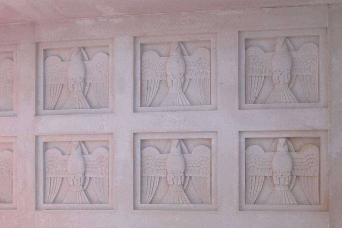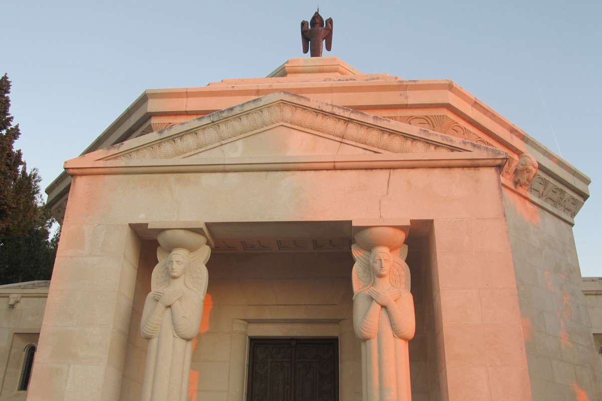 A bronze bell in the cupola bears the inscription ‘Know the mystery of love and though shalt solve the mystery of death and believe that life is eternal’. The interior of the mausoleum contains reliefs depicting the stages of life.