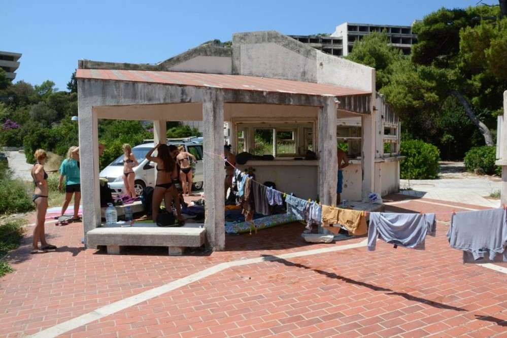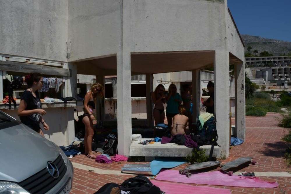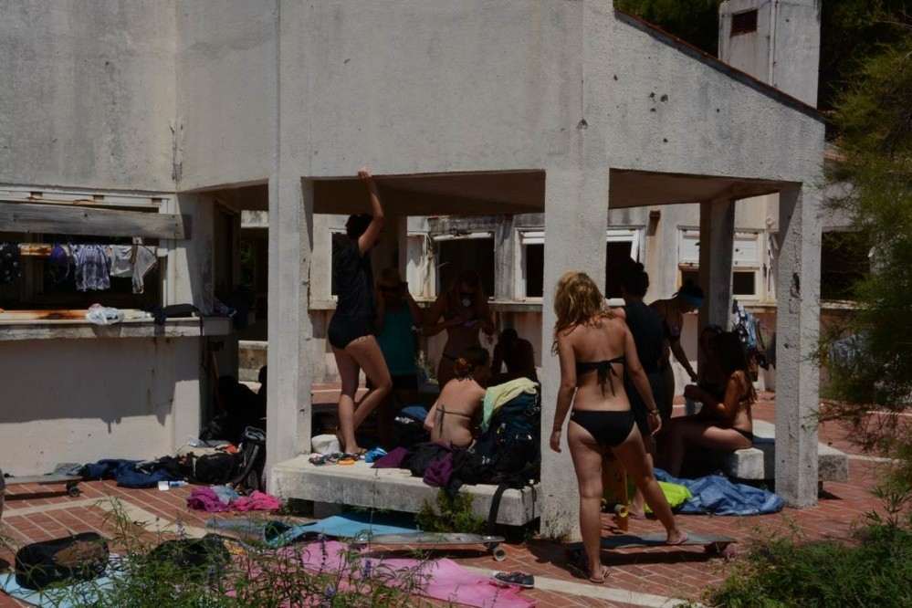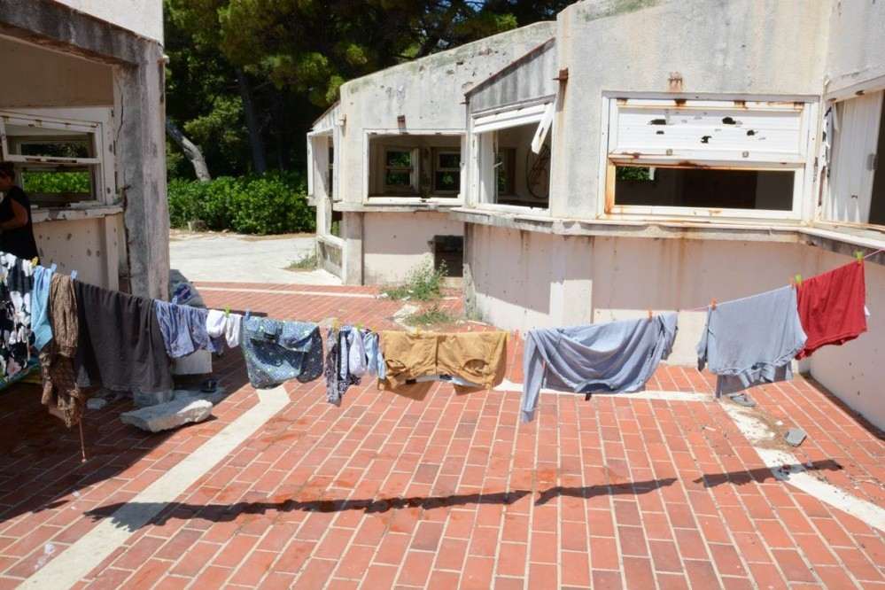 The group has chosen the abandoned and war damaged former hotel complex on Kupari beach as their home for their break with at a cost of 0,00 HRK per night it’s certainly cheap but has no luxuries or basic amenities other than the beach’s public toilet.