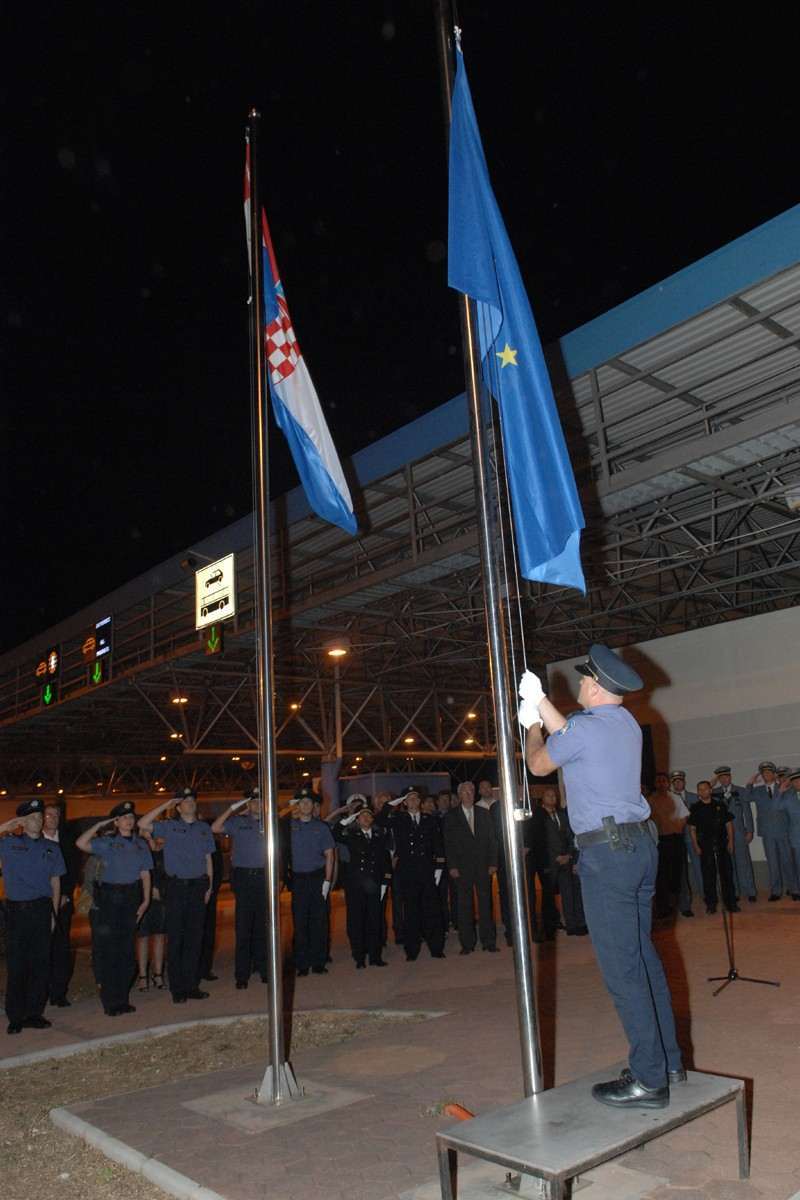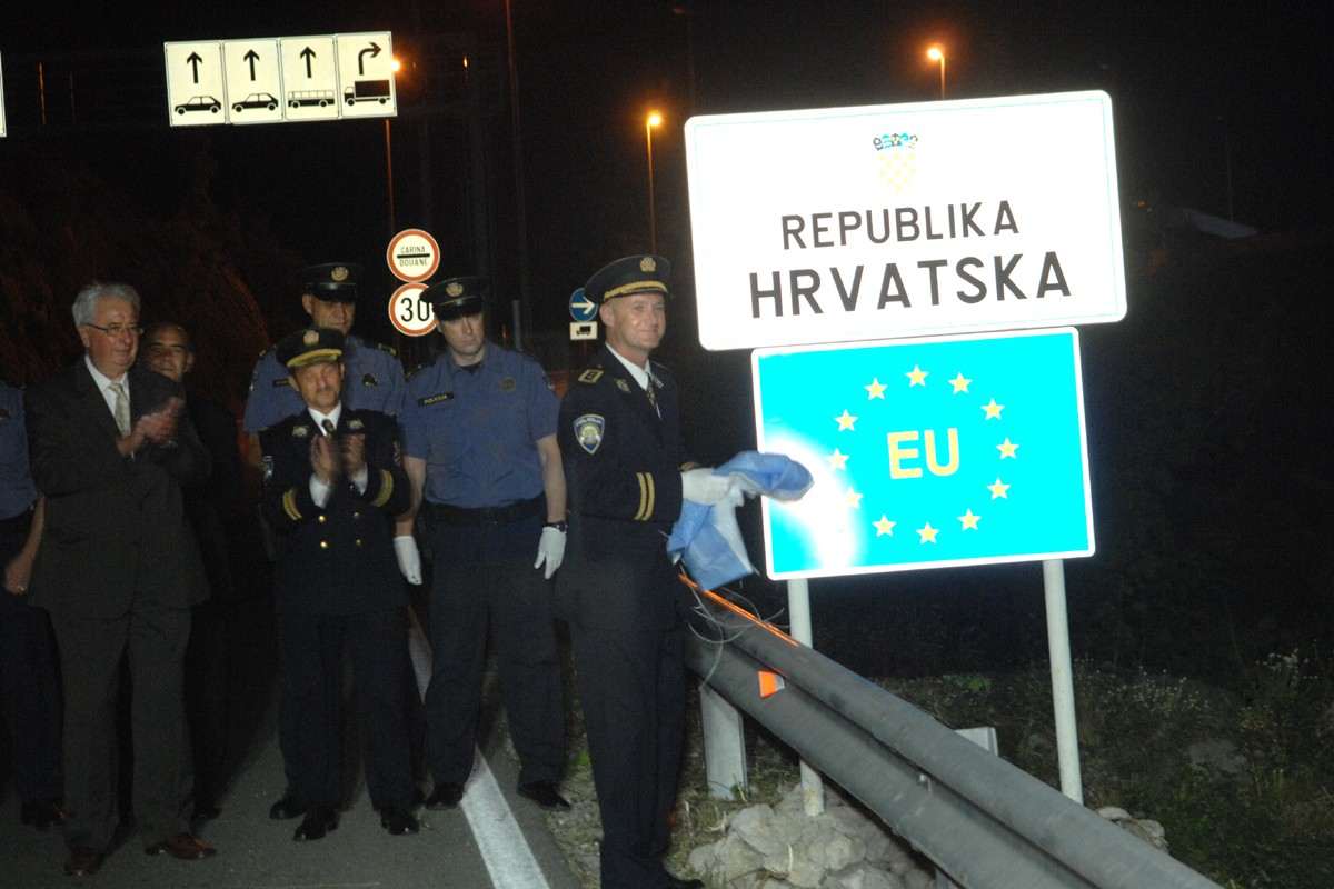 Croatia’s historic EU accession was marked with parties all over Croatia and an official ceremony attended by dignitaries in Zagreb on June 30th. Dubrovnik celebrated with free concerts and fireworks while at the border with Montenegro, police customs officials had their own ceremony marking the moment of EU entry. The flag of the European Union was officially raised by uniformed officers who also honoured the historic day with the revealing of a road sign notifying people that they are entering an EU country upon crossing the border from Montenegro. Take a look at our photo gallery of this historic moment being marked.