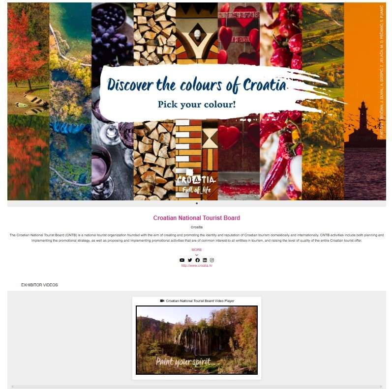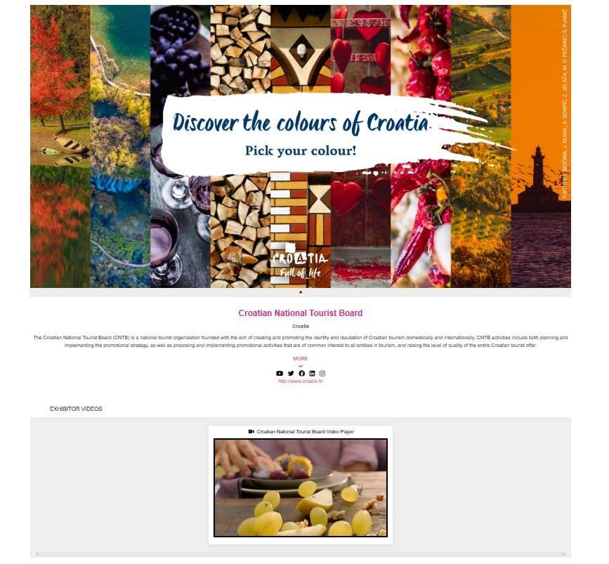 With the Croatian National Tourist Board as the main exhibitor, numerous co-exhibitors such as Adriatic Luxury Hotels, Association of Small and Family Hotels (OMH), Croatia Airlines, Dubrovnik Tourist Board, Zagreb Tourist Board, Maistra Hospitality Group, Valamar Riviera d.d., Perfecta Travel, Plitvice Lakes and Uniline DM, will also ensure their visibility through the HTZ’s virtual stand.
