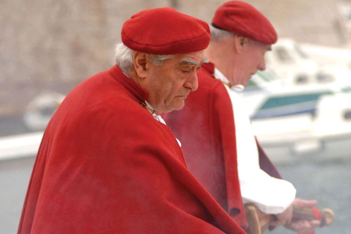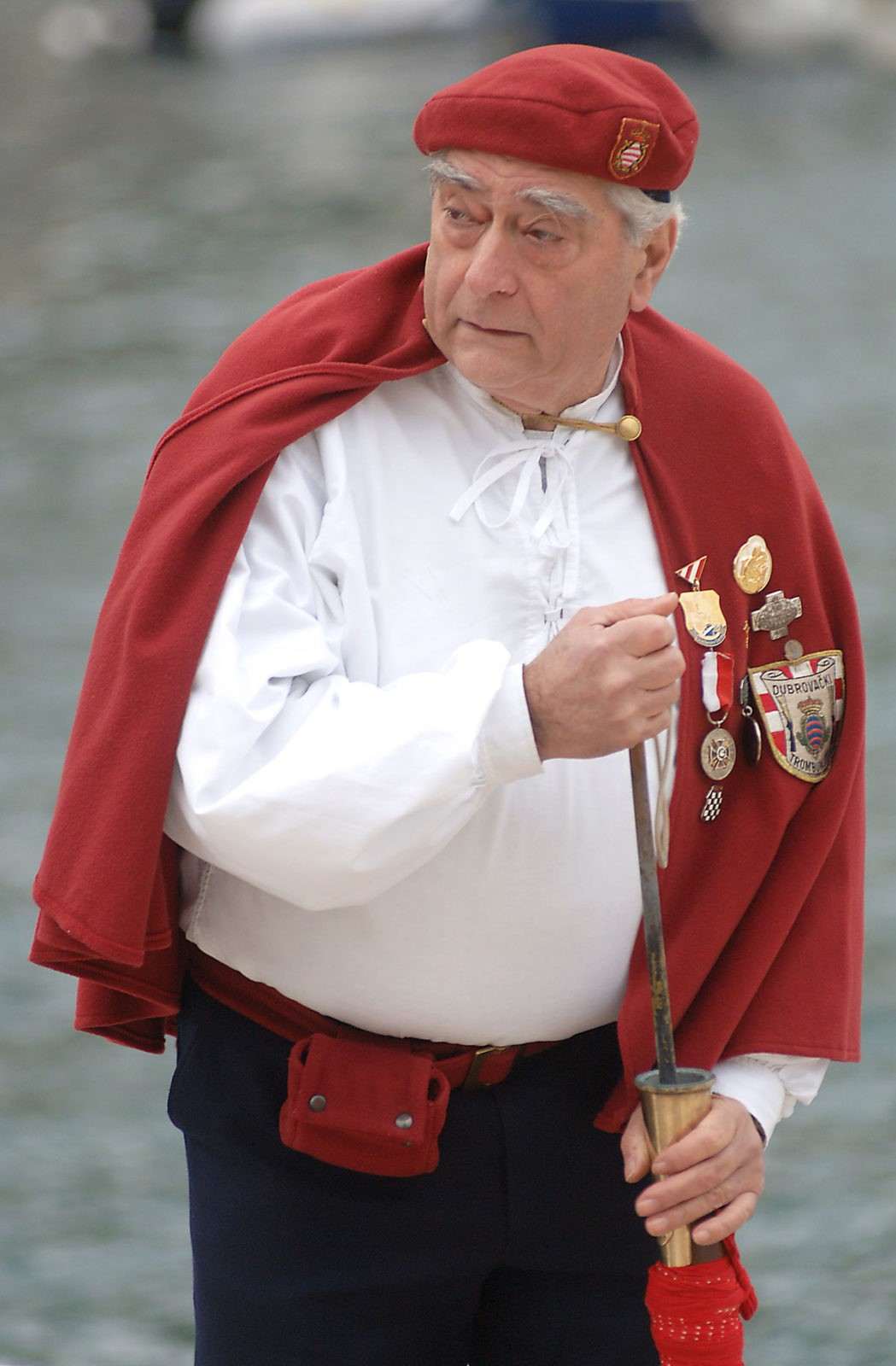 Since 1987, Mr. Antun Knego has been president of the Dubrovnik Trombunjeri and a member of the society since its re-establishment in 1970, ”Trombunjeri are referred to in documents dating back as early as 1417. They were abolished in 1946 up until the 1000th feast day of Saint Blaise when there were neither elected masters of ceremony (Festanjuli). So, in 1969 we re-established the Dubrovnik Trombunjeri for the 1000th feast day.” Antun follows in his father’s footsteps who was too a trombunjer, his sons Pero and Frano will continue the family tradition.