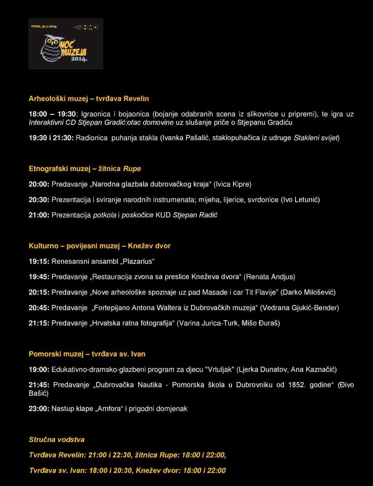 Admission to the Cultural History Museum (Rector’s Palace), Ethnographic Museum (Rupe/The Holes Granary), Archeological Museum (Revelin Fortress) and the Maritime Museum (St.John Fortress) is free from 18:00 tonight. Doors will close at 01:00 on Saturday morning so there’s plenty of time to see all the exhibitions you like.