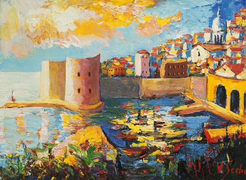 Šerbu was born in Dubrovnik in 1938. As a boy, holidays spent in the village of Smokvica on the island of Korčula inspired the drawings and sketches that would eventually steer him to enroll in the Art Academy after high school and upon completing his education, choose to study for a classical masters for four years in France and England. Today, Šerbu lives and works in Dubrovnik, strolling through old town in search of new motifs.