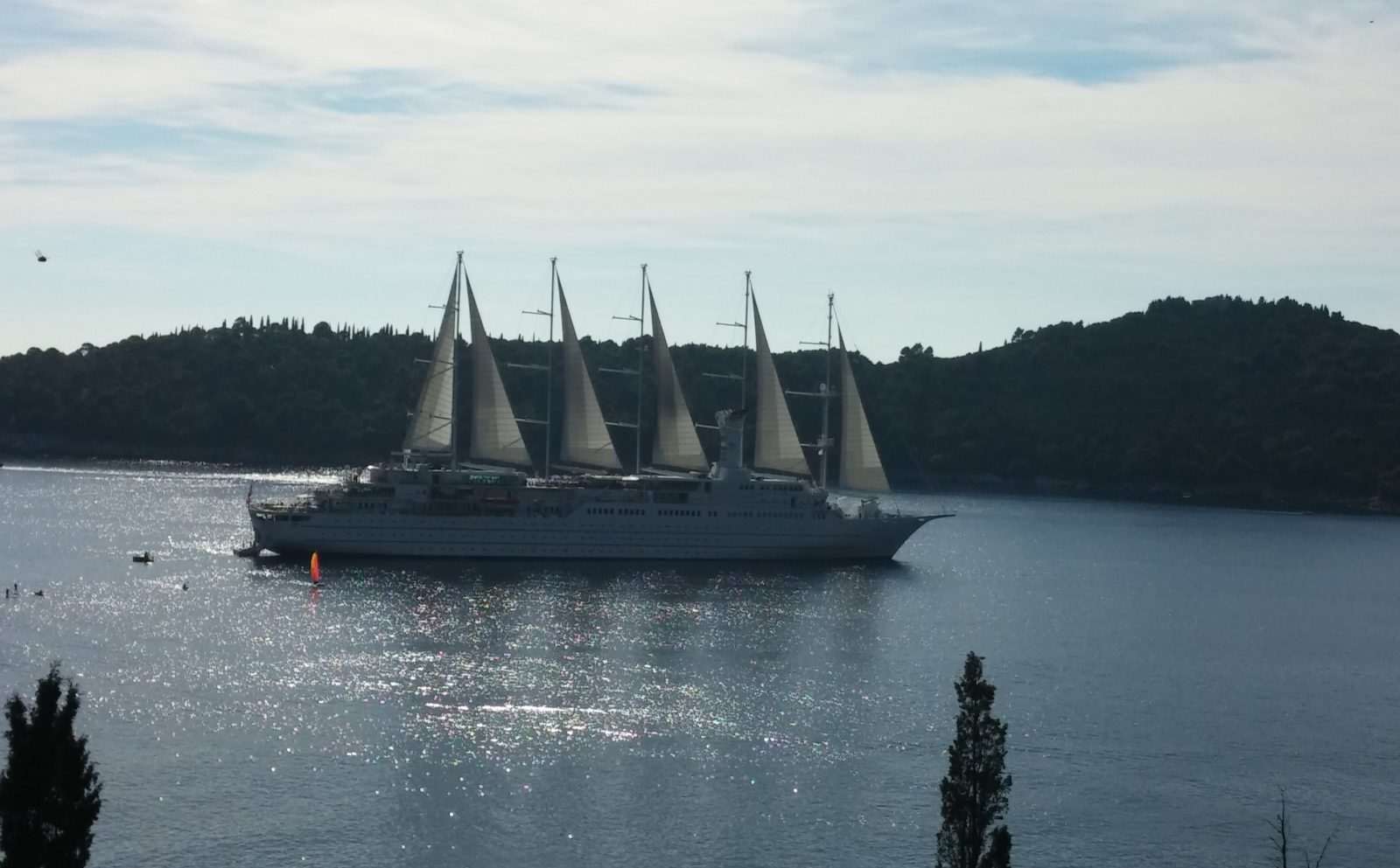 Beautiful cruiser called ‘Wind Surf’ sailed into the waters between Lokrum and the City. This beautiful 194 meters long and 80 meters high vessel, sailing under the flag of the Bahamas, was built in 1989 in the French Le Havre. Its first name was Club Med. In 1998 the ship was sold to Windstar Cruises, and shortly after renamed. The new name remained until today – Wind Surf. It is now one of the largest cruise ships in the world, which welcomes up to 310 passengers and 214 crew members.