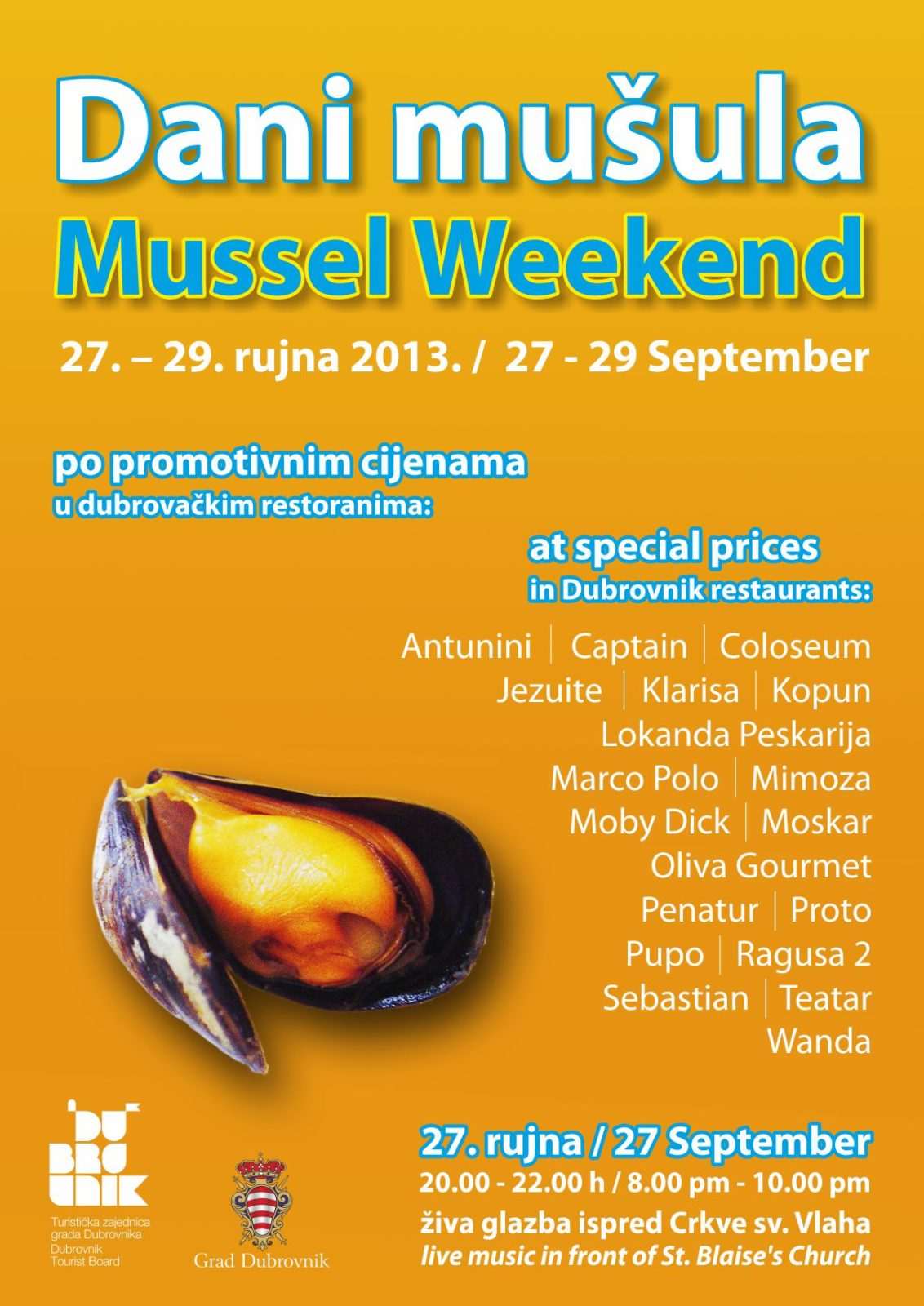 From the 27th to 29th of September visitors to Dubrovnik and its restaurants can enjoy delicious local mussels at reasonable prices as part of ‘Mussel Weekend’. To celebrate World Tourism Day (WTD) on September 27th, Dubrovnik Tourist Board has organised the promotional event to reflect the WTD theme this year, ‘Tourism and water’. Restaurants taking part in the promotional weekend include: Antunini, Captain, Coloseum, Jezuite, Klarisa, Kopun, Lokanda Peskarija, Marco Polo, Mimoza, Moby Dick, Moskar, Oliva Gourmet, Penatur, Proto, Pupo, Ragusa 2, Sebastian, Teatar and Wanda