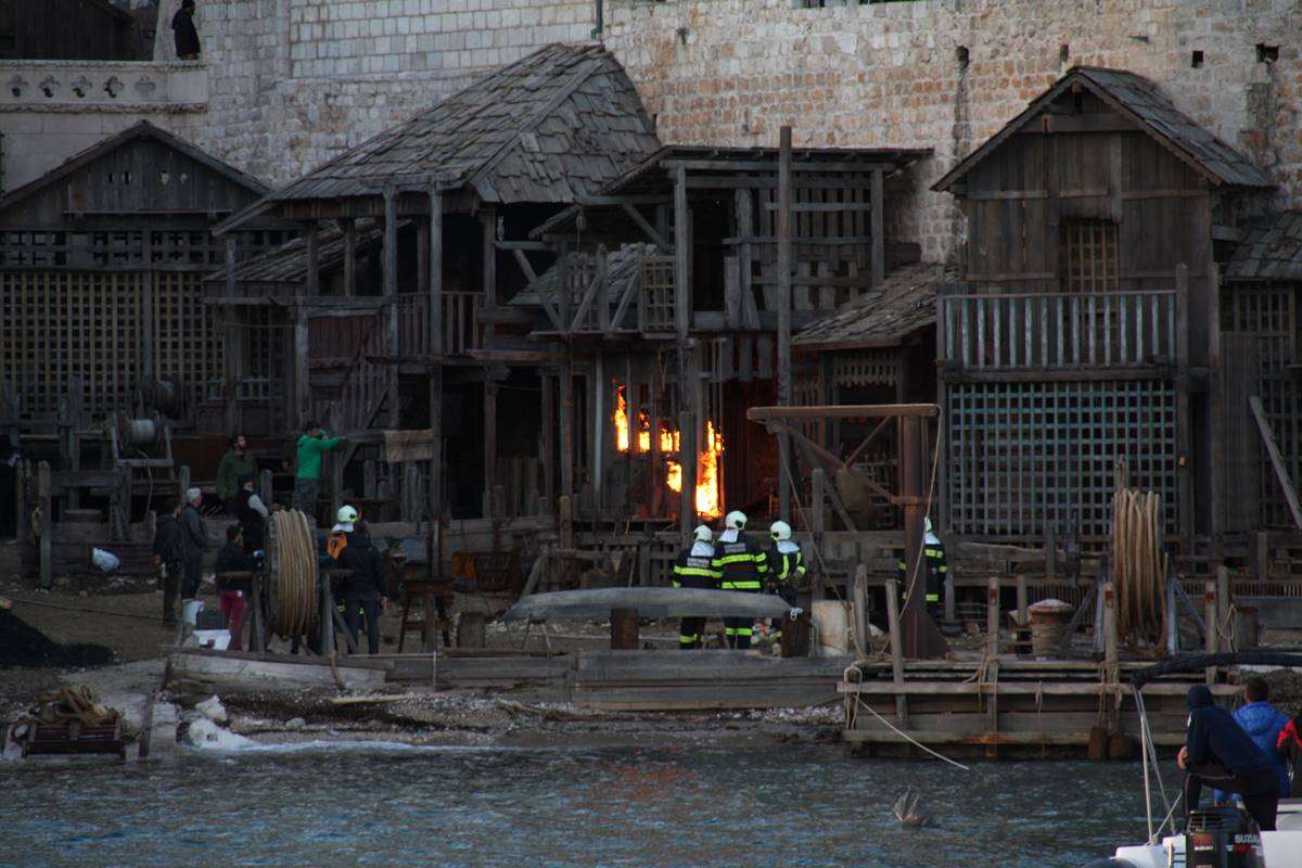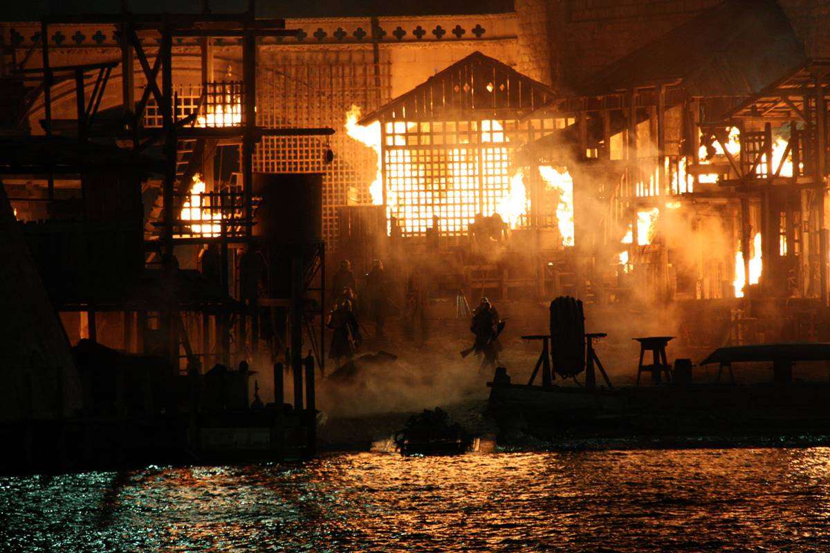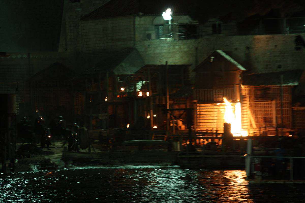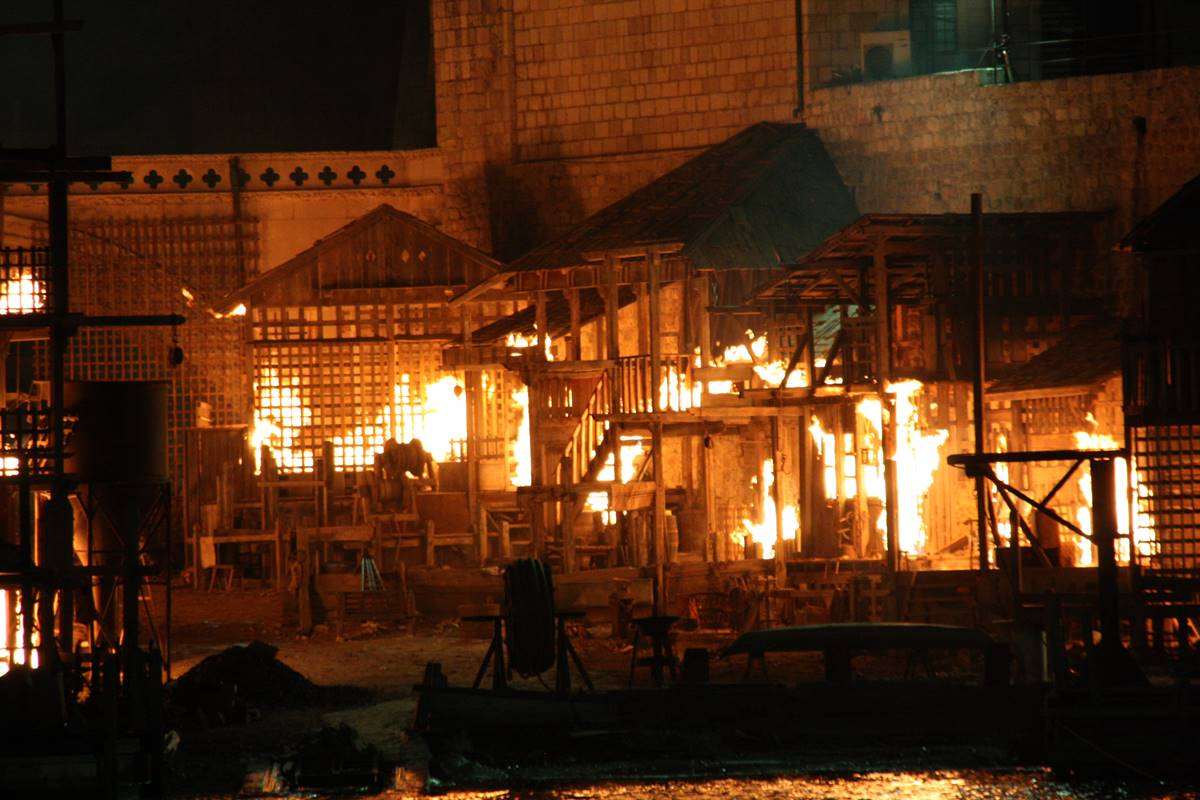 Monday afternoon, the film production “Robin Hood: Origins” conducted a controlled Special Effects burn of the sets that were constructed by the waterline adjacent the Posat harbor.