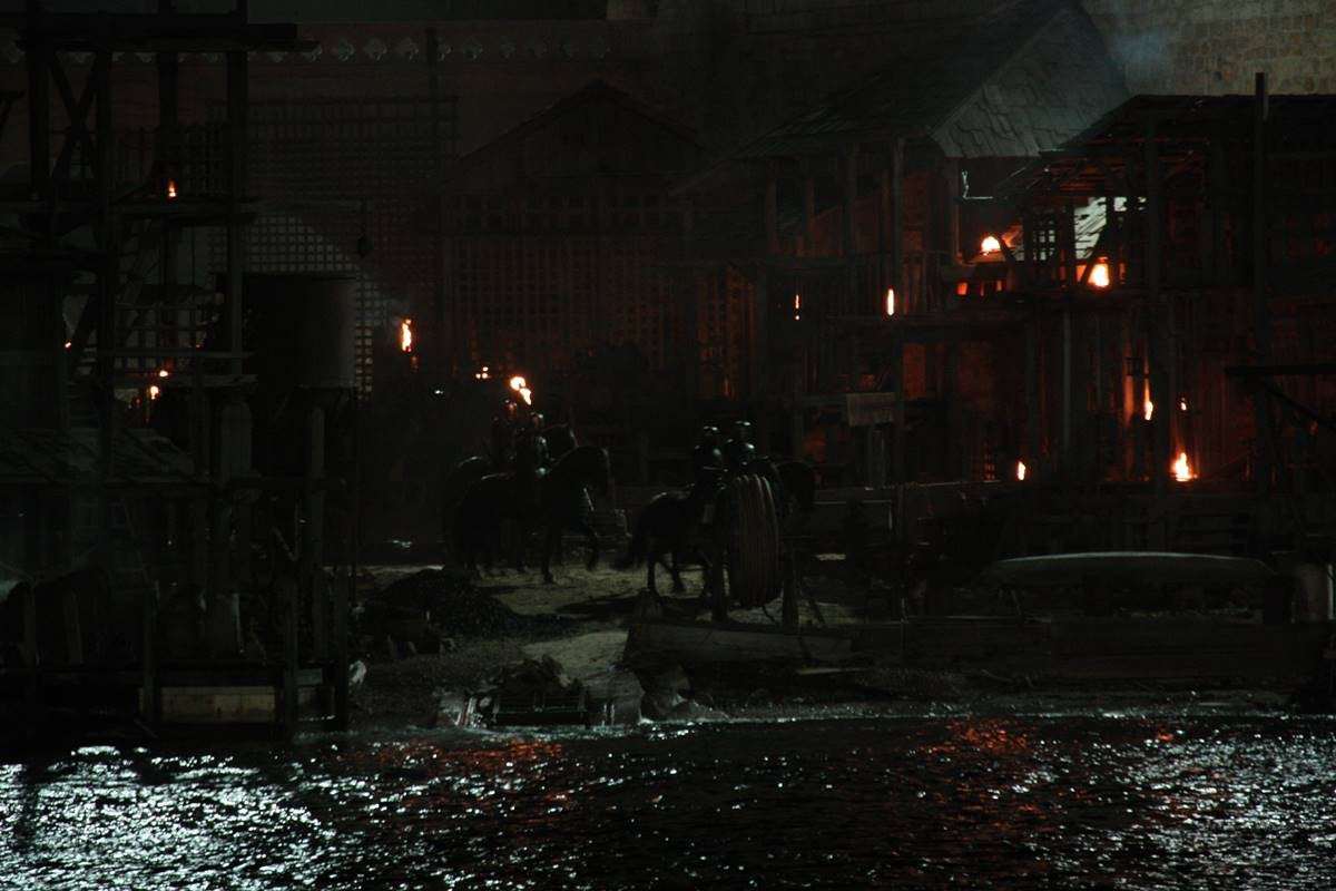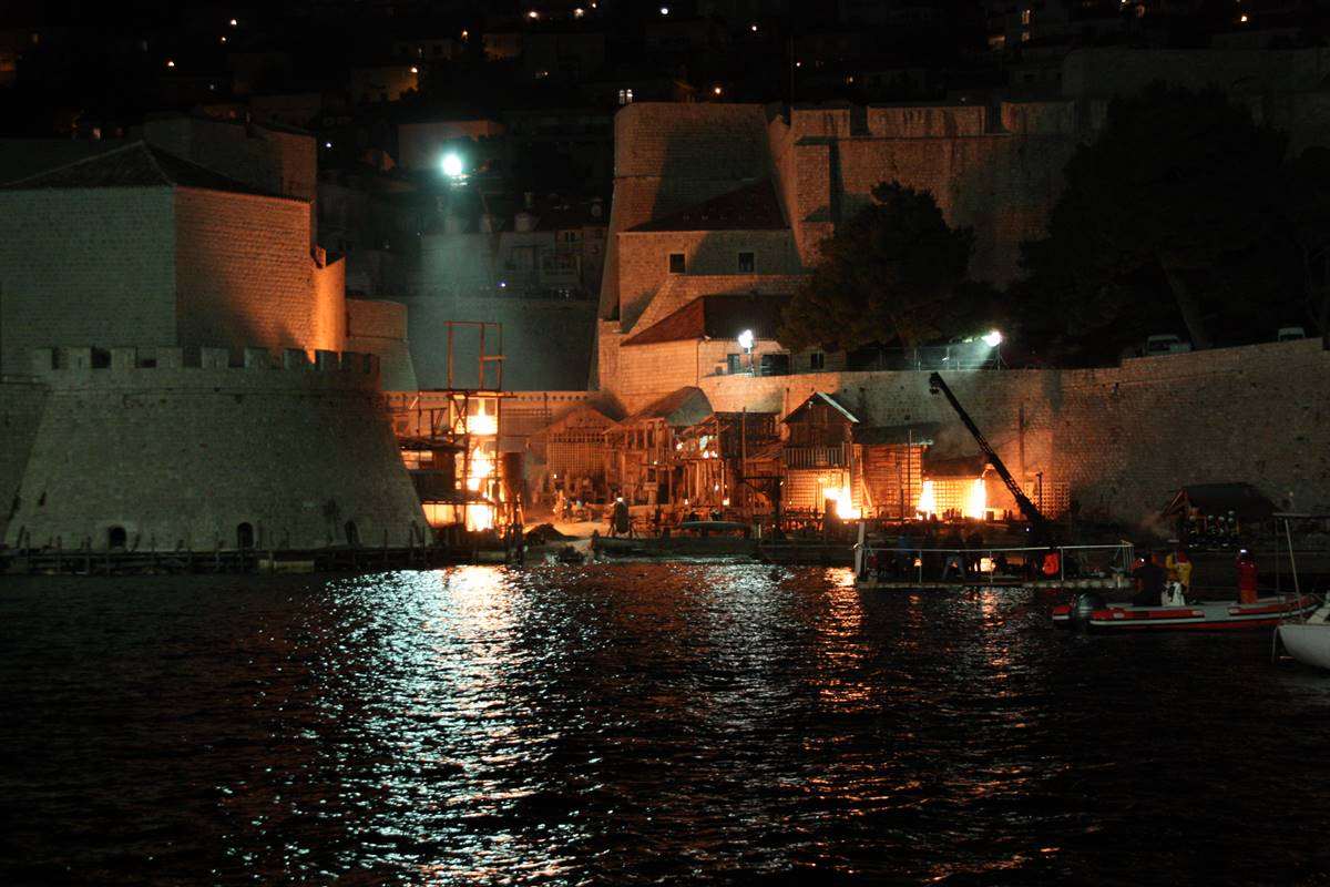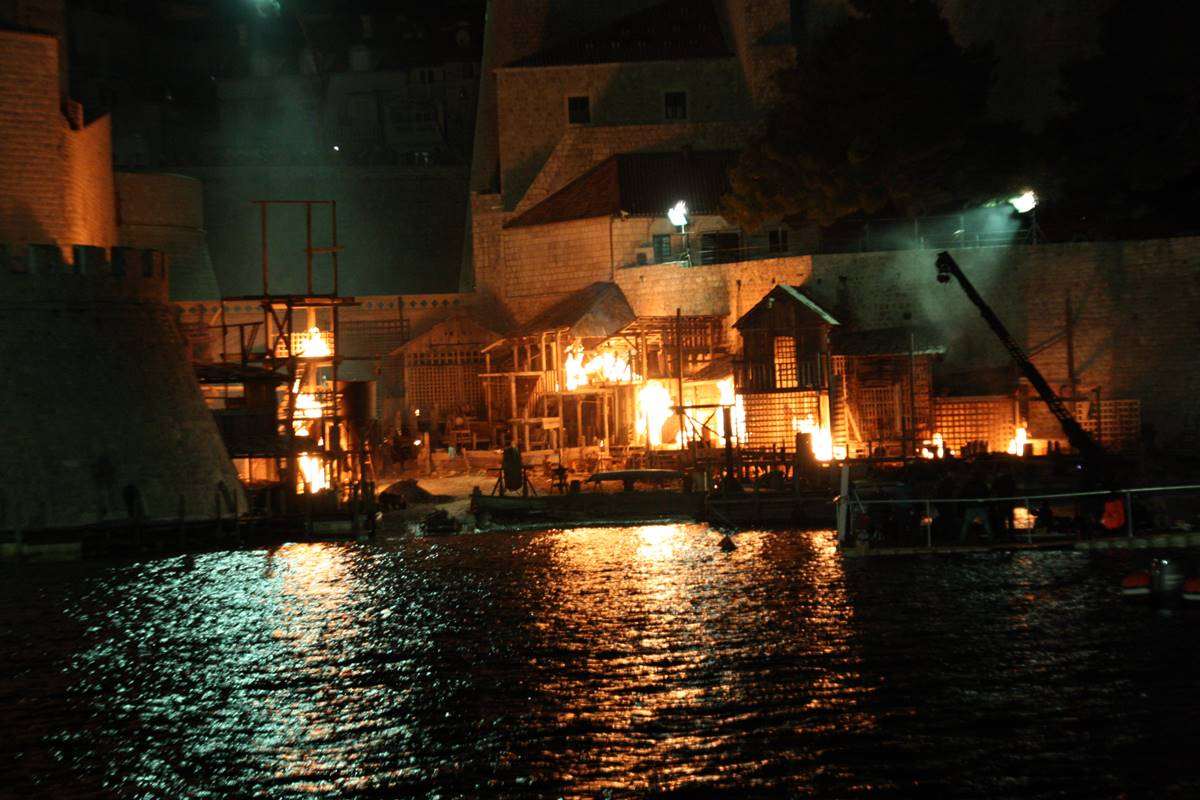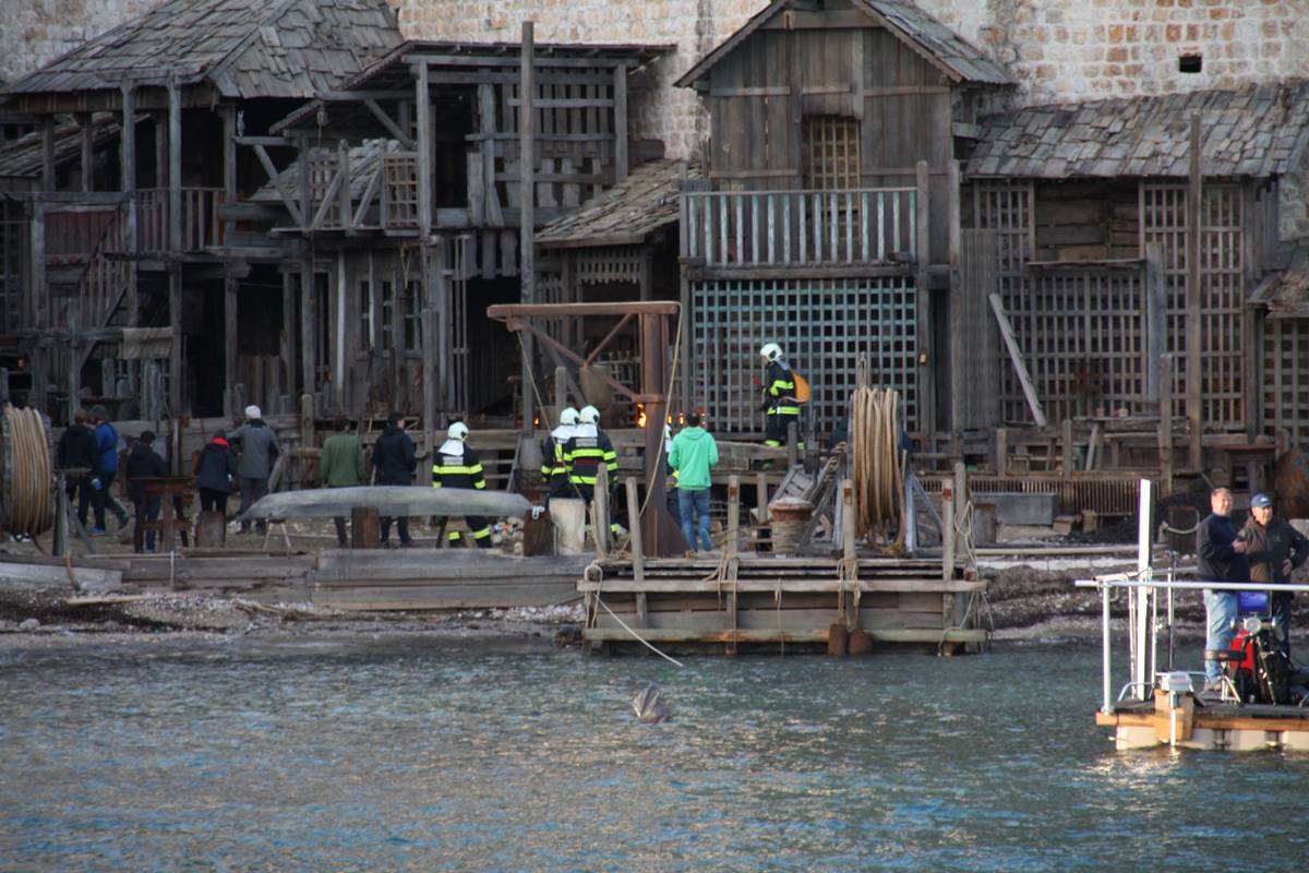 Monday afternoon, the film production “Robin Hood: Origins” conducted a controlled Special Effects burn of the sets that were constructed by the waterline adjacent the Posat harbor.