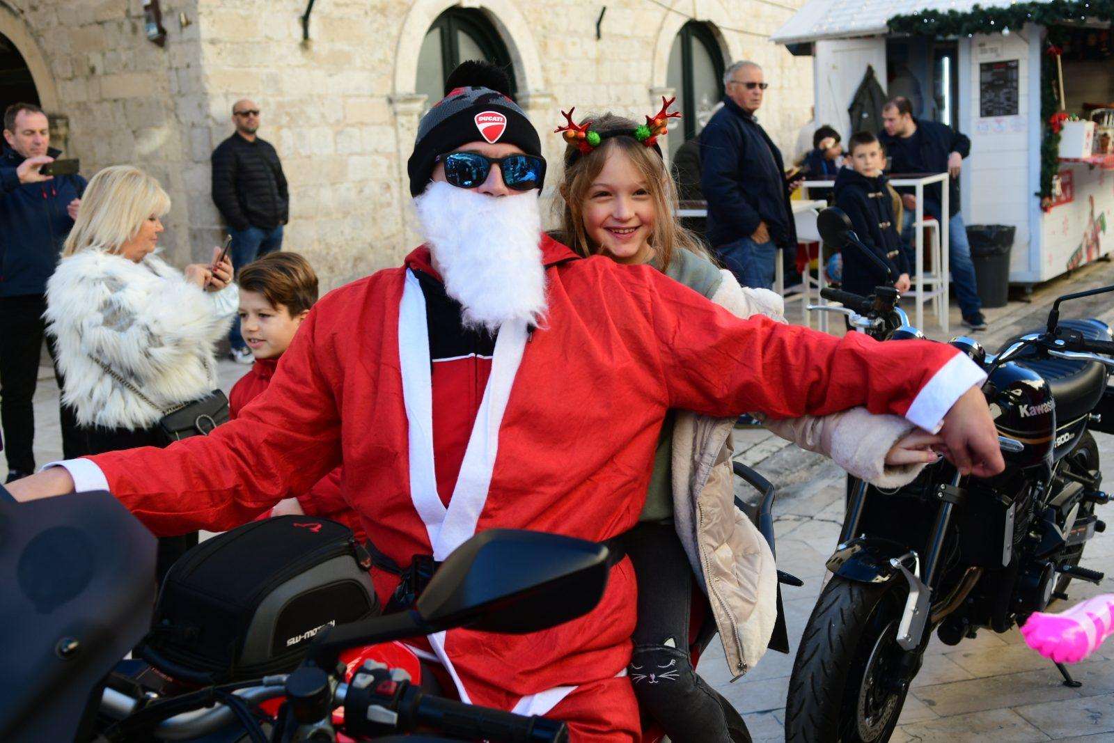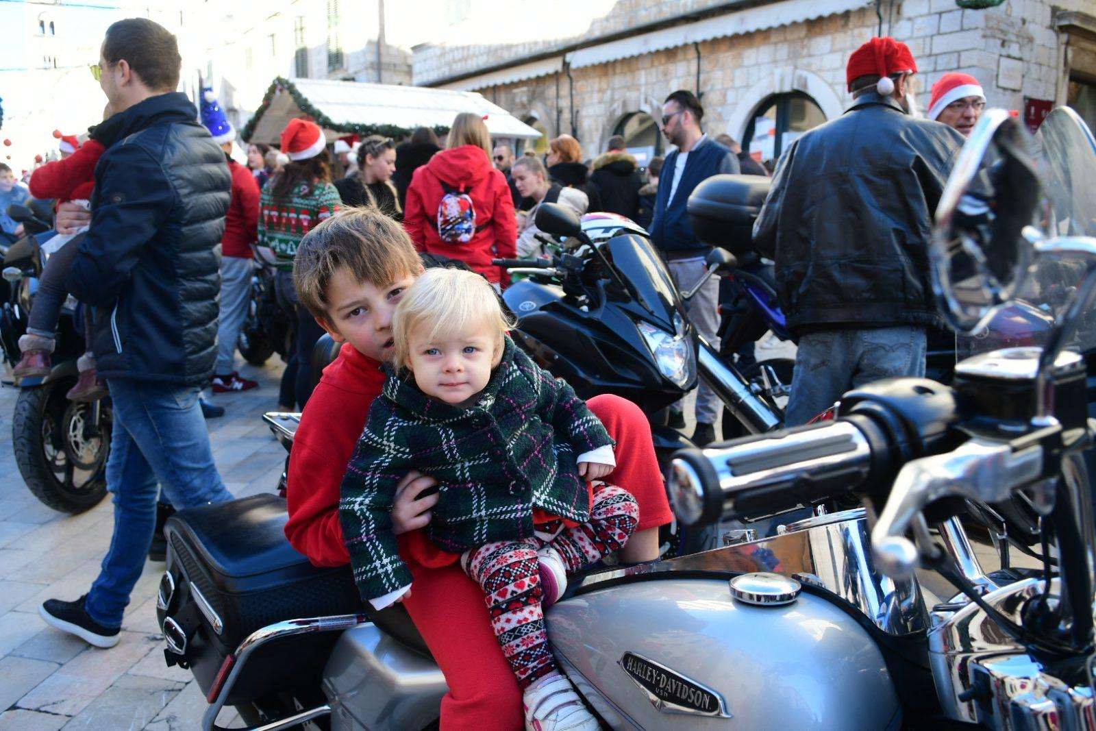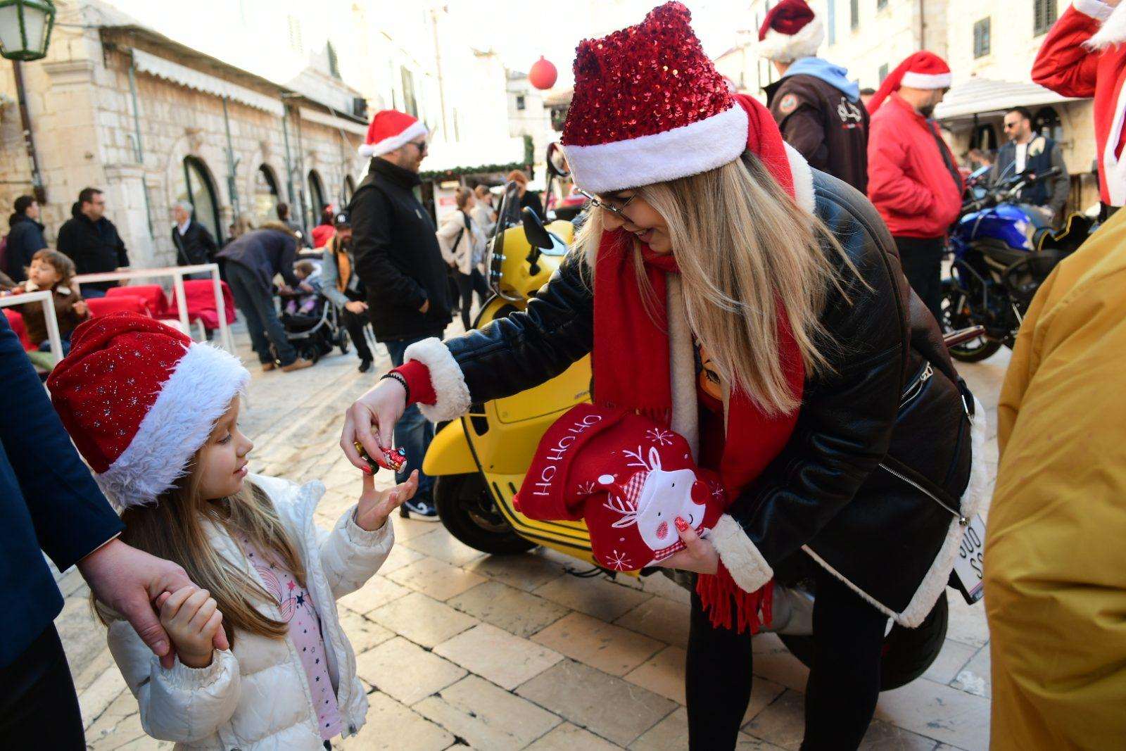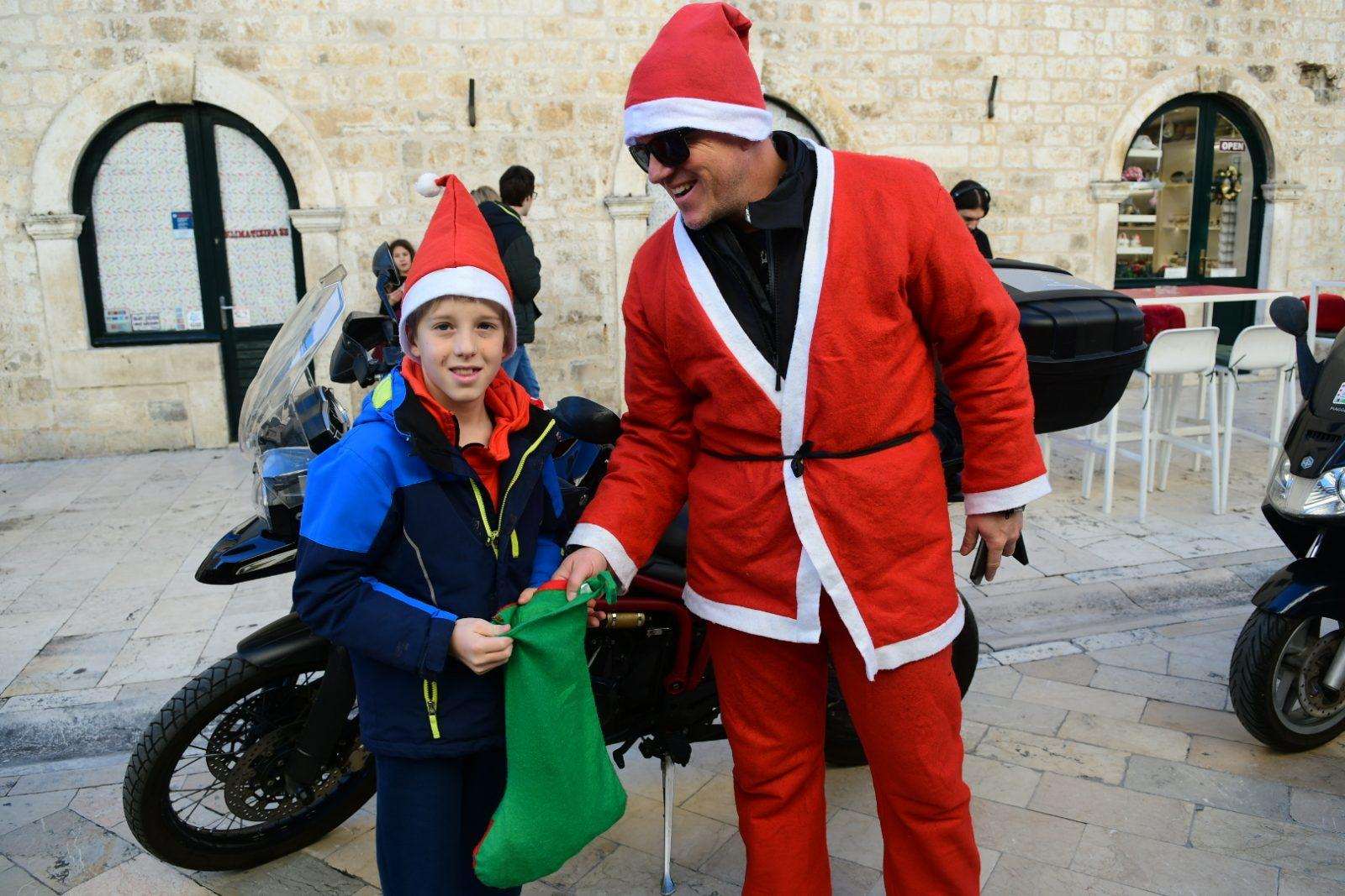 The traditional parade of Dubrovnik bikers was a real treat this morning on Stradun. As the sound of motorbikes filled the most beautiful street in the world, the young and the old gathered to greet and mingle with our famous moto-bunch. Of course, Santa Clauses wouldn’t be Santa Clauses if they didn’t have something in their bag for all the children present.