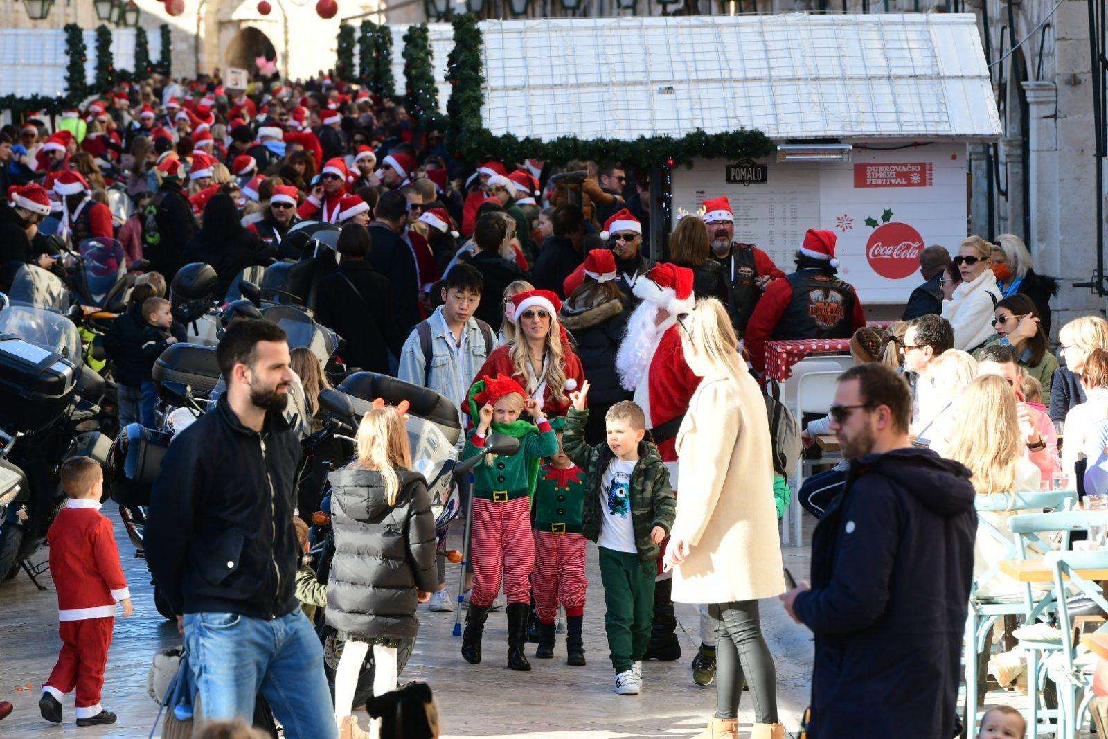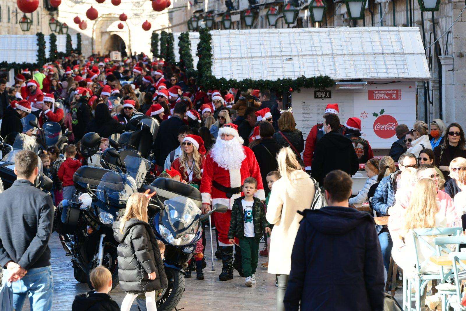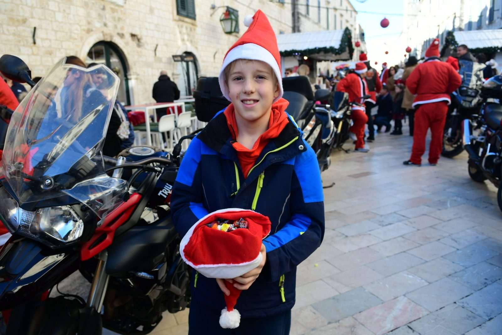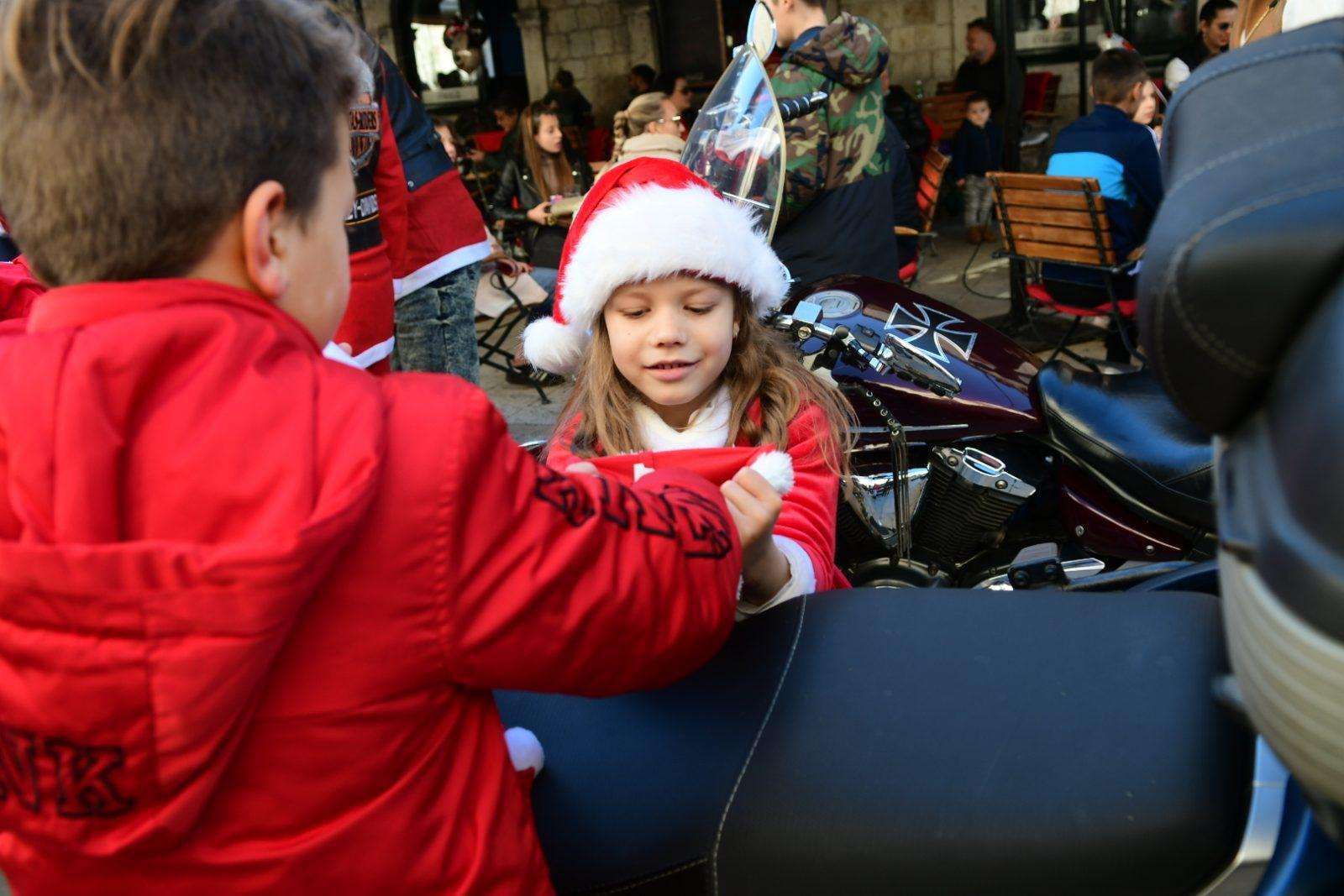 The traditional parade of Dubrovnik bikers was a real treat this morning on Stradun. As the sound of motorbikes filled the most beautiful street in the world, the young and the old gathered to greet and mingle with our famous moto-bunch. Of course, Santa Clauses wouldn’t be Santa Clauses if they didn’t have something in their bag for all the children present.