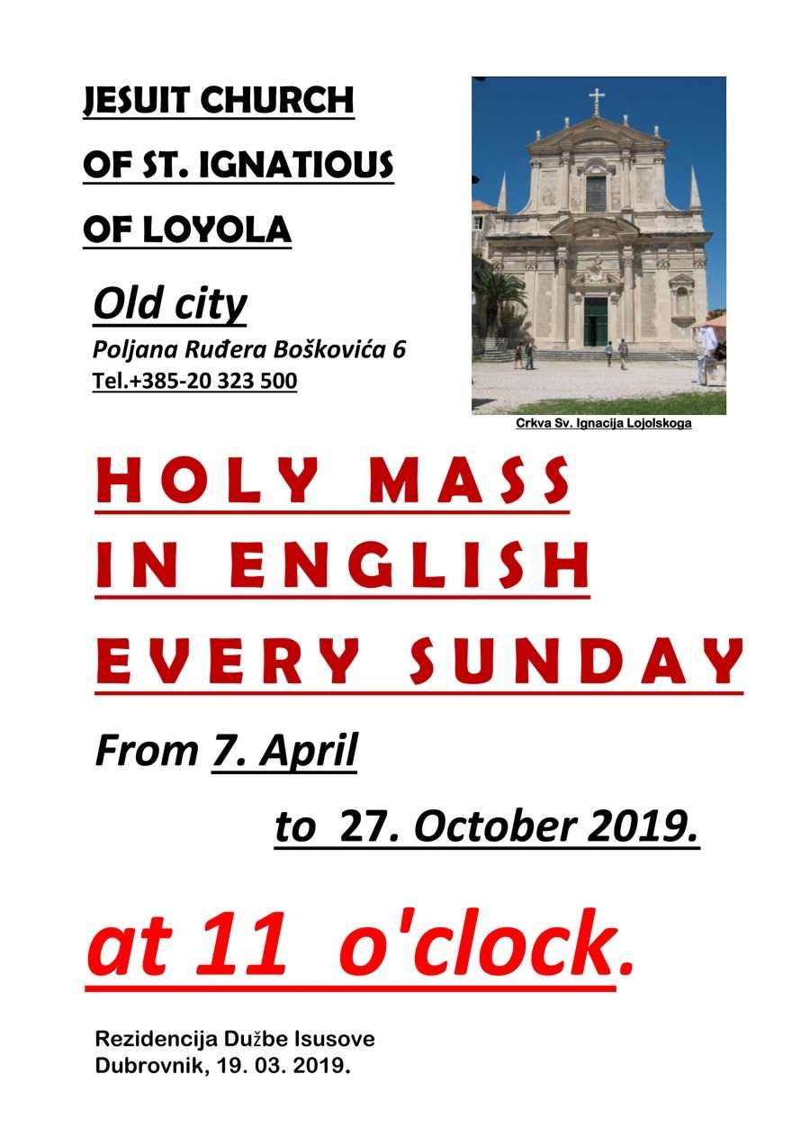 From this Sunday, April 7, Sunday Mass in English will be celebrated in the Jesuit Church of St. Ignatious of Loyola, Dubrovnik’s most beautiful baroque complex. Mass in English will be celebrated every Sunday at 11 am until October 27.