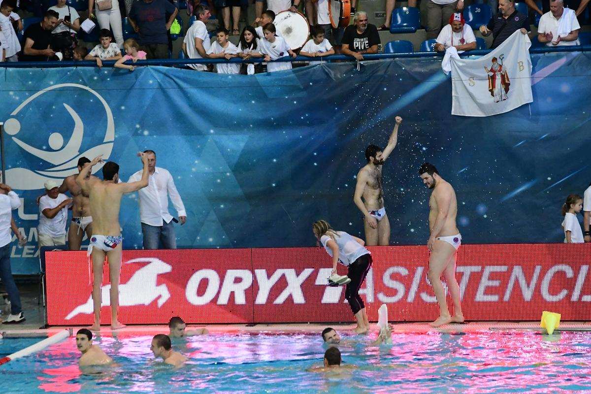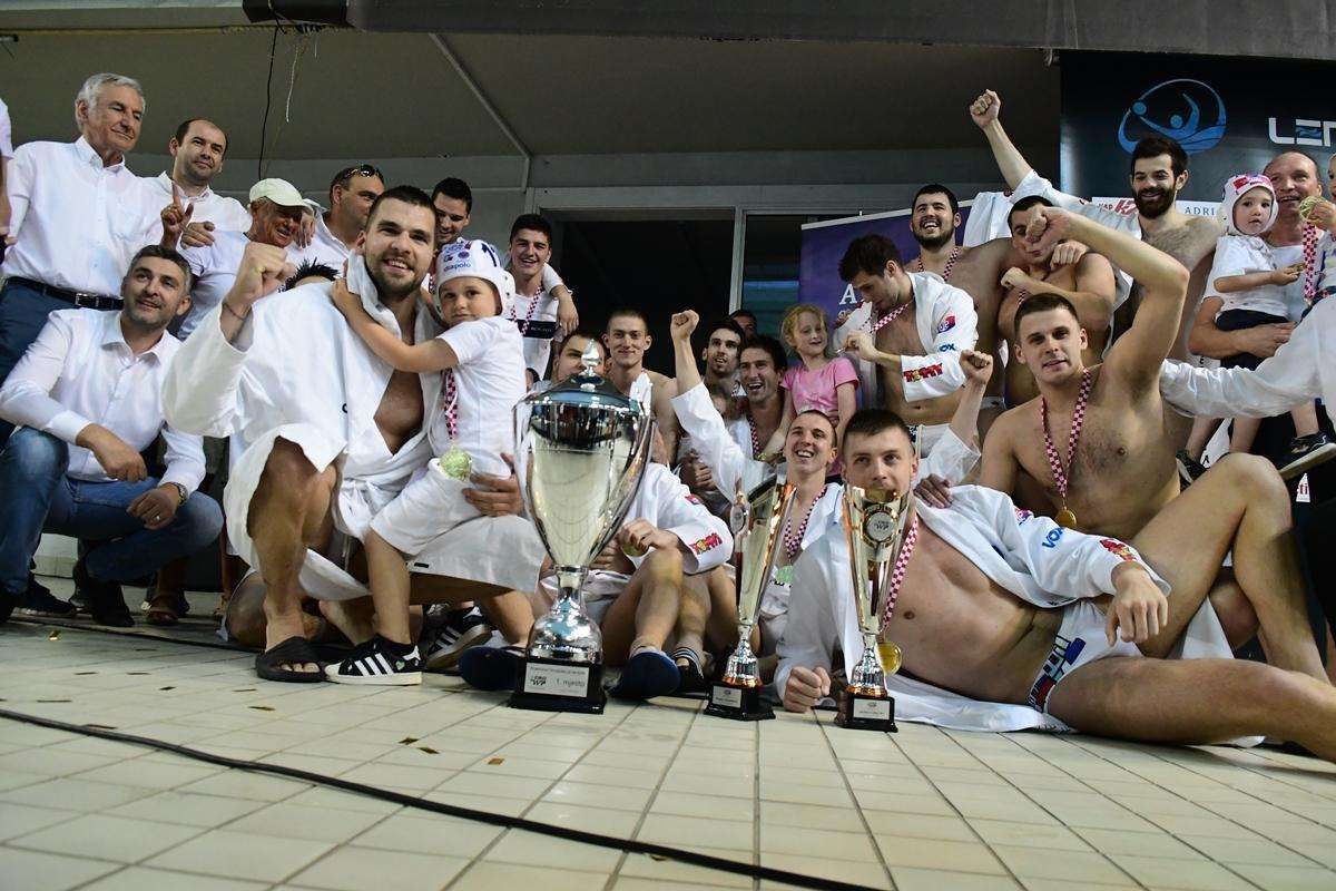 The spectators in the Gruz pool witnessed an exciting finish. They saw three goals in the last 103 seconds. In dying minutes, Jadran Split scored two quick goals and turned around a 4:5 deficit to a 6:5 lead. However, nine seconds before the end, Jug leveled at 6:6. The match entered a penalty shootout. The visitors missed the target twice in the shootout and Jug celebrated the new title.