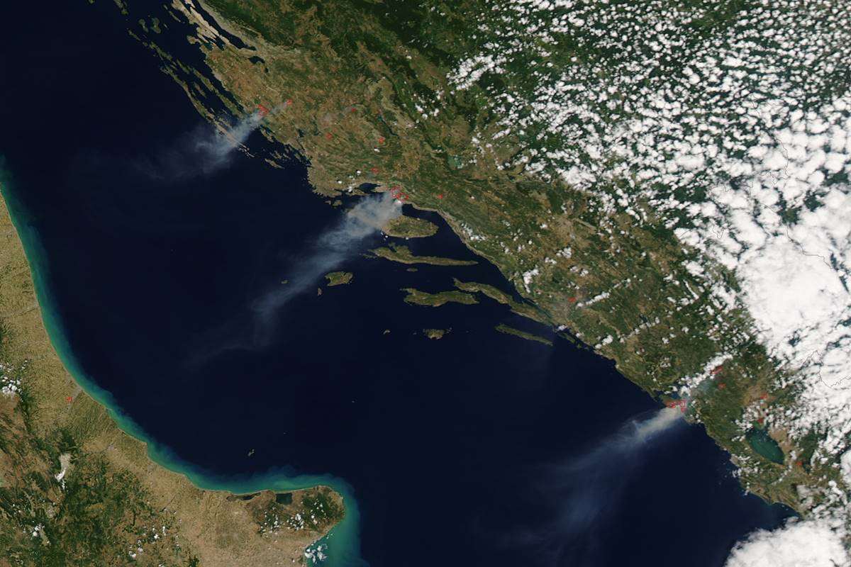 NASA’s Aqua satellite spotted smoke from fires burning in western Croatia and Montenegro along the coast of the Adriatic Sea, as they report on their official pages. Here’s the complete report they gave, and more info can be found on the web page.