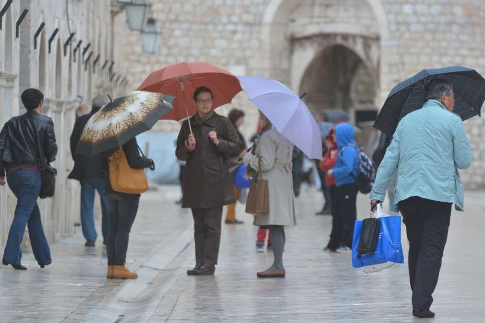 Despite the wet and stormy weather thanks to a strong south wind, the Stradun still plays host to tourist and locals alike, all enjoying Dubrovnik’s beautiful Old Town. Among the umbrella carrying tourists were a young bride and her Maid of Honour, making the most of her day, she certainly didn’t let the bad weather ‘rain on her parade’ when it came to her photos. Take a look at the Stradun under a greyer sky than normal below: