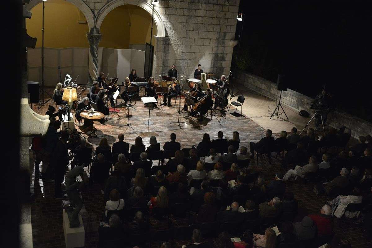 Dubrovnik marked the anniversary of Marin Držić’s death with the amazing concert held on the terrace of Museum of Modern Art Dubrovnik. This event was organized by MOMA Dubrovnik, Dubrovnik Symphony Orchestra and House of Marin Držić museum, and performerd were String Chamber Choir of Dubrovnik Symphony Orchestra conducted by maestro Đelo Jusić from Dubrovnik, Plazarius Ensemble, Klapa Kaše, with the reneissance music from Držić’s era. Special treat was the reading of the pems dedicated to Marin Držić by our famous academician Luko Paljetak.