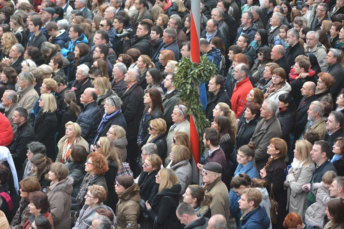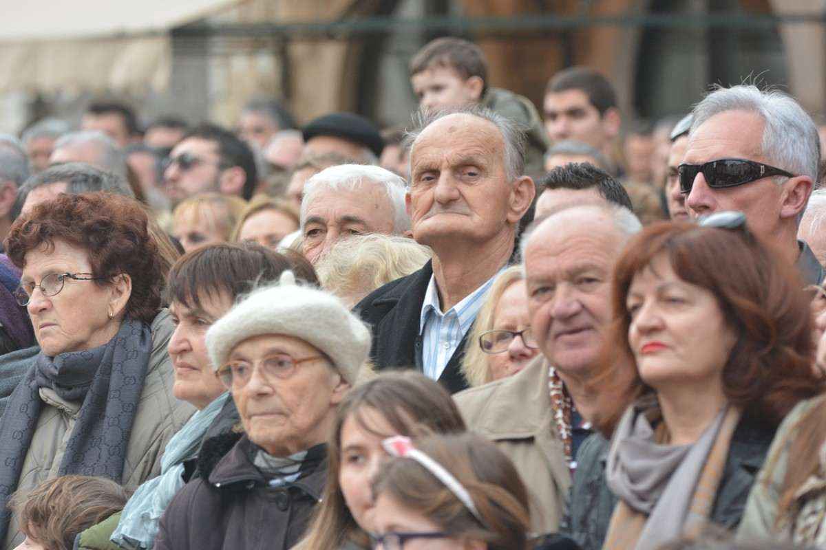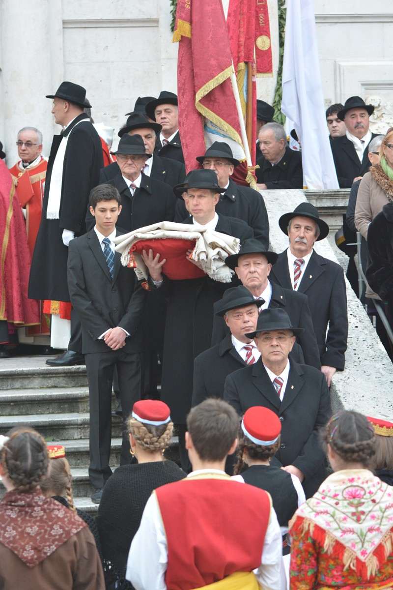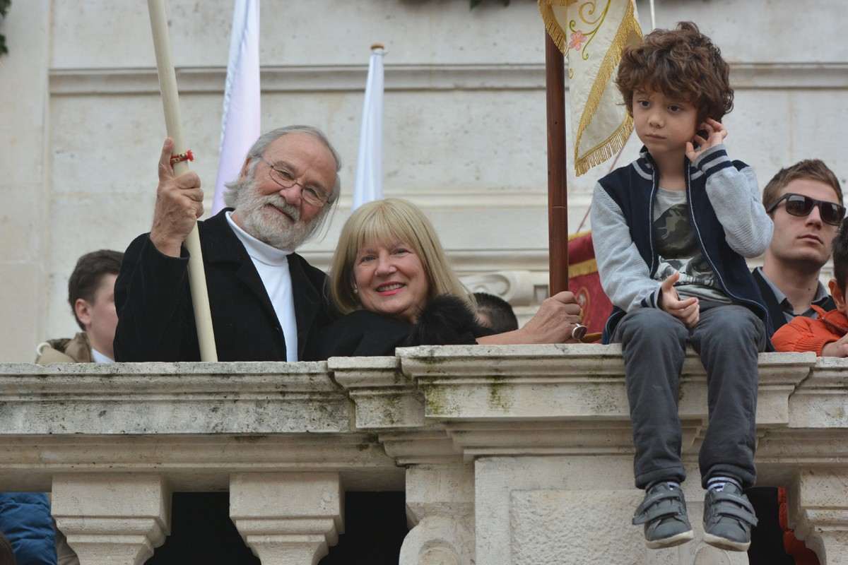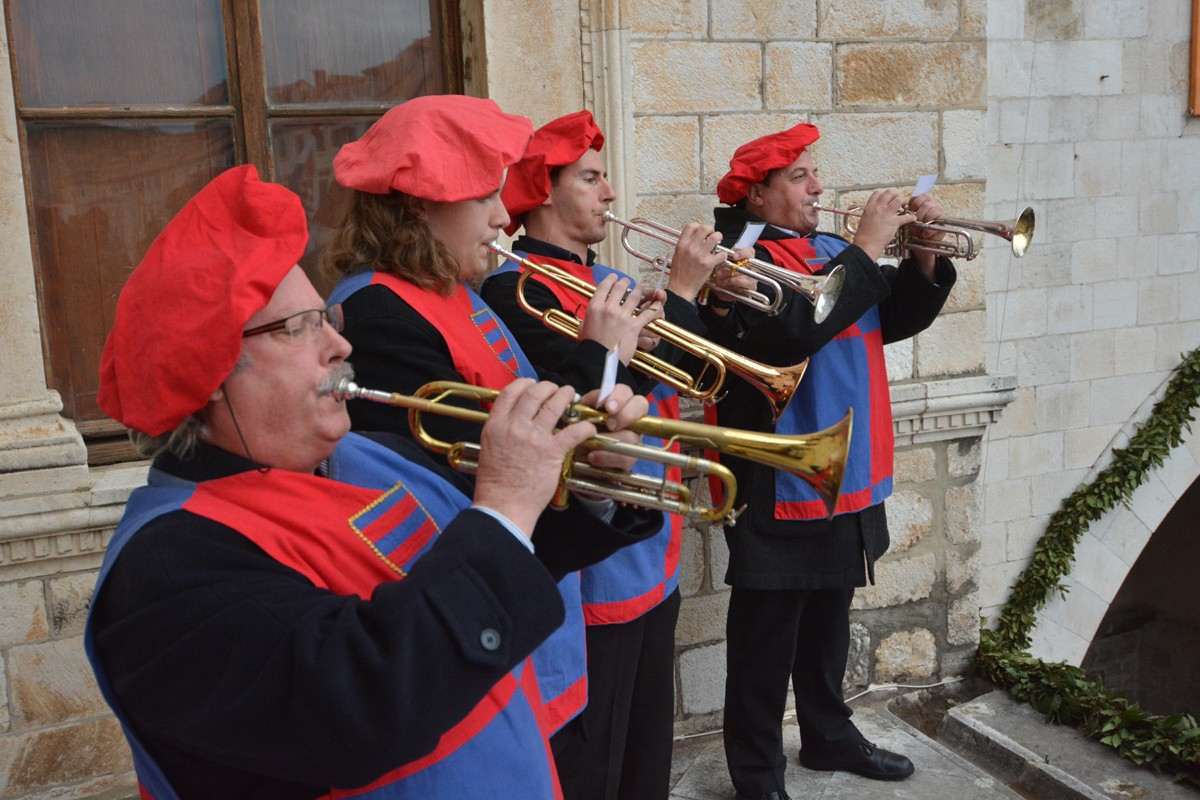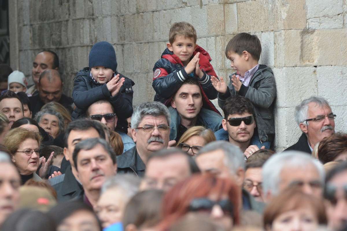 Dubrovnik’s brass band providing the music for the event and Dubrovnik’s Trombunjeri ceremonial gunmen were also in attendance. Masters of ceremony, known as Festanjuli, dressed in traditional sashes and bowler hats, raised the flag of St.Blaise on Orlando’s column, something considered a great honour for those selected. Members of local folklore ensembles were also part of the procession, dressed in their intricate traditional costumes.