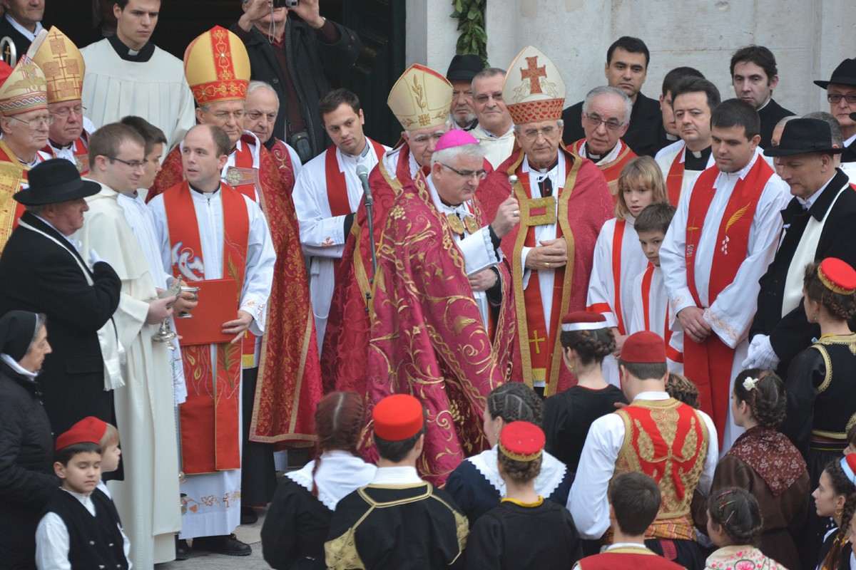 Today’s celebration of Candlemass in Dubrovnik’s Old Town marks the beginning of festivities in honour of the city’s patron saint, Saint Blaise. Thousands flocked to the beautiful walled town for the opening ceremony, to see Bishop Mate Uzinic release white doves on the steps of the Church of St.Blaise, symbolising freedom and peace.