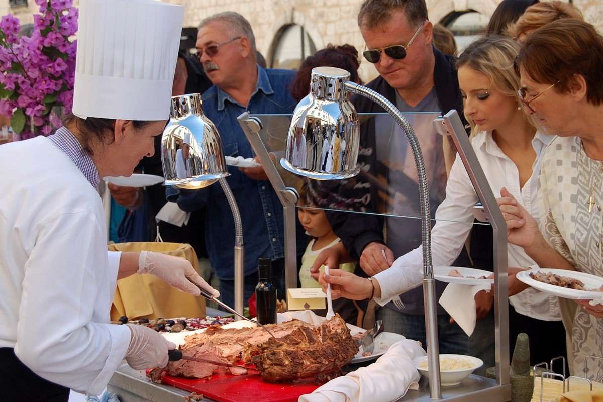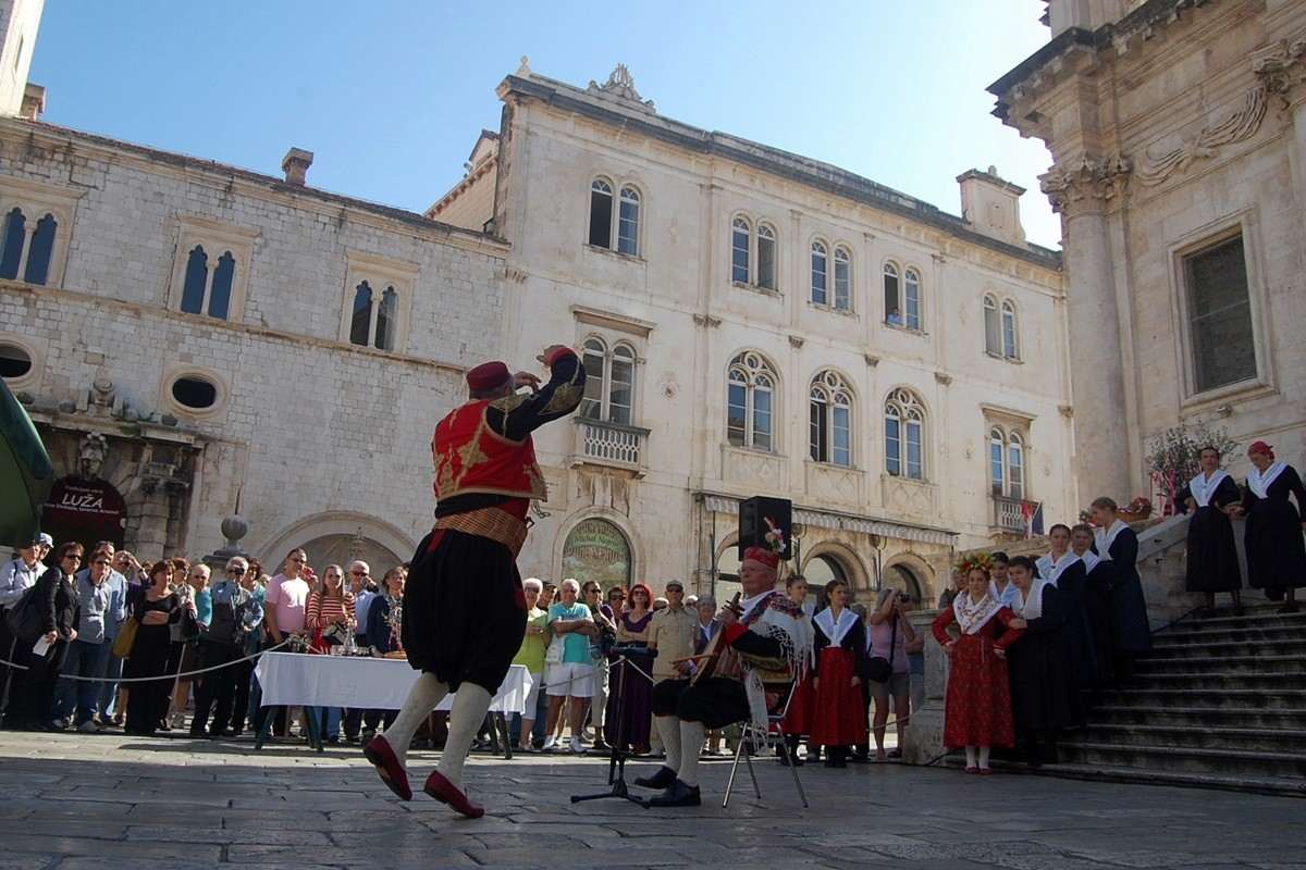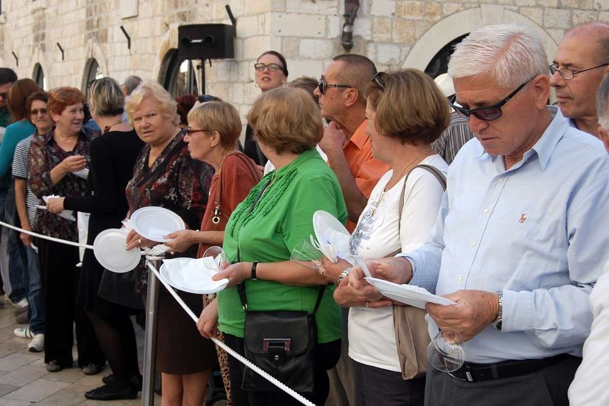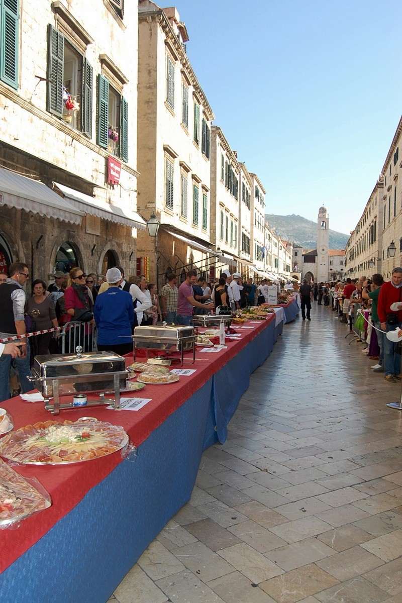For those visiting the Old Town today at lunch time, a real treat was in store. The annual gastro event ‘Dubrovnik’s Dining table’ kicked off at 12 noon with a wide range of local delicacies painstakingly prepared by restaurants and hotels from all over the city. Music opened the day’s proceedings at 11 am in front of the Church of St. Blaise with a folkore ensemble from Primorje and male vocal group Klapa Kase.