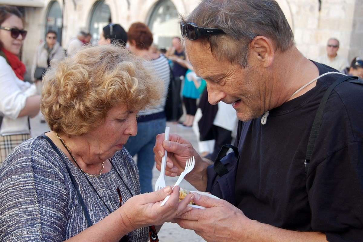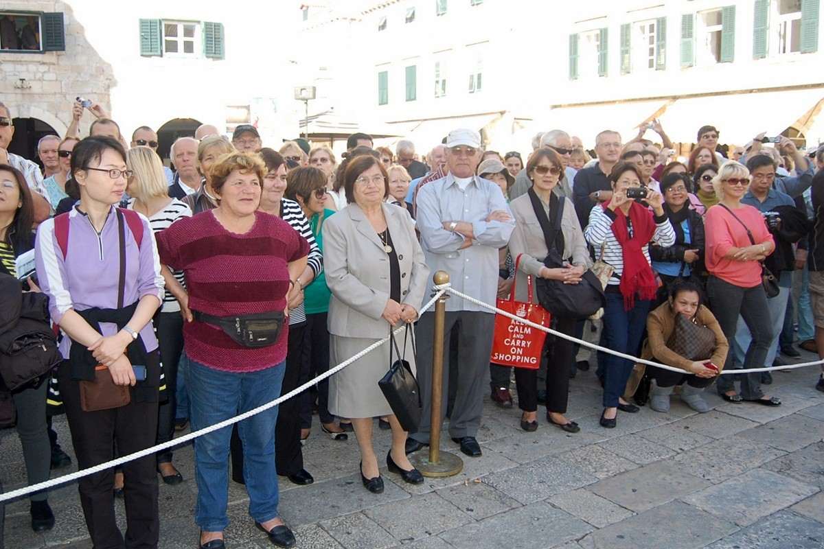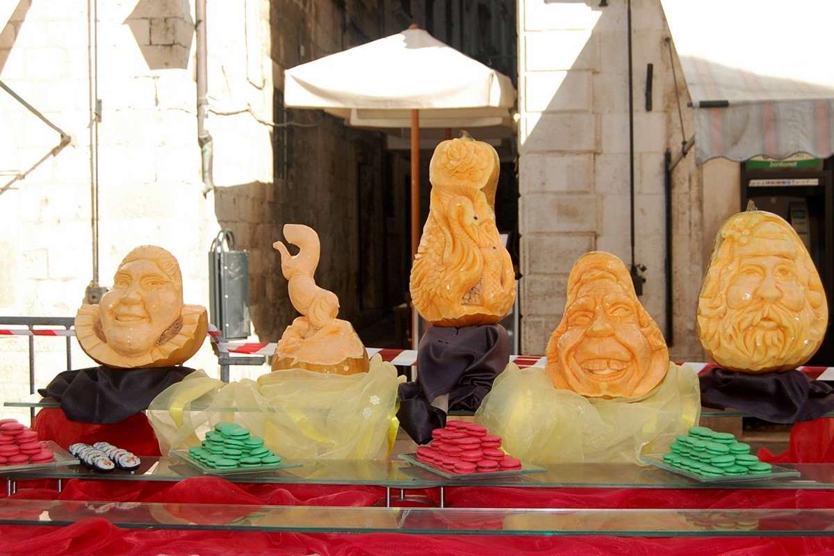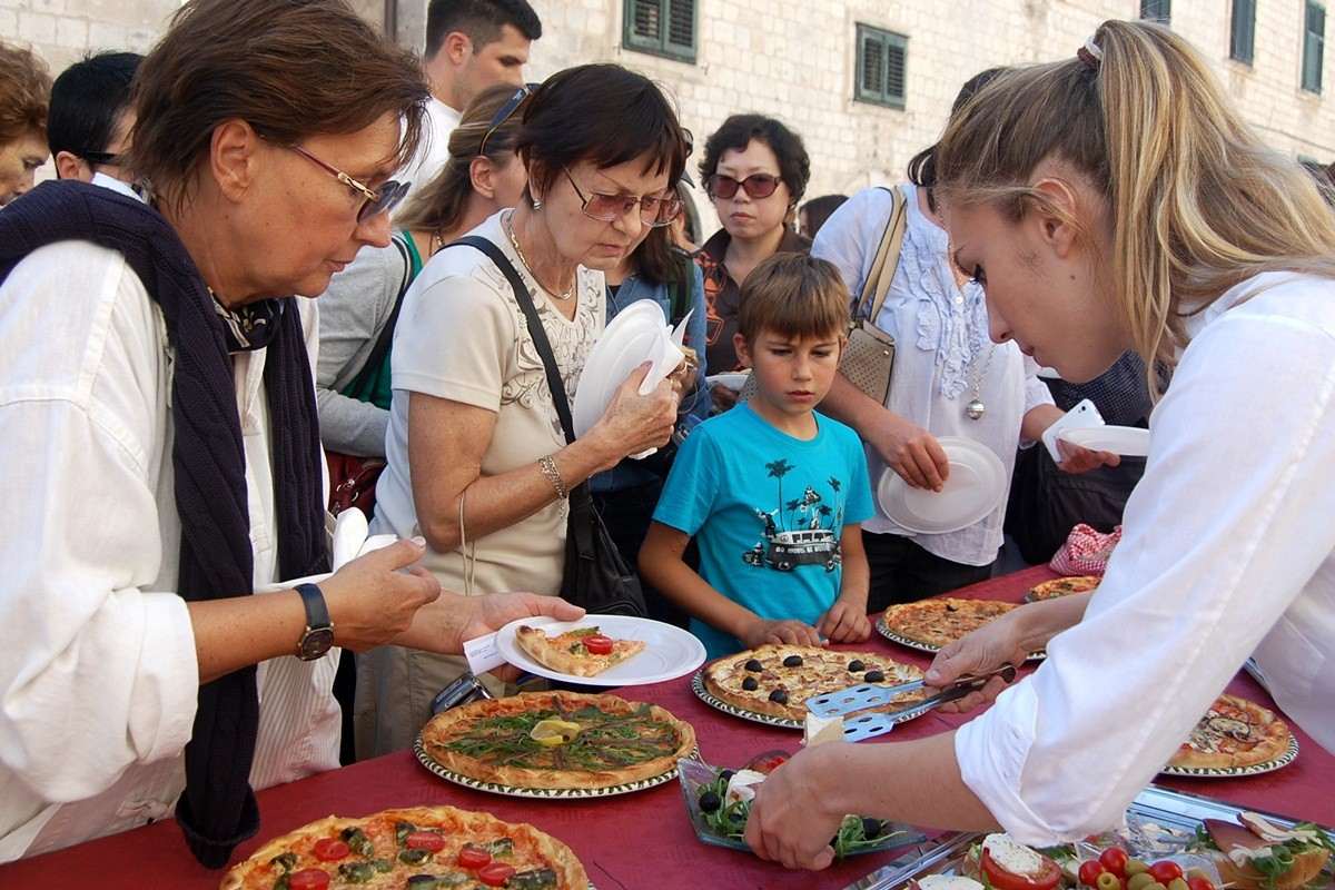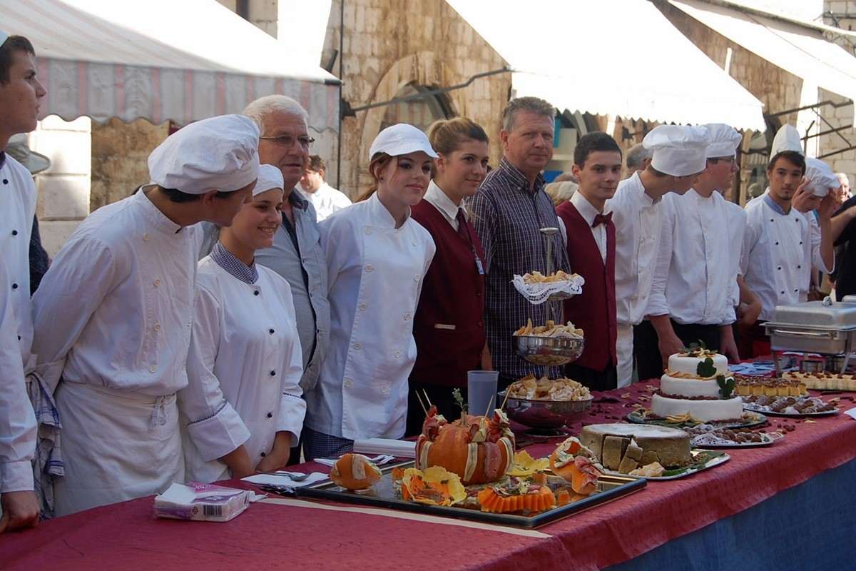For those visiting the Old Town today at lunch time, a real treat was in store. The annual gastro event ‘Dubrovnik’s Dining table’ kicked off at 12 noon with a wide range of local delicacies painstakingly prepared by restaurants and hotels from all over the city. Music opened the day’s proceedings at 11 am in front of the Church of St. Blaise with a folkore ensemble from Primorje and male vocal group Klapa Kase.