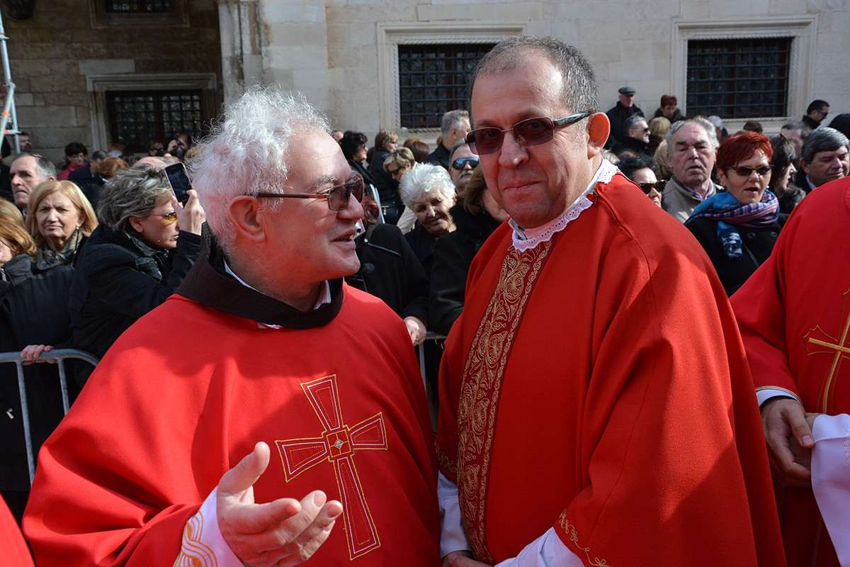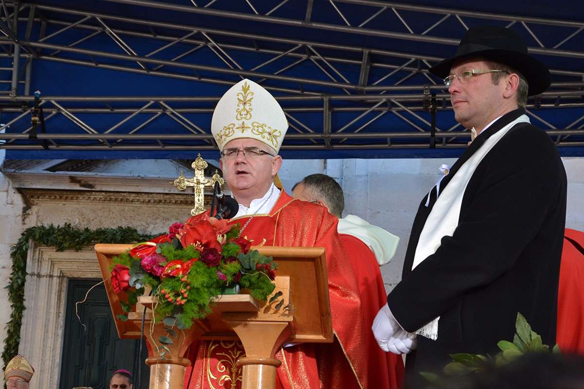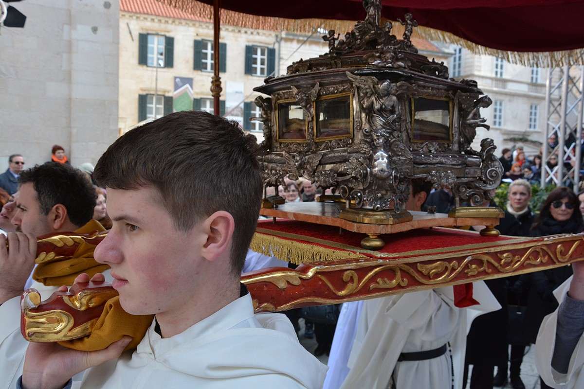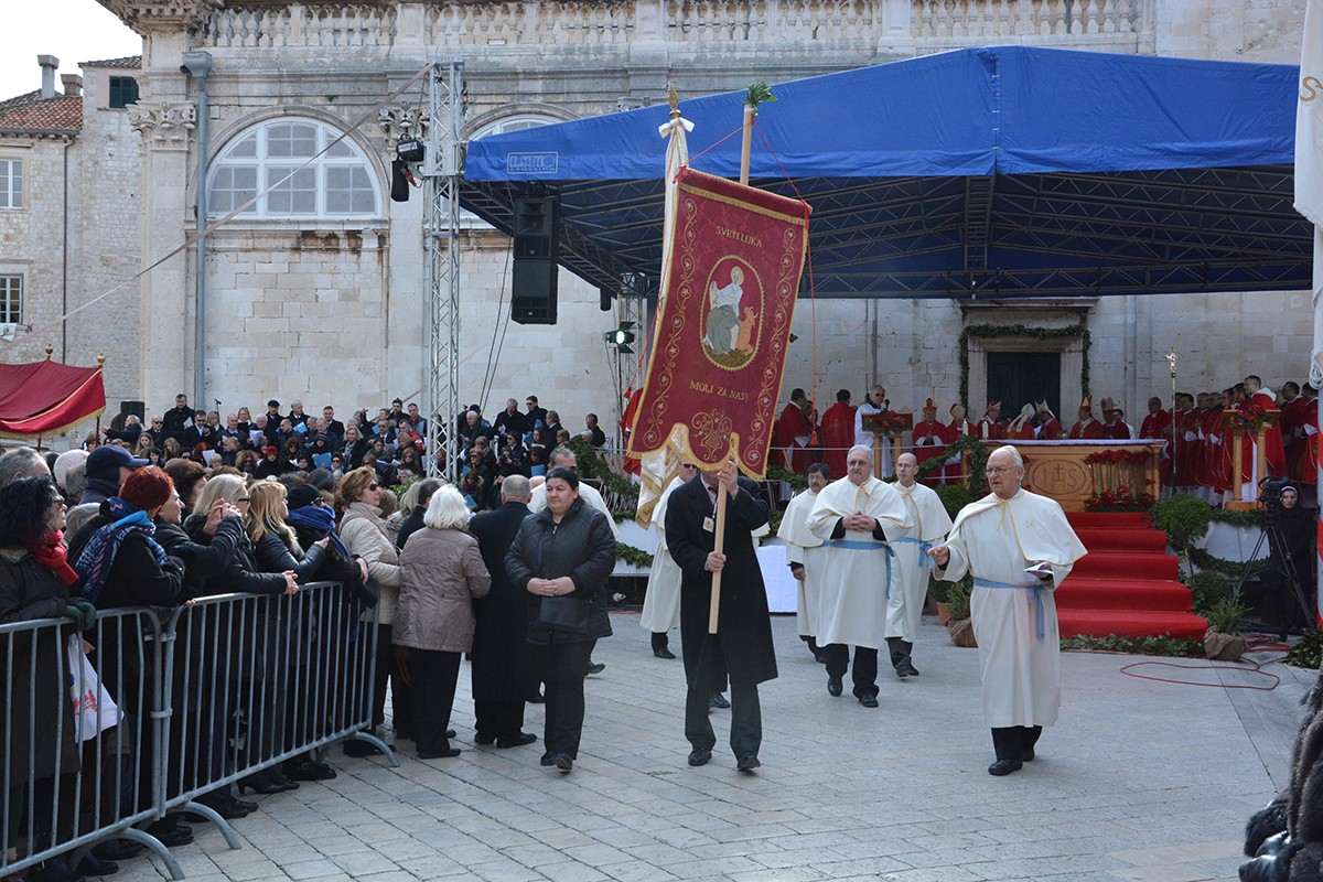 St.Blaise is the city’s patron saint and guardian whose feast day is marked with many celebrations and events in Dubrovnik. Today’s celebration of the feast day of St.Blaise has its roots in ancient legend according to which Saint Blaise , Bishop and martyr of Sebaste , saved Dubrovnik from the Venetians . According to historical records, at the end of the 14th century a Venetian fleet on its way to Levant, anchored in front of the island of Lokrum and Gruz. Locals in Dubrovnik welcomed them with open arms not knowing their true intentions – conquering the city. One night, Saint Blaise appeared to a priest named Stojko of the the then Church of St. Stephen, and warned him that the Venetians wanted to take Dubrovnik. As described by Serafin Razzi, the grey-haired Bishop Blaise, who was accompanied by armed military, said that he was sent from heaven to protect the city from the Venetians, who that night had secretly come to the city walls in order to jump over and begin their attack. According to the vision, Saint Blaise with the help of the heavenly army, threw the Venetians from the walls of Dubrovnik.