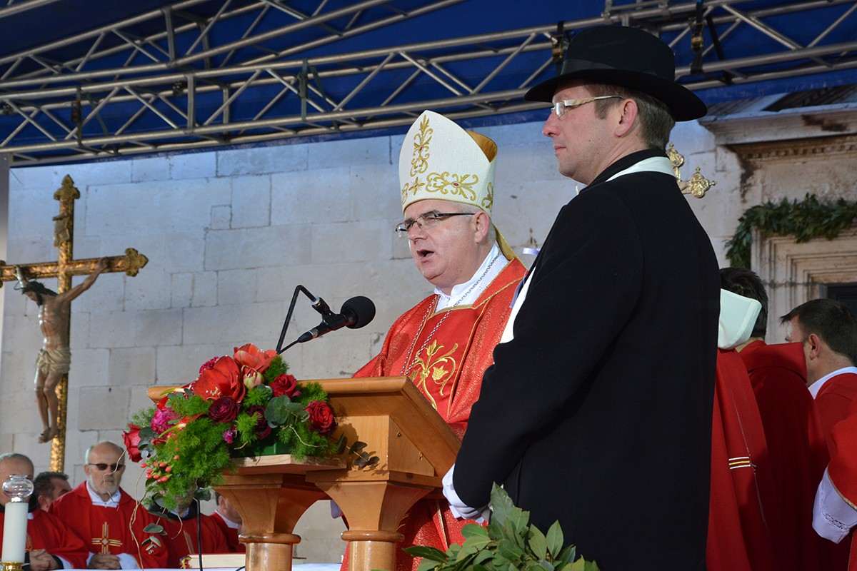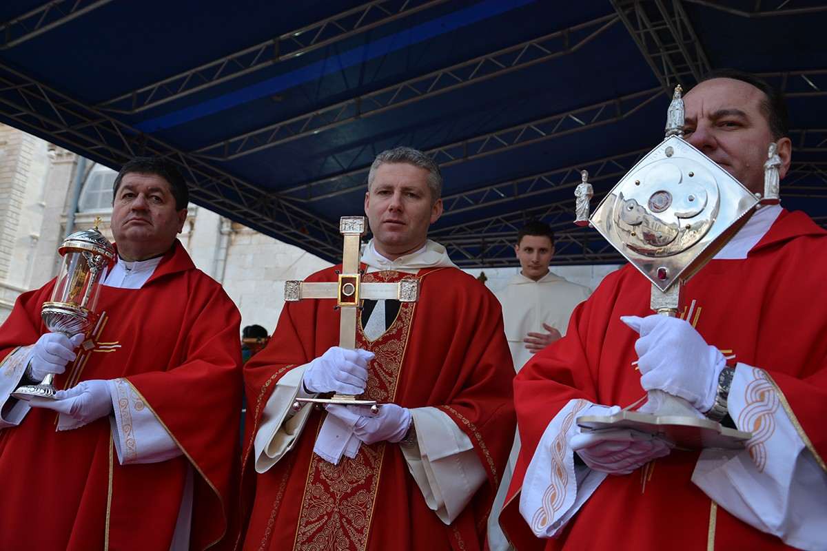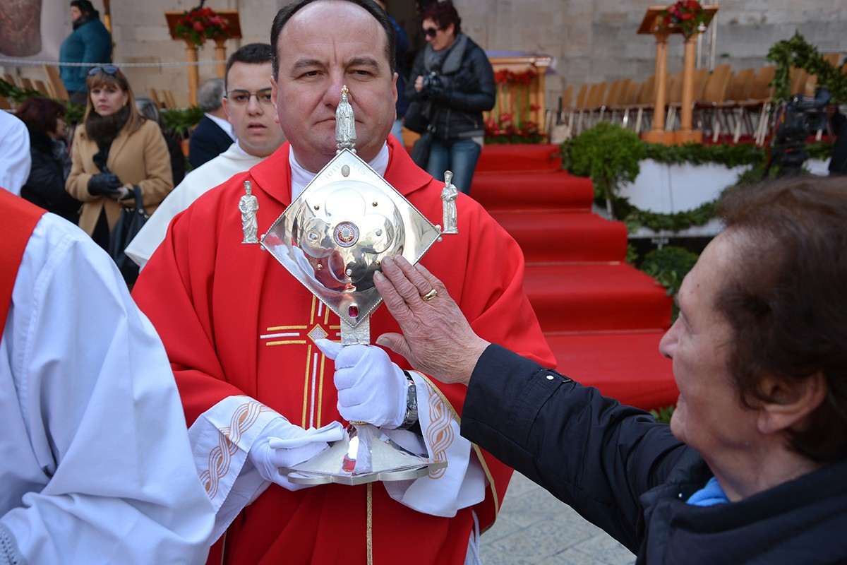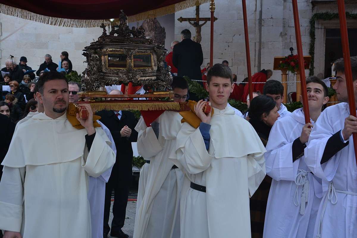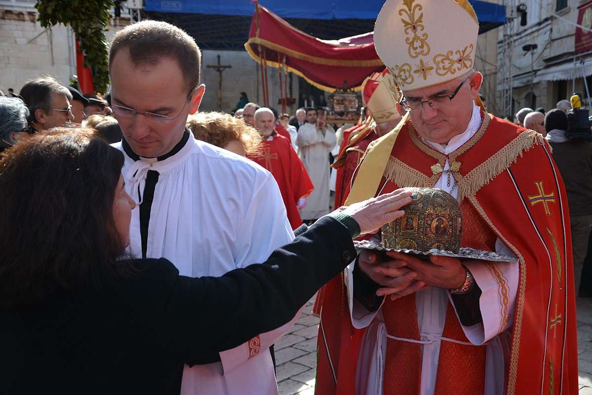 St.Blaise is the city’s patron saint and guardian whose feast day is marked with many celebrations and events in Dubrovnik. Today’s celebration of the feast day of St.Blaise has its roots in ancient legend according to which Saint Blaise , Bishop and martyr of Sebaste , saved Dubrovnik from the Venetians . According to historical records, at the end of the 14th century a Venetian fleet on its way to Levant, anchored in front of the island of Lokrum and Gruz. Locals in Dubrovnik welcomed them with open arms not knowing their true intentions – conquering the city. One night, Saint Blaise appeared to a priest named Stojko of the the then Church of St. Stephen, and warned him that the Venetians wanted to take Dubrovnik. As described by Serafin Razzi, the grey-haired Bishop Blaise, who was accompanied by armed military, said that he was sent from heaven to protect the city from the Venetians, who that night had secretly come to the city walls in order to jump over and begin their attack. According to the vision, Saint Blaise with the help of the heavenly army, threw the Venetians from the walls of Dubrovnik.