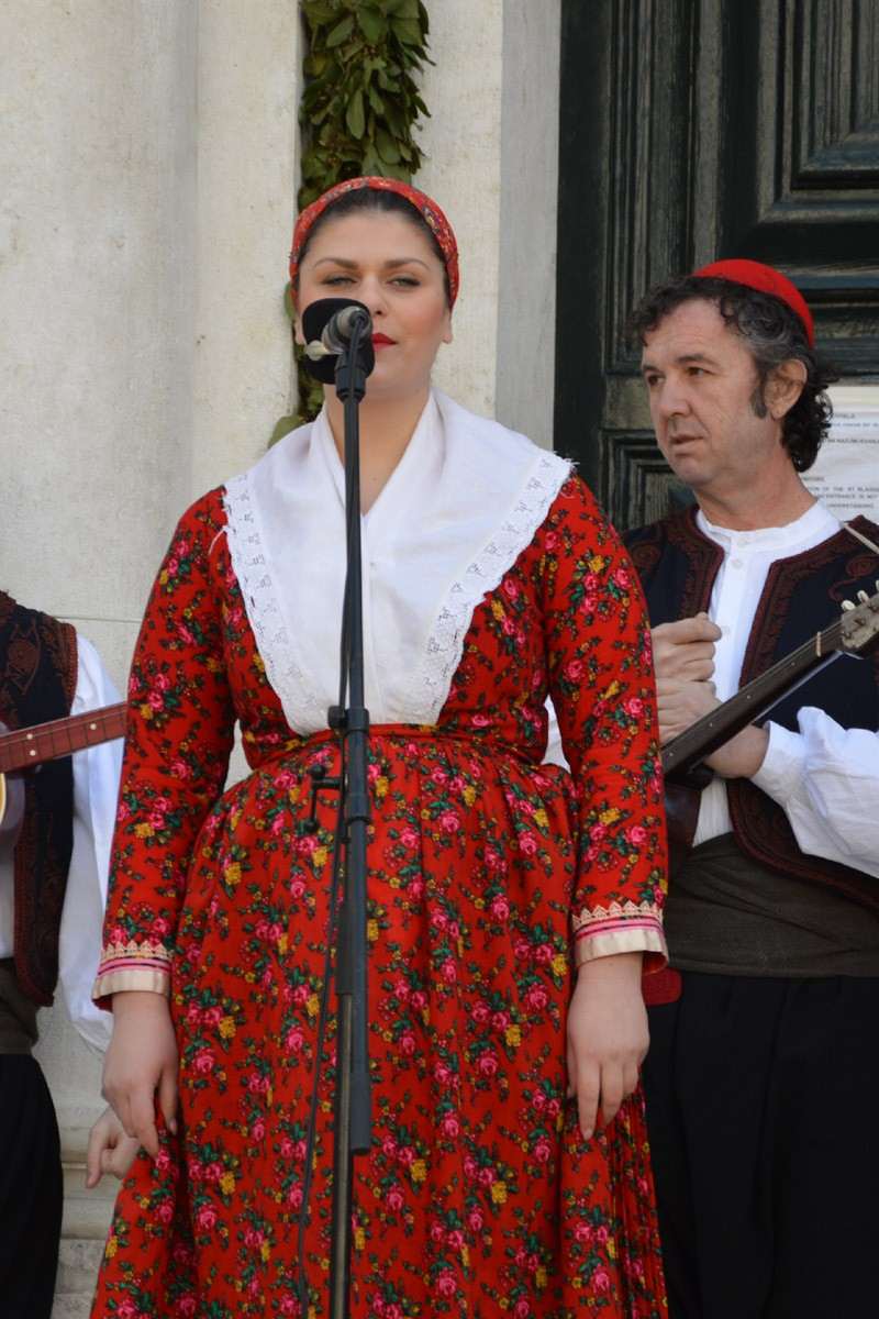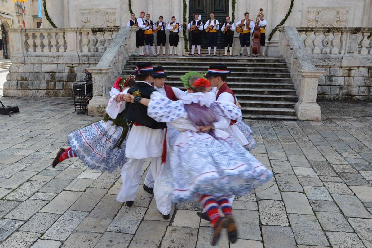 for gathered citizens in front of the Church of St. Blaise. They performed Croatian songs and dances, entertaining citizens and guests of the city who enjoyed their performances.
