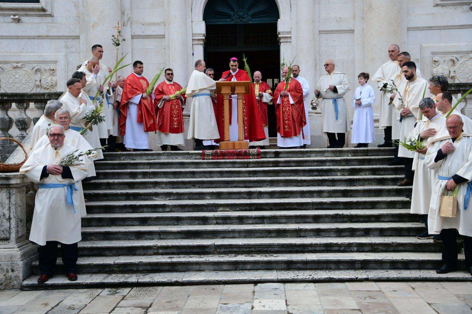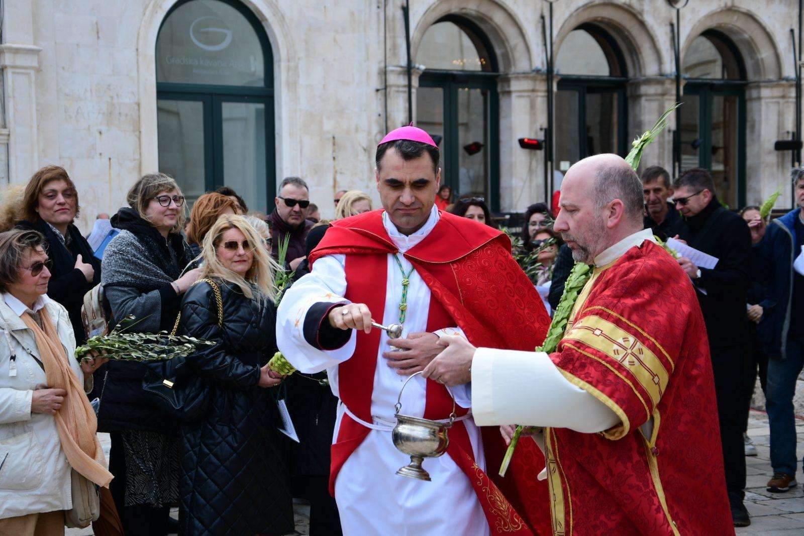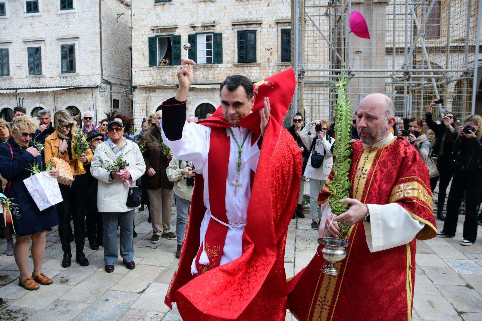 ‘Pomice’ are plaited palm leaves, which together with an olive branch and a bunch of spring flowers are taken to church be blessed, just like this Sunday, one week before Easter. Palm branches – pomice – were blessed by the new bishop of Dubrovnik, mons. Roko Glasnović.