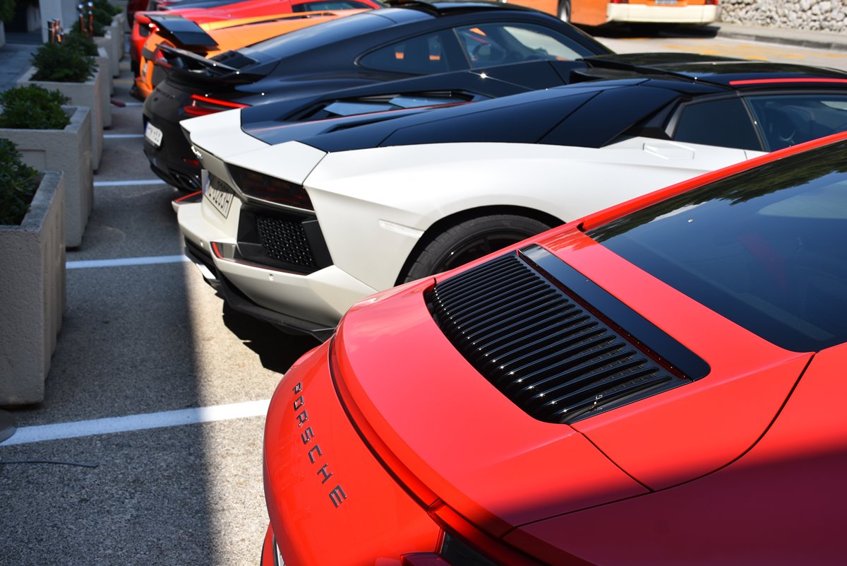 Ferrari, Lamborghini, Corvette, Porsche, Mercedes… The most expensive one is Lamborghini Aventador LP 700-4 Pirelli Edition from 2014 worth more than 450 thousand Euros.