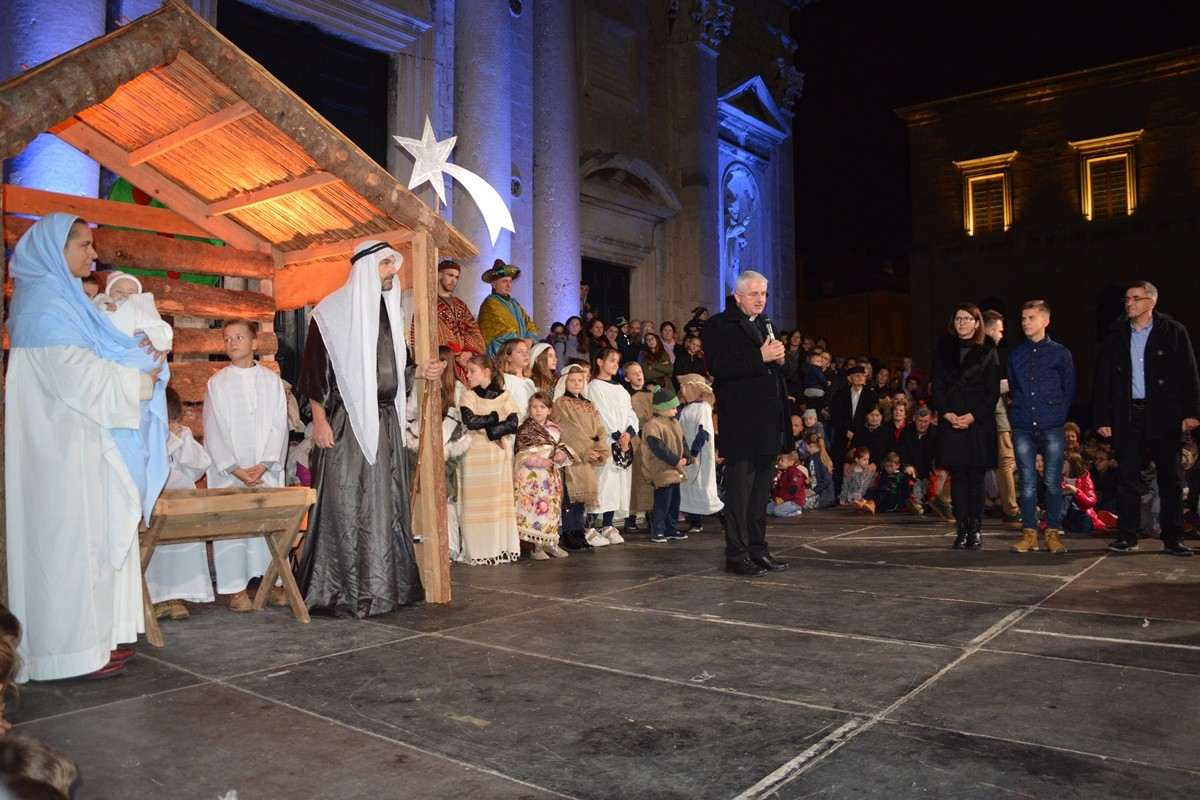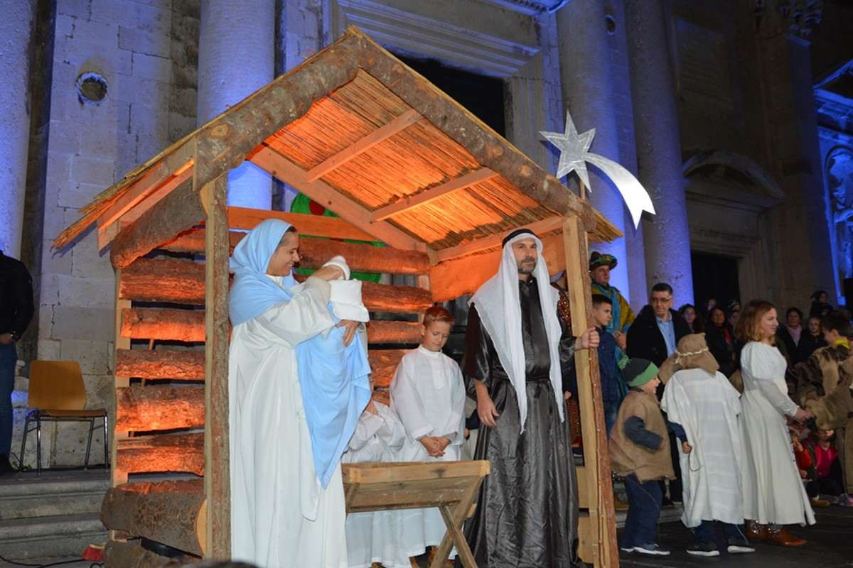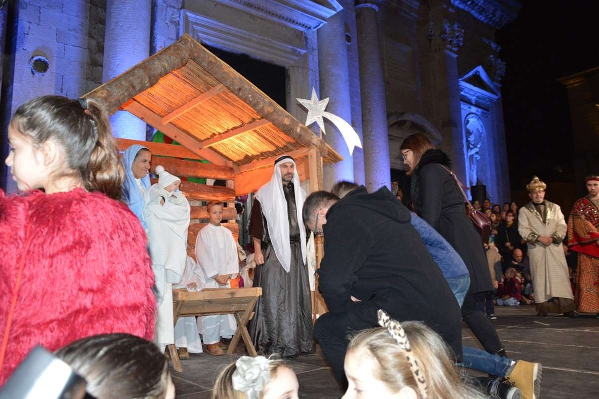 The Life and Family Council of the Dubrovnik Diocese organized the Live Nativity Scene this Sunday in front of the Dubrovnik Cathedral and the Holy Family was played by Josip and Marina Milićević from the parish of St. Andrija with their children – Ante, Rafael, Frano and Pero.