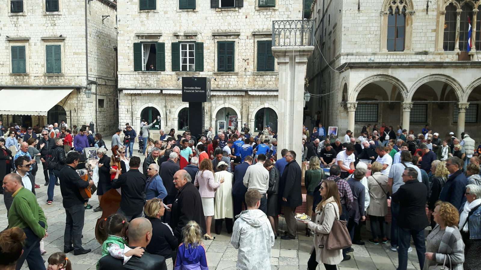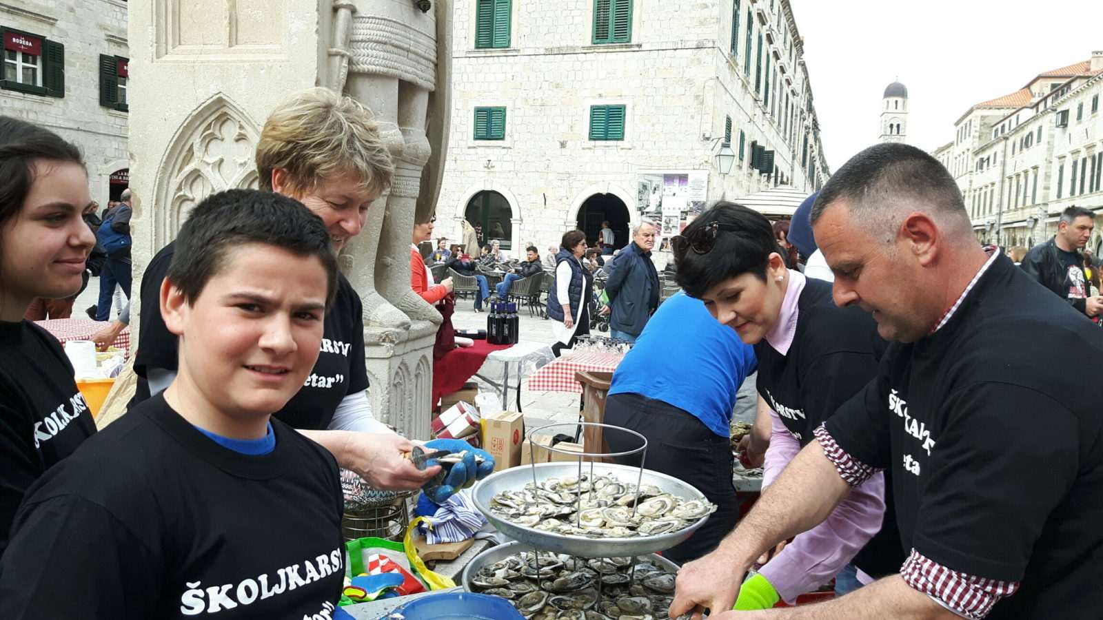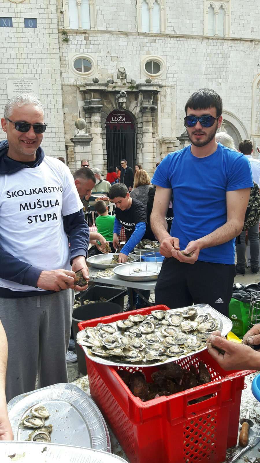 Numerous tourists and citizens of Dubrovnik entertained by Trio Taliri and Shellfish from Ston and Peljesac wine makers to provide oysters for the symbolic price of 5 € each and a glass of wine at a price of 10 kn. Participated Shellfish: Joseph Bazdan, Ivo Bautović, Brothers Lazic and Niksa Matkovic; while the winemakers were OPG Winery Mare Andrović from Ponikve, OPG Winery Zuzul from Potomje Winery OPG Marina Matuško from Potomje and OPG Winery Zeljko Matkovic from Potomje.