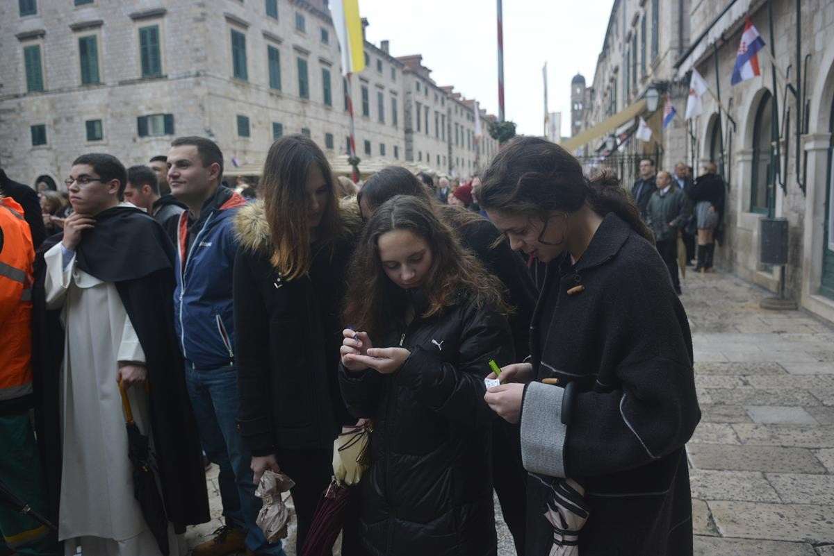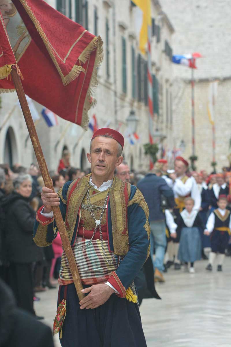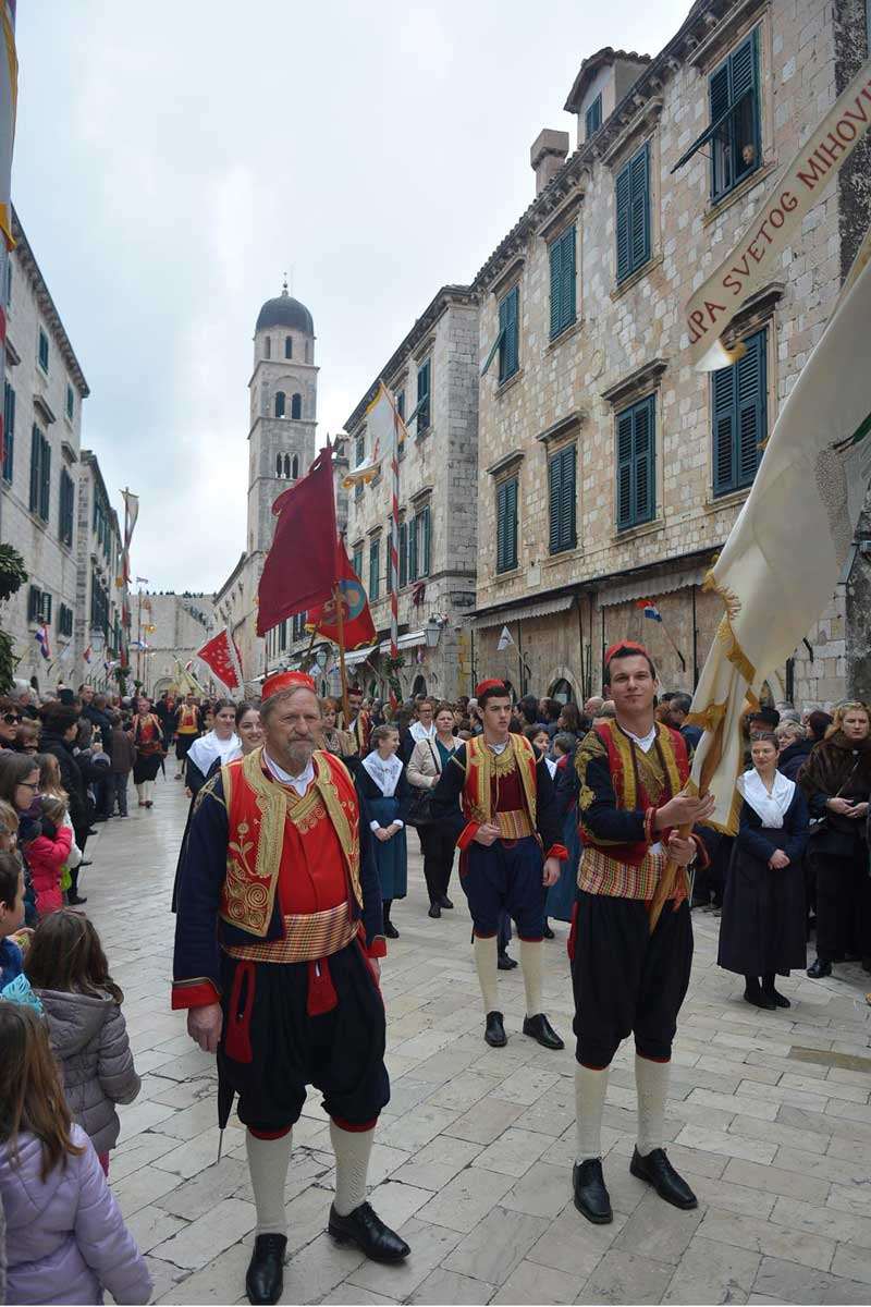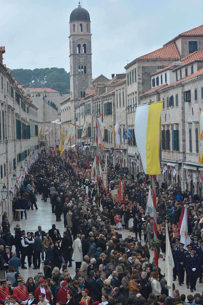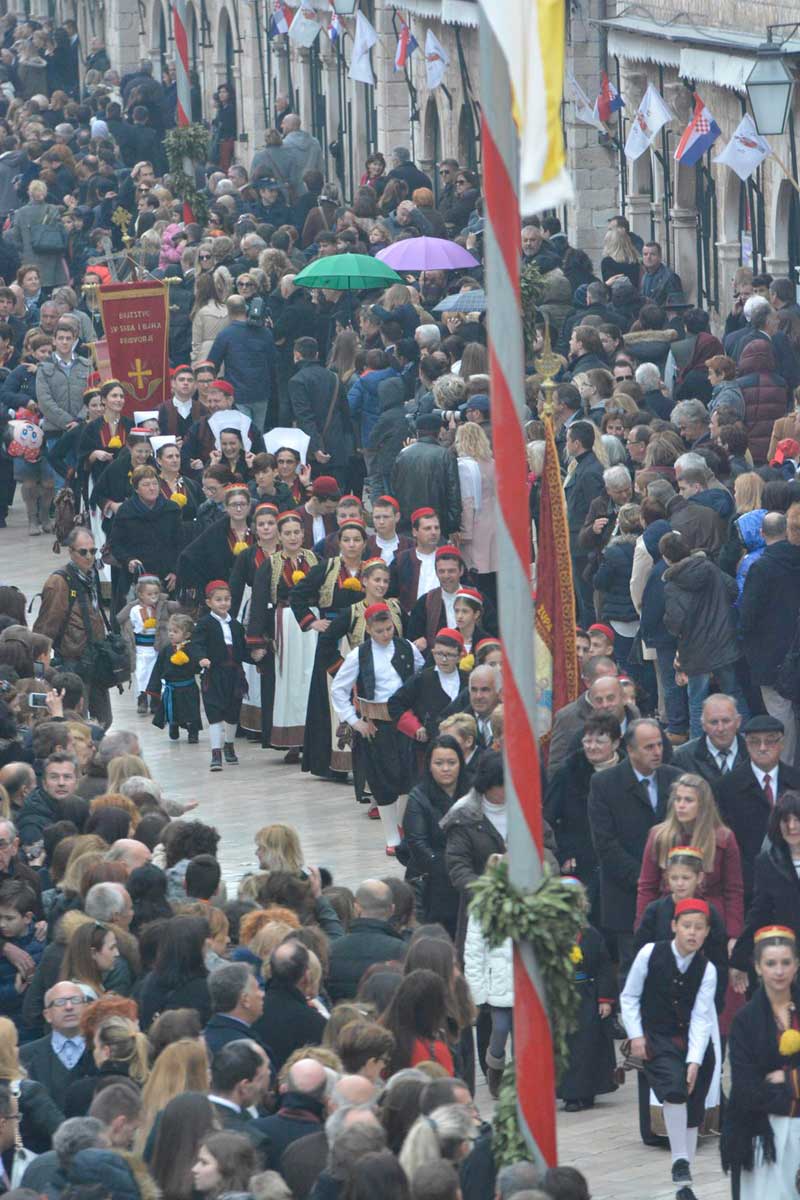 The crowd of believers have gathered in Stradun after the solemn Mass, to take part in the traditional procession through the streets of the City. The old and young people participated in the march which each year attracts believers in traditional costumes who are trying to continue the tradition of their homeland.