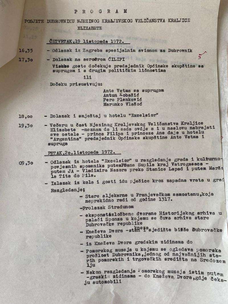 The Queen stayed in Dubrovnik, at the Hotel Excelsior, for two days, October 19 and 20. The dinner ‘in honor of Her Royal Majesty Queen Elizabeth’ was held at Hotel Argentina.