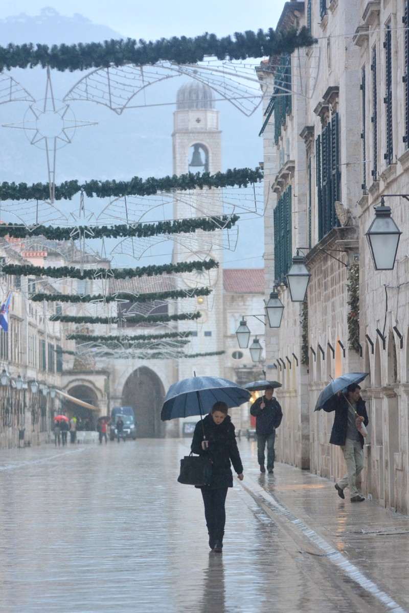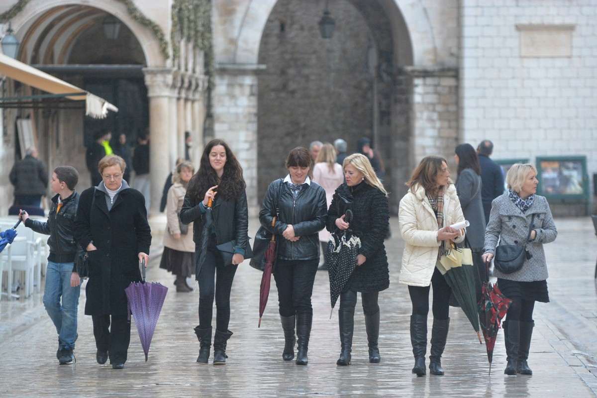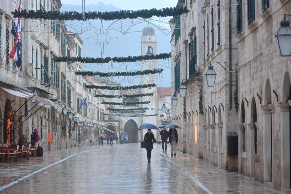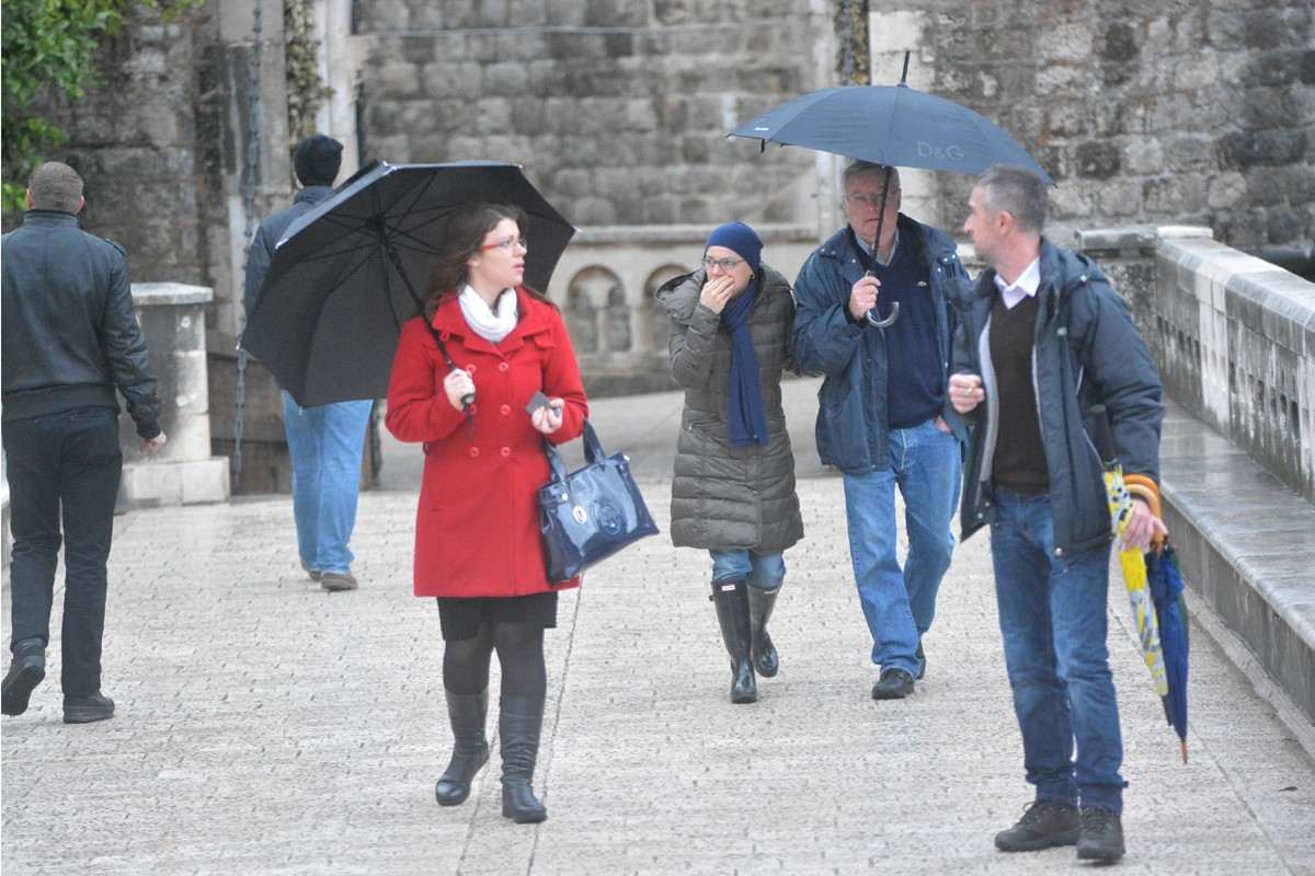 While Saturday was a beautifully sunny day in Dubrovnik, Sunday was a very different story. A southerly wind known as Jugo in Croatia, hit Dubrovnik bringing lots of rain to the city. For those who were determined to head out and enjoy their free time, umbrellas and wellies were the order of the day. Take a look at our photo gallery for a city under moody, grey skies.
