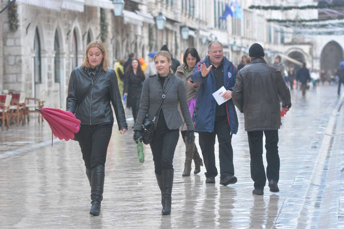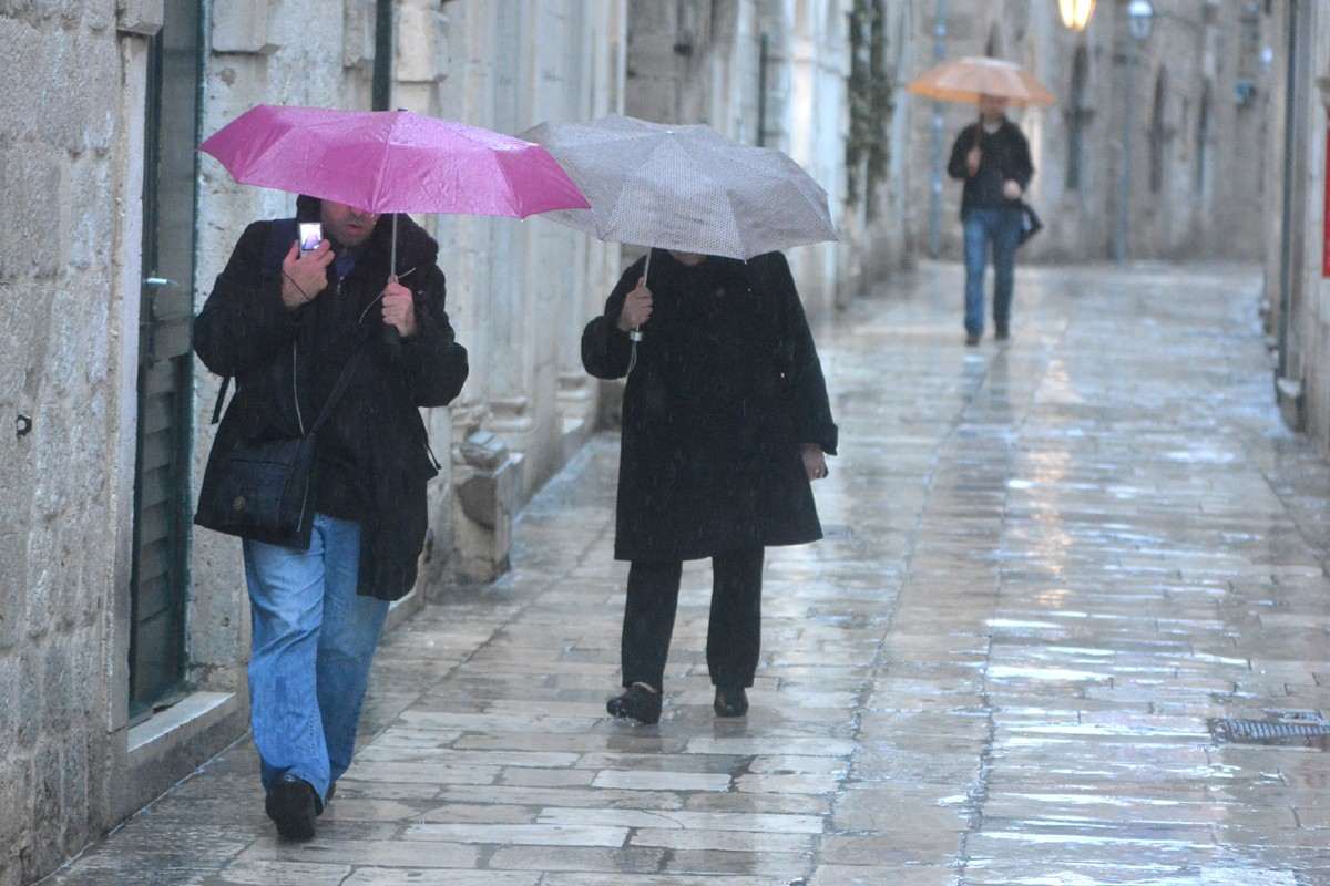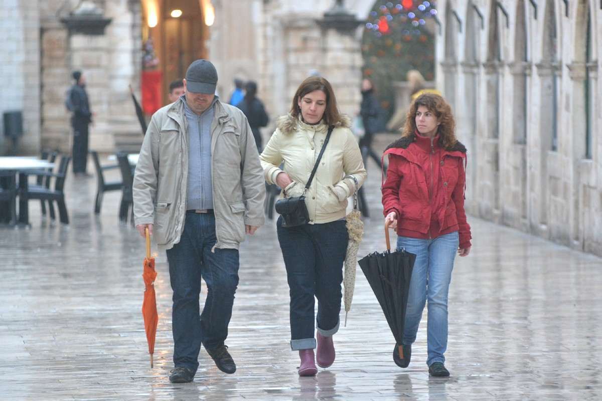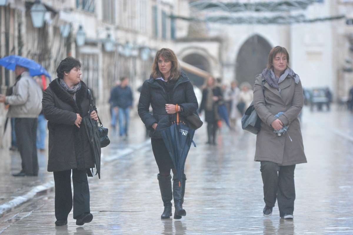 While Saturday was a beautifully sunny day in Dubrovnik, Sunday was a very different story. A southerly wind known as Jugo in Croatia, hit Dubrovnik bringing lots of rain to the city. For those who were determined to head out and enjoy their free time, umbrellas and wellies were the order of the day. Take a look at our photo gallery for a city under moody, grey skies.