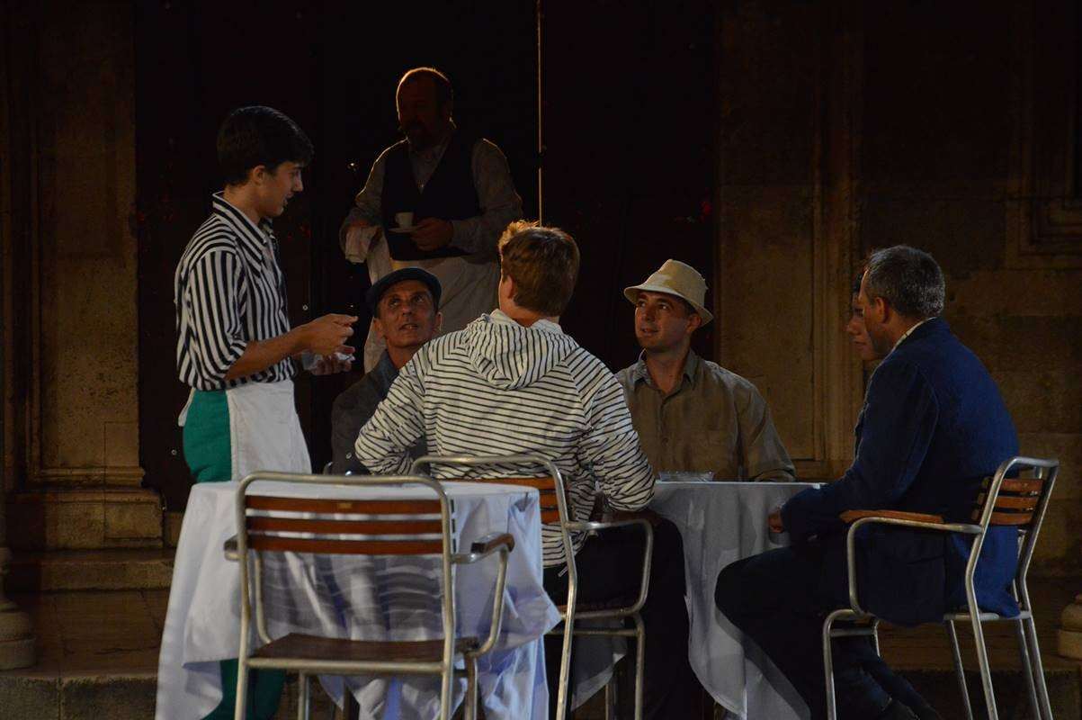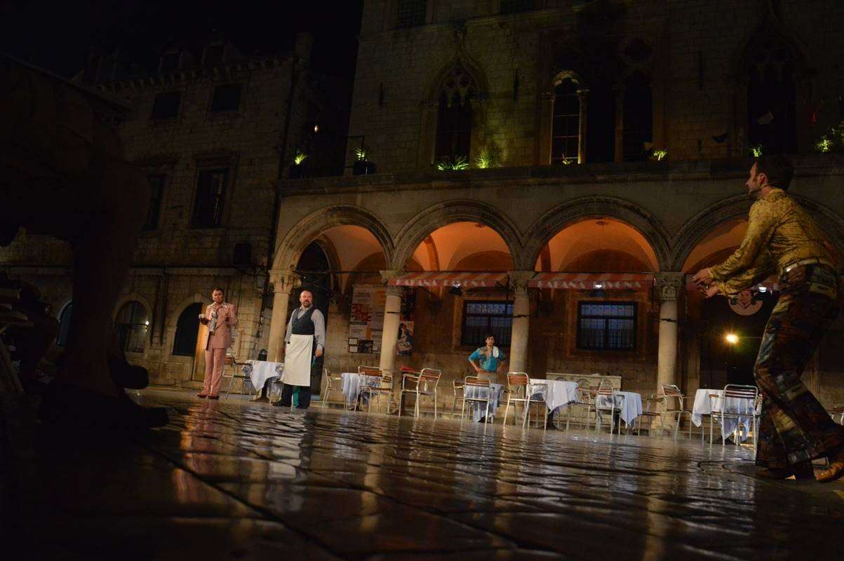 Marijo Bogdanović (a man of Dubrovnik with a boat engine), Jakov Varezić (a man of Dubrovnik with an oar), Jelica Čučević, Aida Machiedo, Barbara Lončarić Lučić (tourists), Ljubo Radić (a man of Dubrovnik with a cart), Paulina Bačić, Ivana Lucianović (Dubrovnik ladies coming back from shopping), Rikard Kužnin, Ljubo Radić, Marijo Bogdanović, Petar Vlašić, Slobodan Varezić, Jakov Varezić (guests at the coffeehouse), Slobodan Varezić, Petar Vlašić (two hippies passing by), Ante Tonći Đurković, Matej Lisičić (two policemen), Jelica Čučević, Aida Machiedo, Paulina Bačić, Barbara Lončarić Lučić, Jelena Marinčić, Tanja Šimunović, Magdalena Kačić Barišić, Jelica Crnčević, Slobodan Varezić, Ljubo Radić, Marijo Bogdanović, Rikard Riki Kužnin, Barbara Horvat, Ivana Lucianović, Barbara Ogresta, Mihaela Tepšić, Ivana Rezo, Jakov Varezić, Jelena Beželj, Antonia Merčep, Petar Vlašić (hippies around Sponza Palace, the Choir), Fabijan Pavao Medvešek (special guest at the coffeehouse)