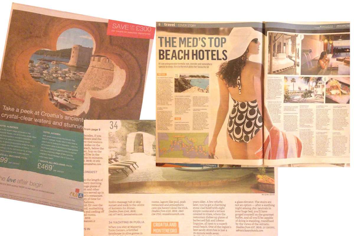 Brits enjoying their Sunday papers this morning will have discovered that Dubrovnik is home to two of the Mediterranean’s top50 beach hotels. Renowned newspaper the Sunday Times headline travel piece lists the top beach hotels for summer 2014, with La Villa on Lopud and Hotel Bellevue just outside of the Old Town, both making the grade. Only two hotels in Croatia made the top 50, both of them located in Dubrovnik.