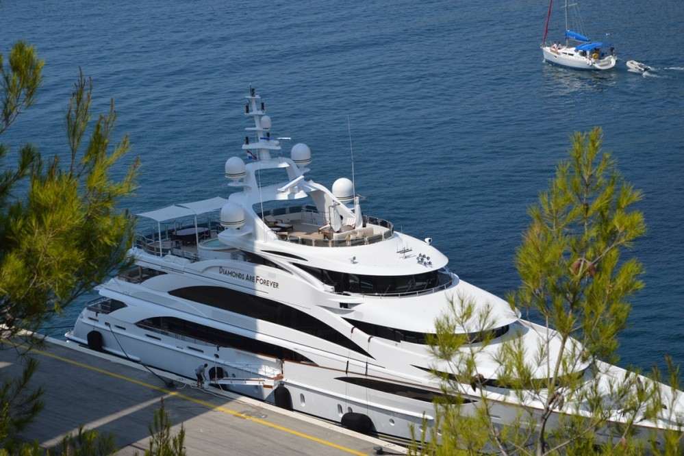 A week’s charter of Diamonds Are Forever will set you back between 330,000 and 450,000 Euros depending on the season. Some of the most recent guests on board were the Ecclestone sisters who sailed the French and Italian coasts with their husbands. Following its stay in Dubrovnik, Diamonds Are Forever’s next destination is the island of Mljet.