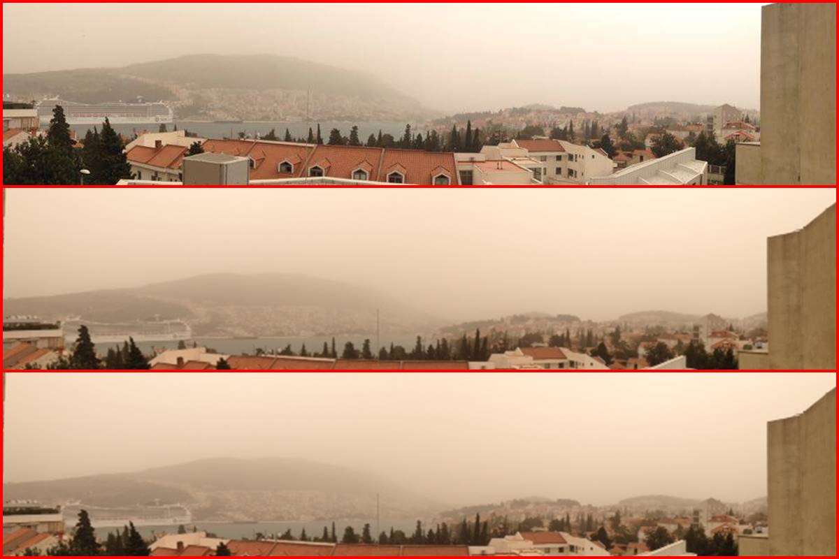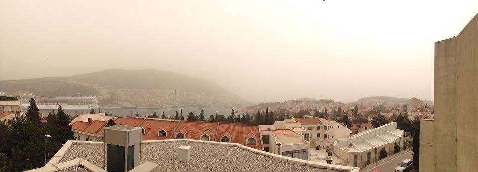 Dubrovnik and its citizens had the opportunity to see a natural phenomenon – a sandstorm sweeping through the city today. The wind brought sand from Africa to the Sicily up to our region. The yellow sand obscured the view, but the city looked fabulous. It was like the scene from another world. Don’t you think?