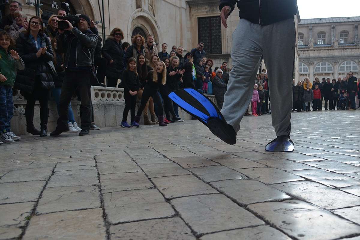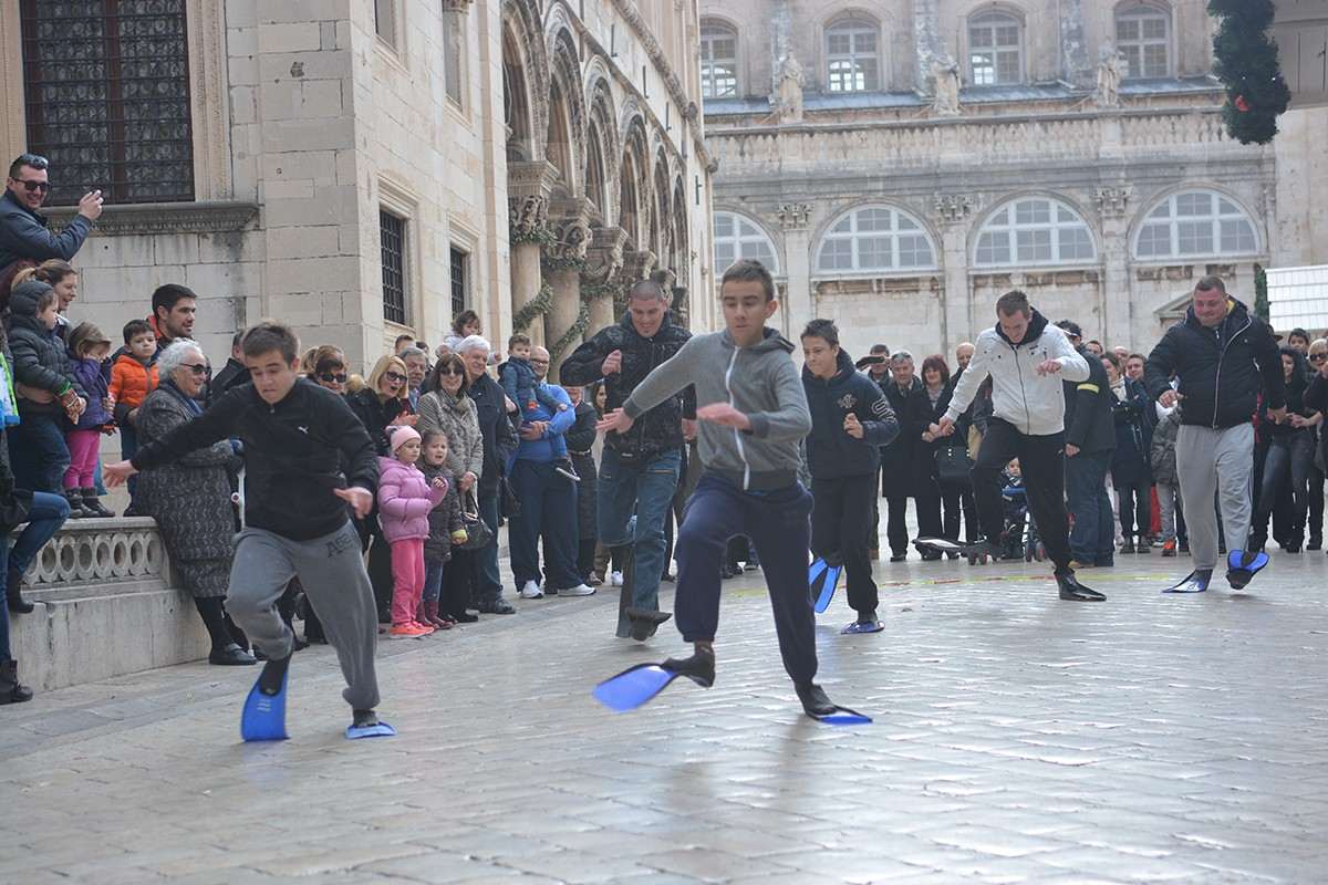 As a part of the humanitarian campaign ‘Together for Pavo’ a very interesting race was held on Stradun today. People ran on high heels and wearing diving floppers, while raising around 8500 kuna to help Pavo Hadija who was injured on Christmas Eve in Dubrovnik. He was injured in a car accident after which he remained almost completely paralysed.
