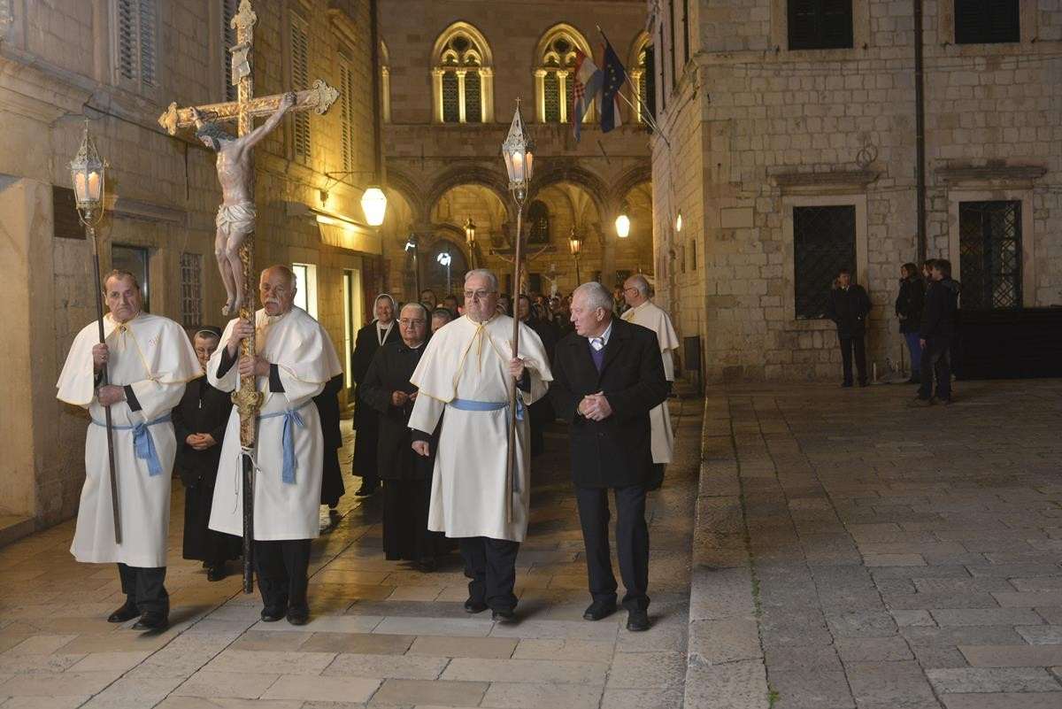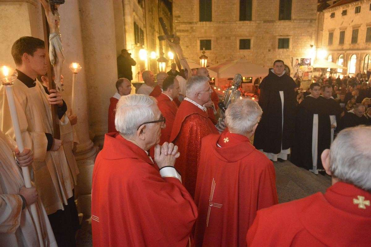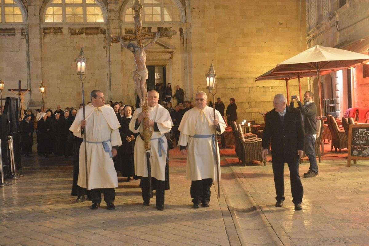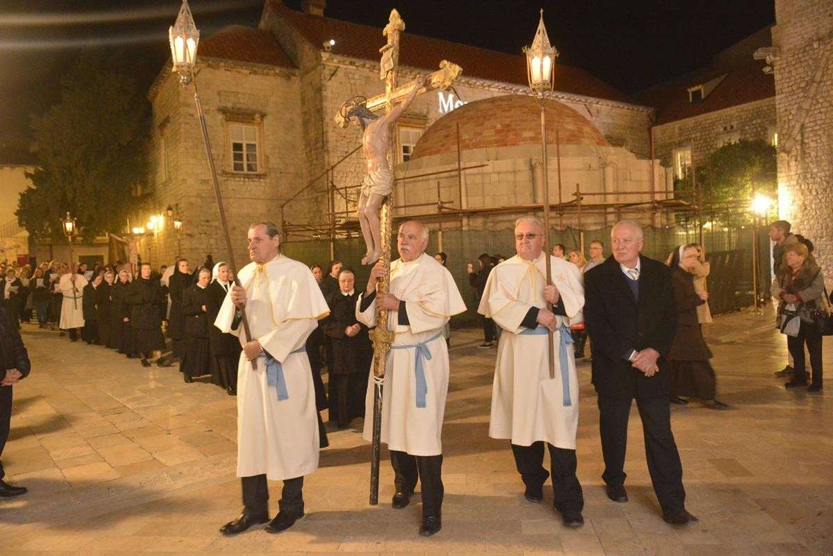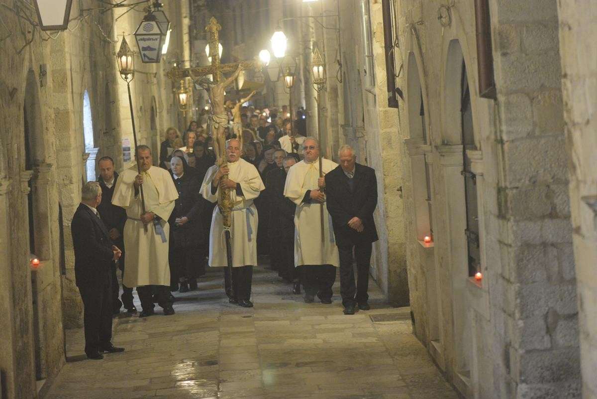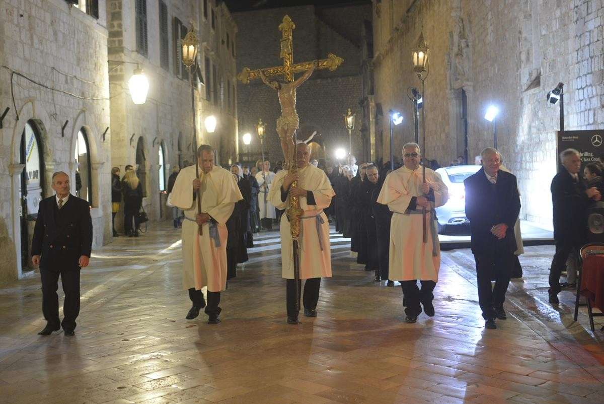 The procession of Good Friday was held in Dubrovnik yesterday, just after the ceremony in the Cathedral led by Bishop Mate Uzinic. After the holy mass, citizens went to the street caring three crosses and singing the Lenten songs. Bishop Uzinic carried a relic of Jesus Christ’s Cross with which he has blessed the people and the entire city of Dubrovnik.