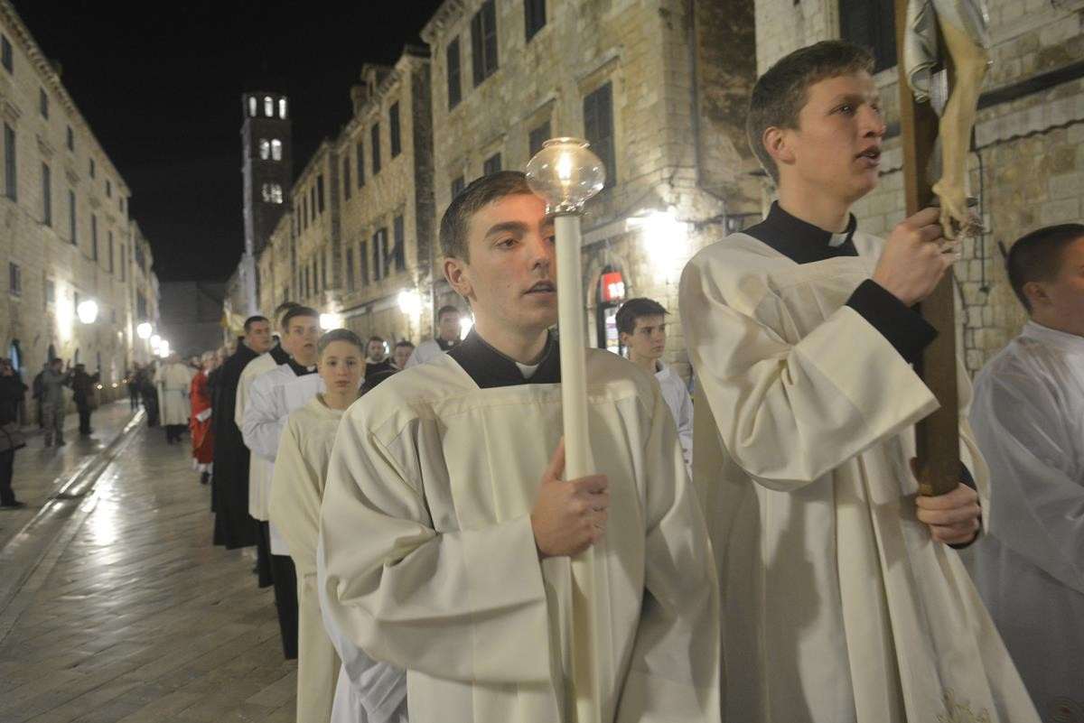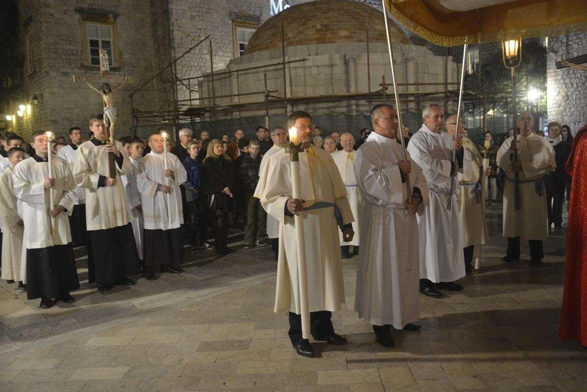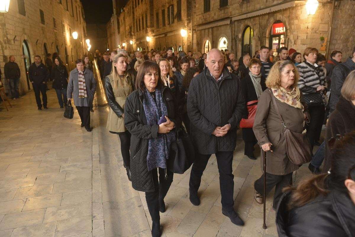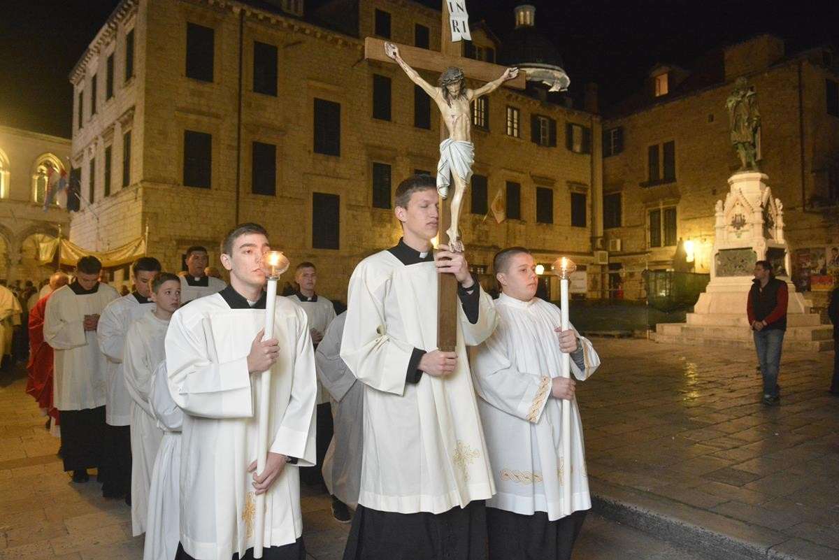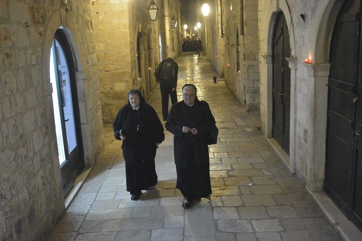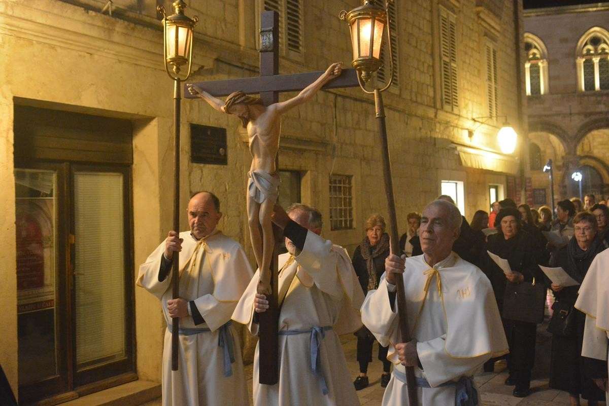 The procession of Good Friday was held in Dubrovnik yesterday, just after the ceremony in the Cathedral led by Bishop Mate Uzinic. After the holy mass, citizens went to the street caring three crosses and singing the Lenten songs. Bishop Uzinic carried a relic of Jesus Christ’s Cross with which he has blessed the people and the entire city of Dubrovnik.