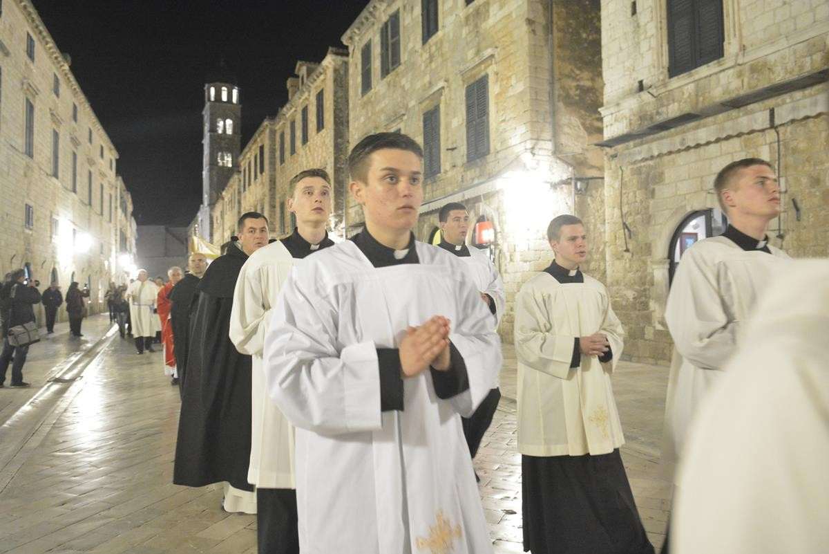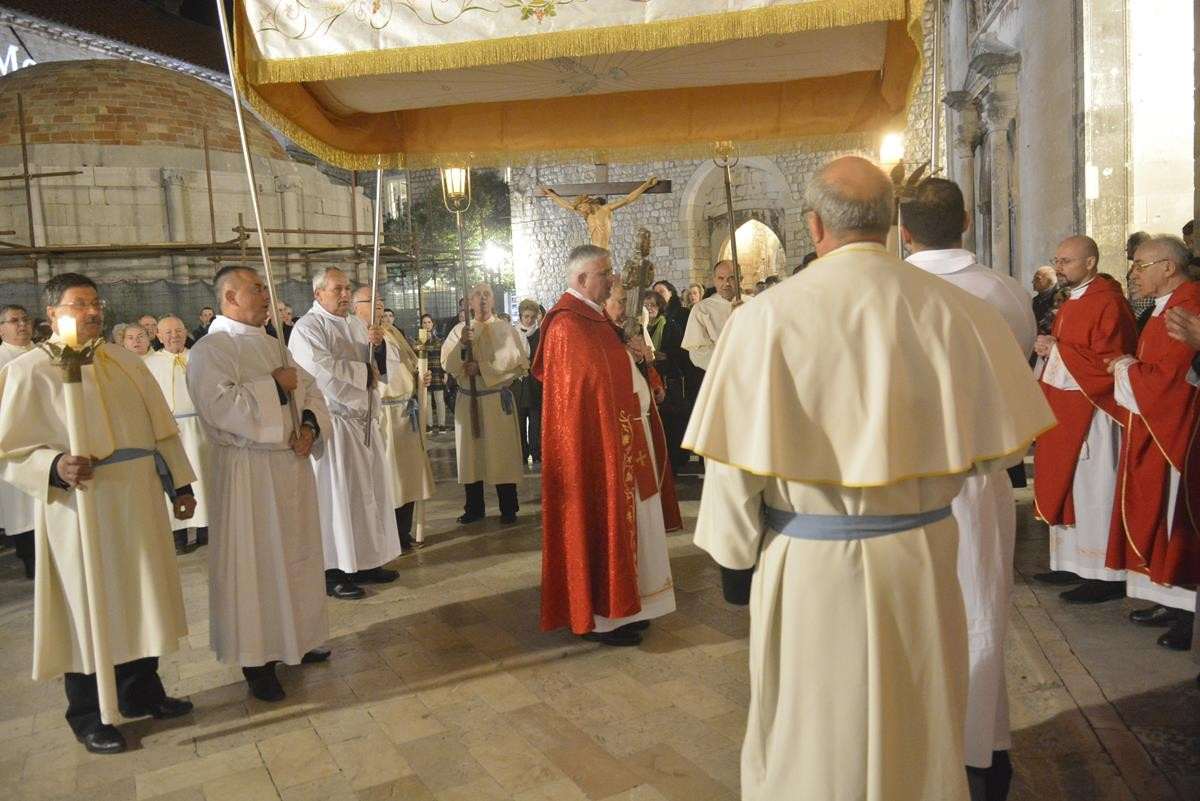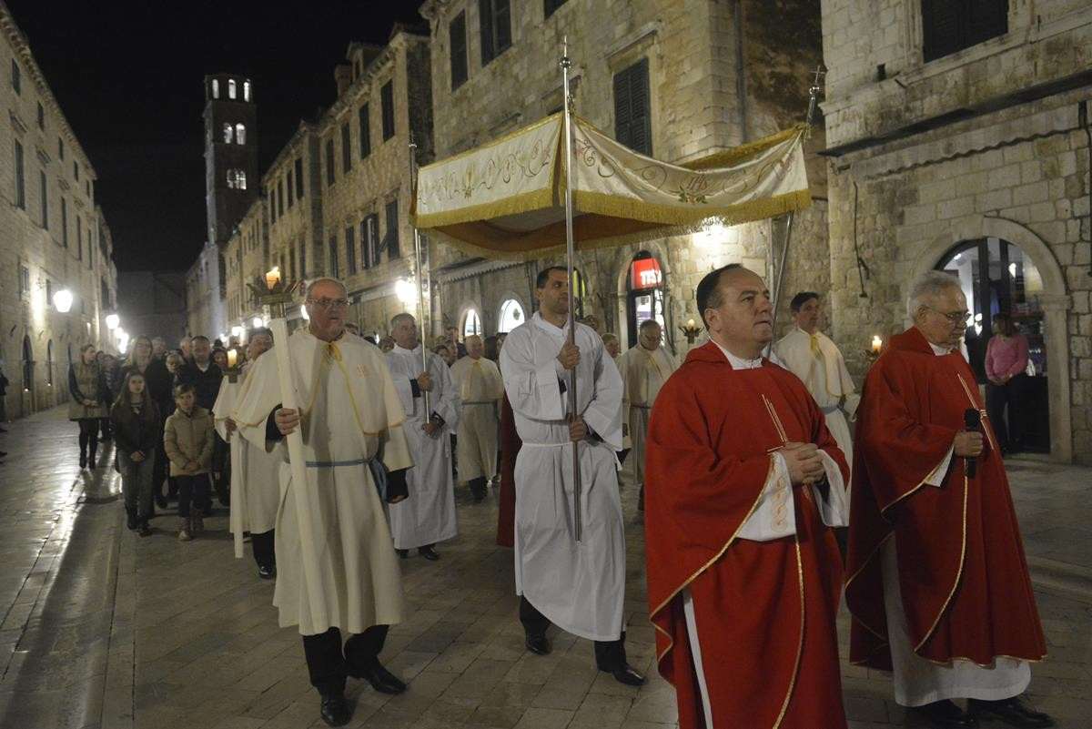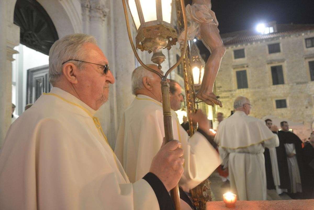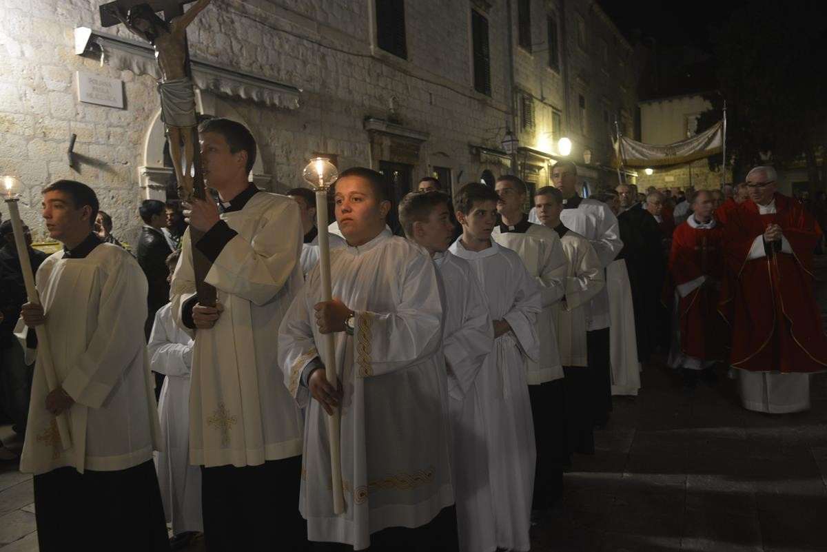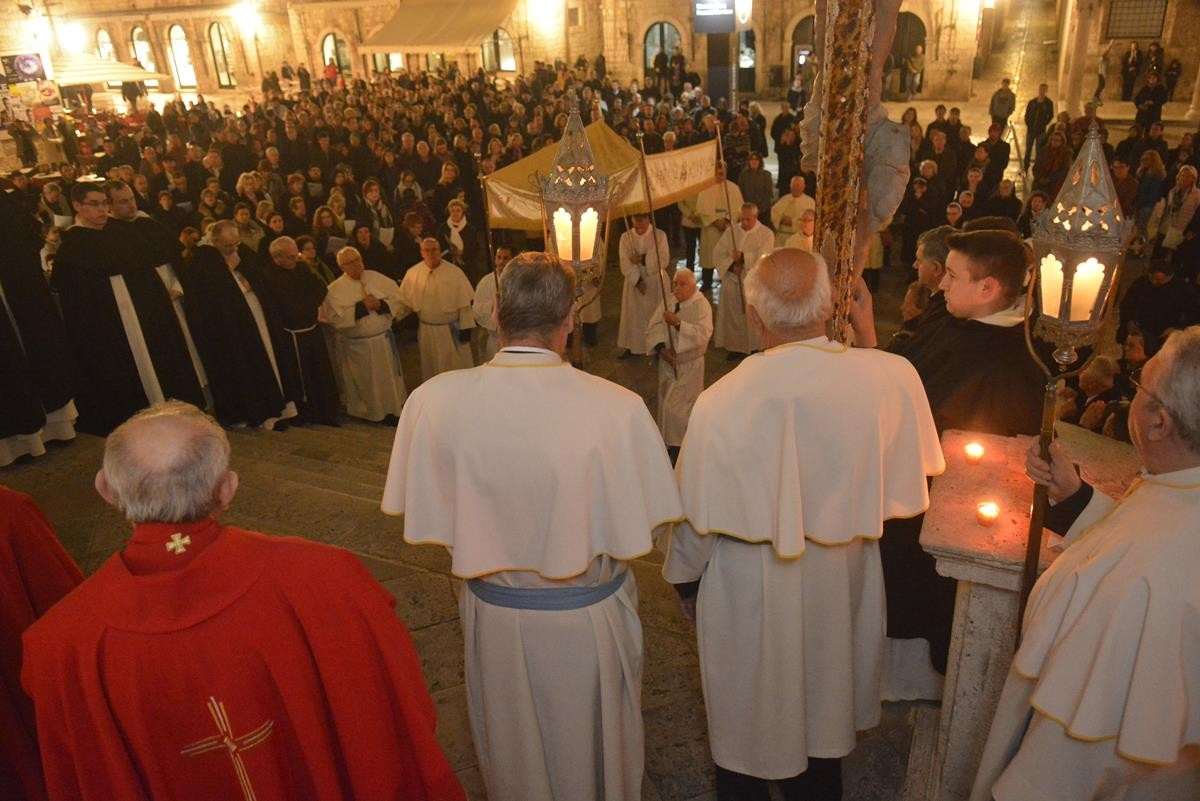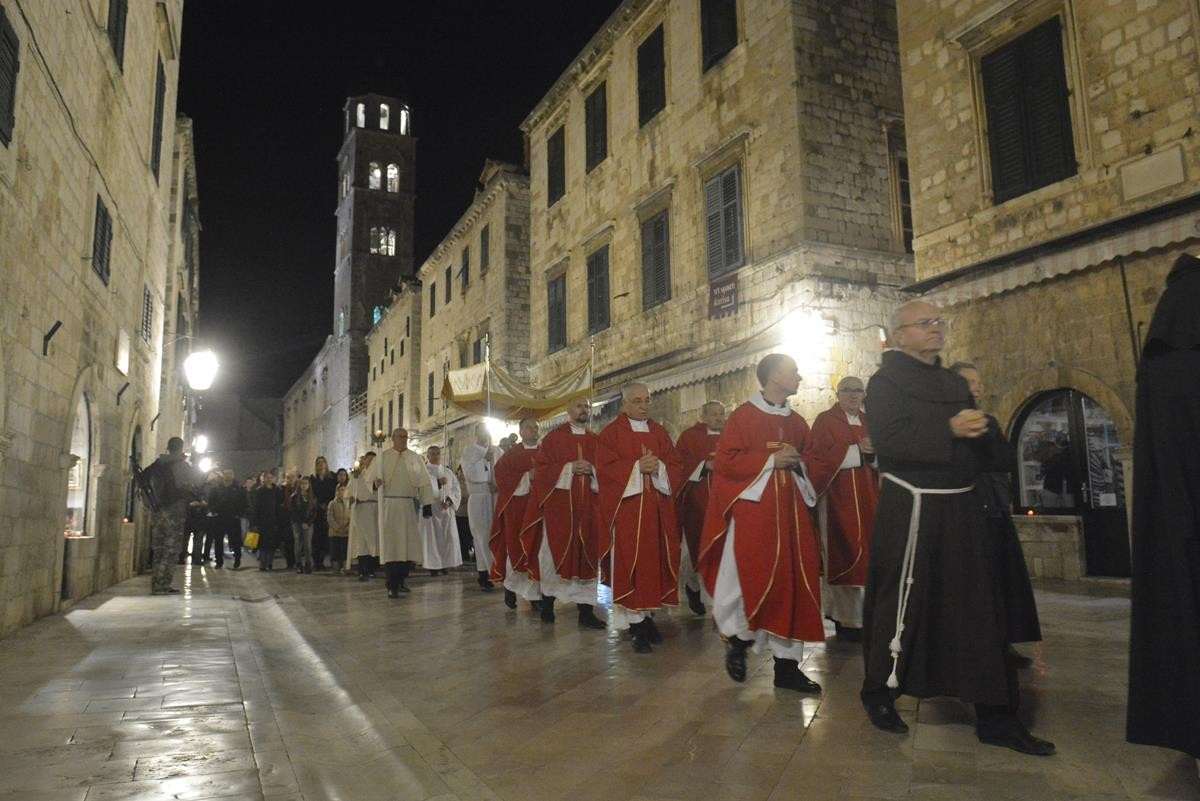 The procession of Good Friday was held in Dubrovnik yesterday, just after the ceremony in the Cathedral led by Bishop Mate Uzinic. After the holy mass, citizens went to the street caring three crosses and singing the Lenten songs. Bishop Uzinic carried a relic of Jesus Christ’s Cross with which he has blessed the people and the entire city of Dubrovnik.