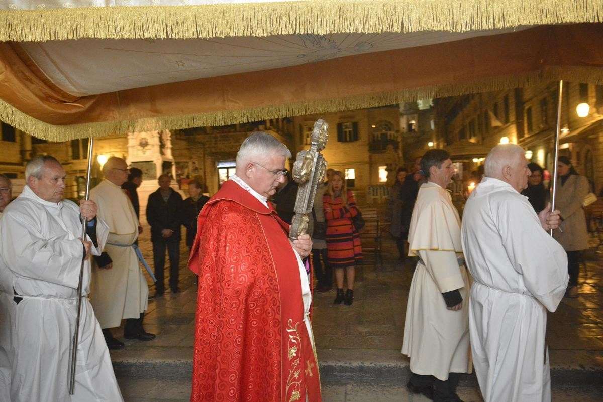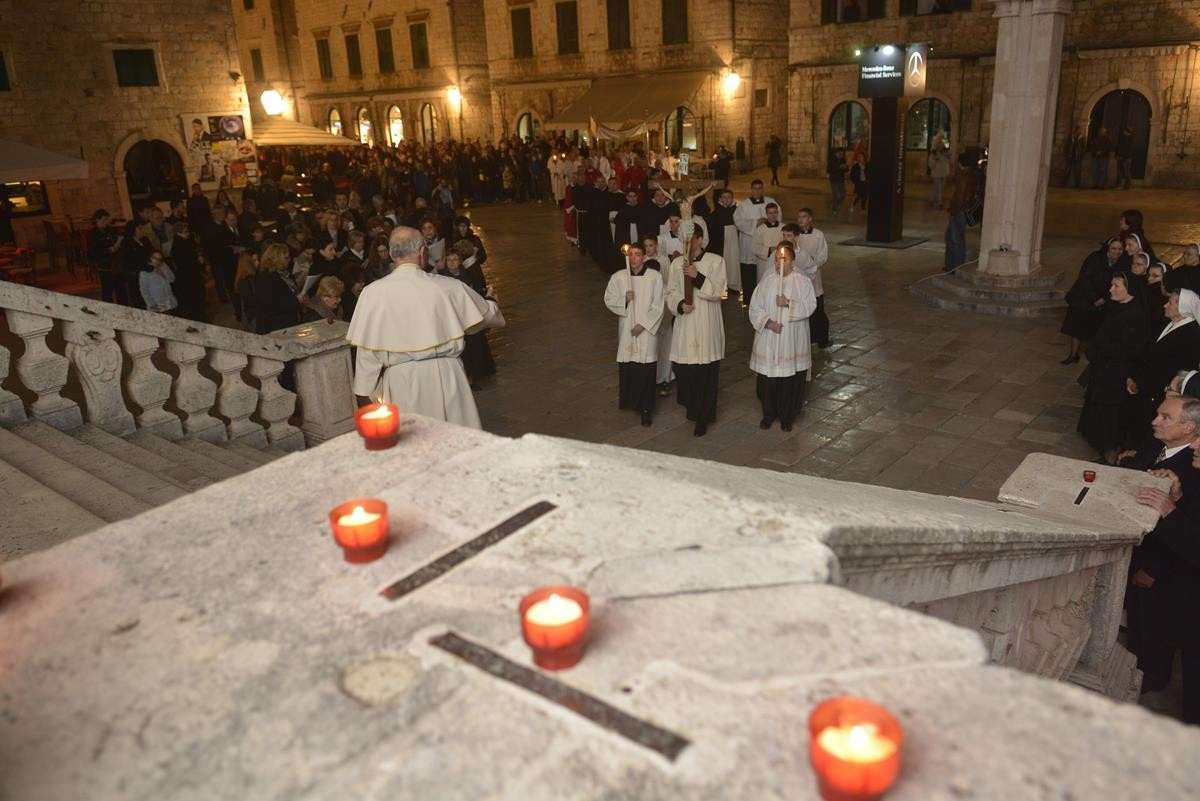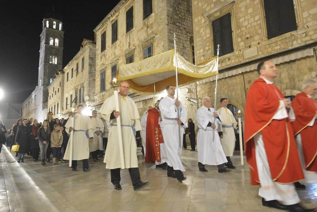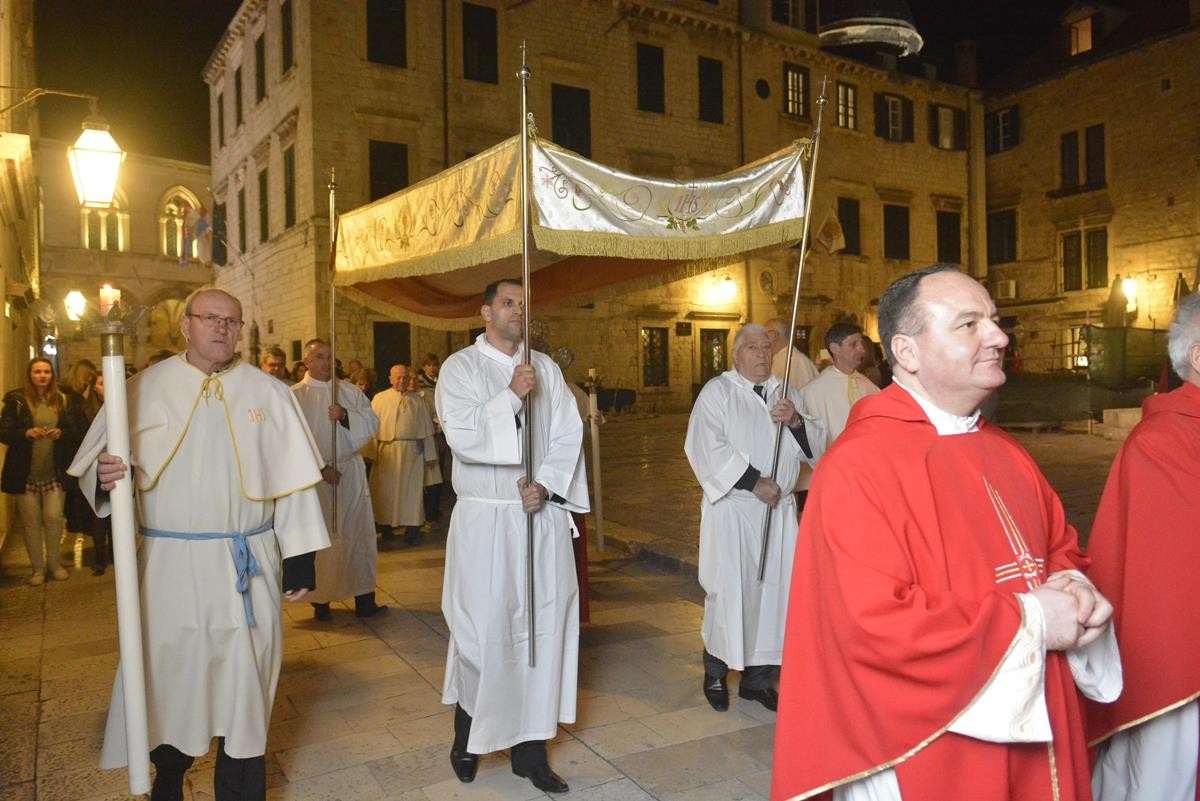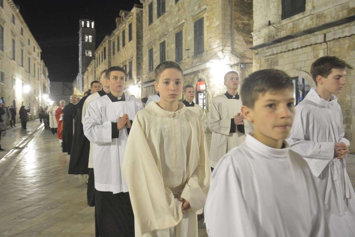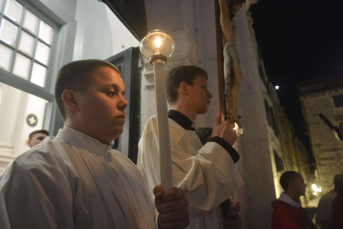 The procession of Good Friday was held in Dubrovnik yesterday, just after the ceremony in the Cathedral led by Bishop Mate Uzinic. After the holy mass, citizens went to the street caring three crosses and singing the Lenten songs. Bishop Uzinic carried a relic of Jesus Christ’s Cross with which he has blessed the people and the entire city of Dubrovnik.