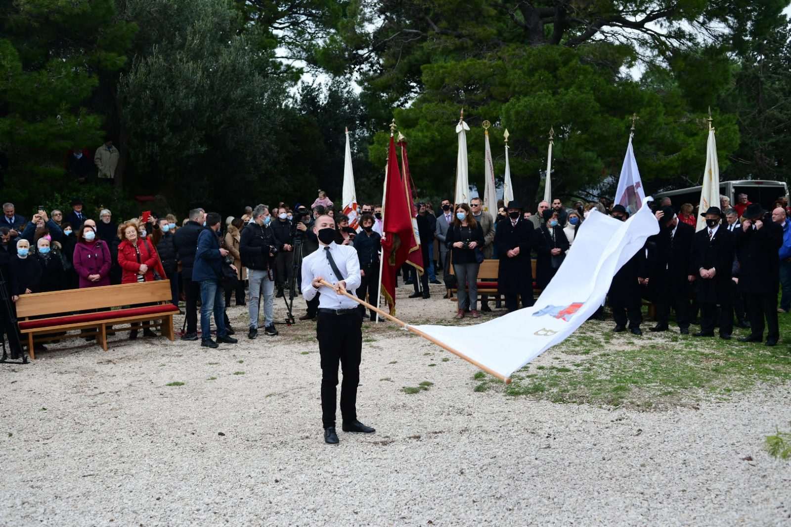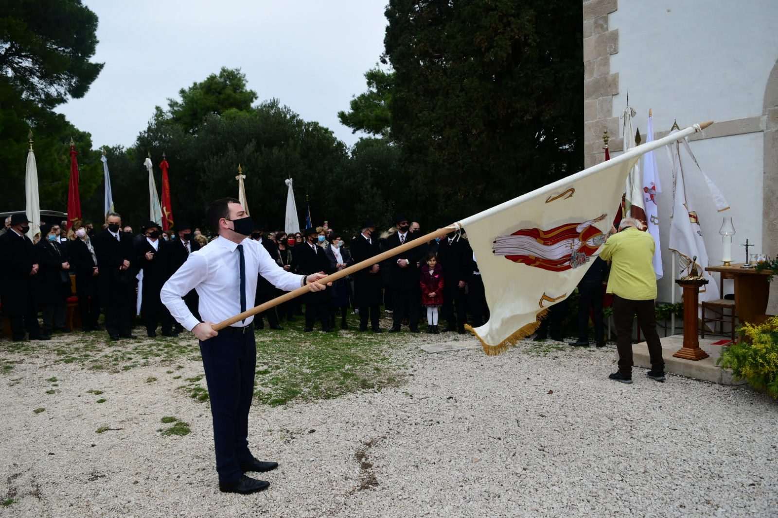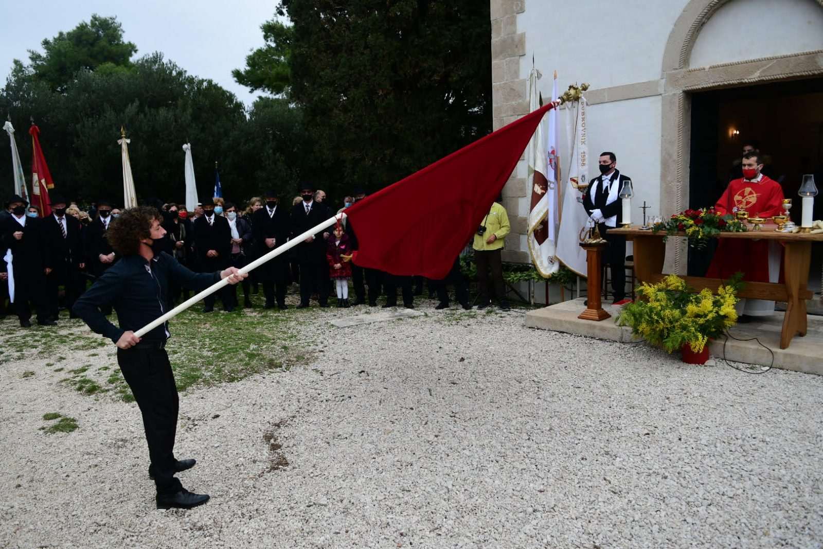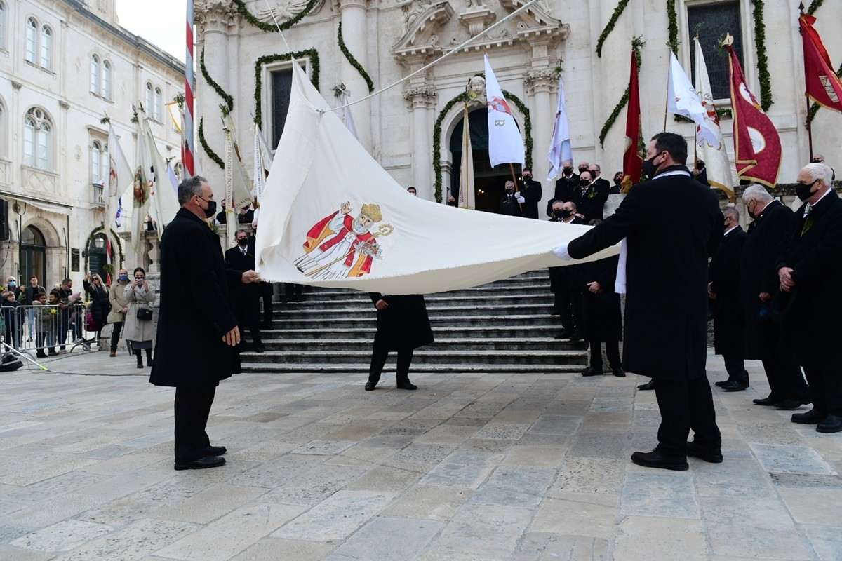 After the Mass, the procession of pilgrims headed out to the City, where they were welcomed by the rector Don Hrvoje Katušić, in front of the church of St. Blaise as they, with the echo of the trombone and the singing of the anthem, lowered the patron’s flag from the pillar officially ending this year’s Feast.