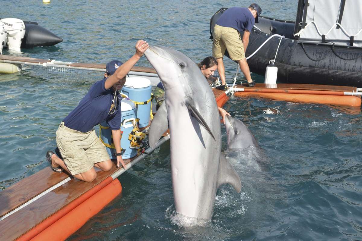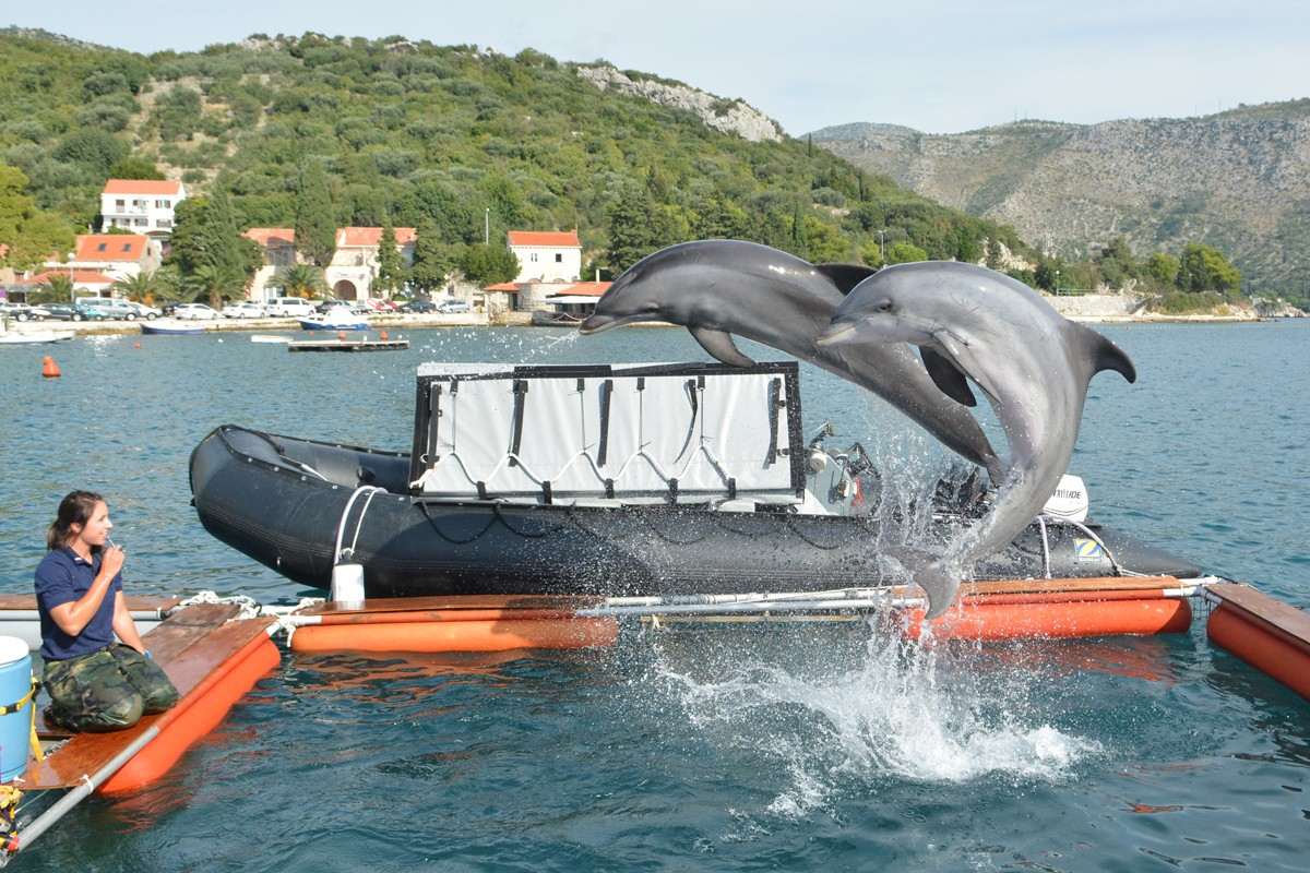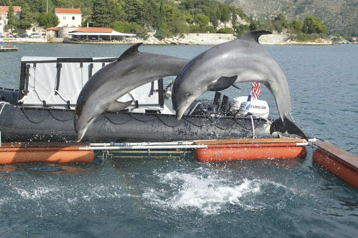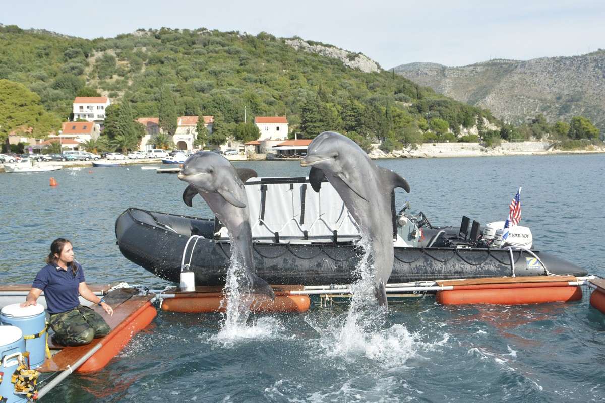 The dolphins which arrived last week in Dubrovnik from San Diego have been practicing their skills in Zaton bay. The Naval Marine Mammal Program (NMMP) trains the dolphins to detect mines and unexploded devices. During their stay in Croatia the dolphins will detect explosives in the waters around Dubrovnik that remain from the First ad Second World War as well as the Homeland War of the 1990’s. The project known as Dolphin 13 will see US trained specialist work with Croatian divers to locate and identify devices and ultimately dispose of them safely. Take a look at our photo gallery to see the dolphins at work.