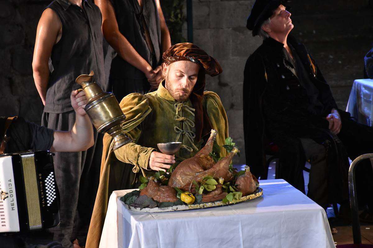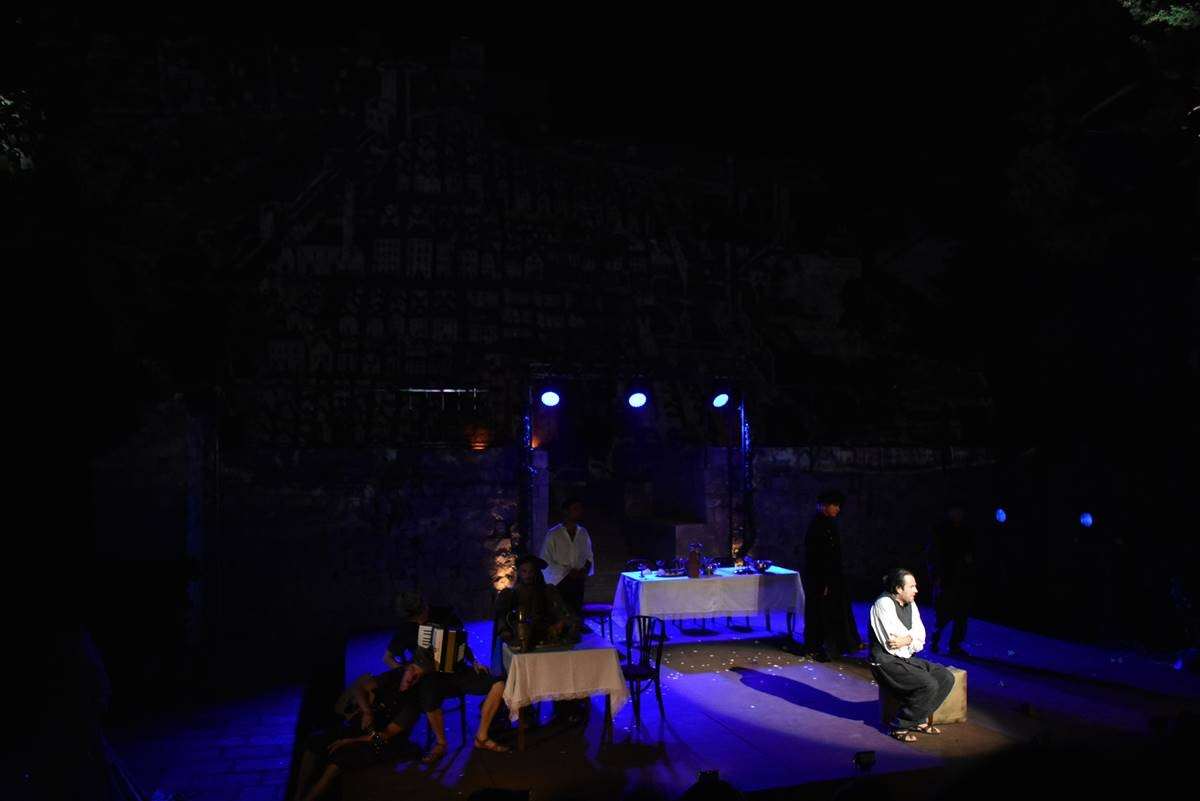 The play revolves around the life, work, and destiny of the great Renaissance playwright Marin Držić, whose 450th anniversary of death we mark this year. With equal portions of facts, assumptions, and fantasy, the play ludically explores Marin Držić’s relation with his contemporaries, and with ethical and social paradigms of his time. Držić himself is in this play both as a play-writer and a character from his plays – dum Marin and Pomet, and Vidra and Negromant – and is masterfully played by Ozren Grabarić.