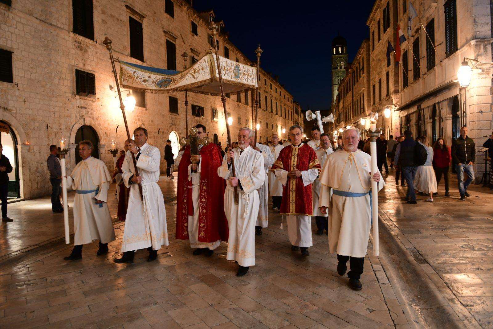 Bishop Glasnović carried a relic of Jesus Christ’s Cross with which he has blessed the people and the entire city of Dubrovnik.